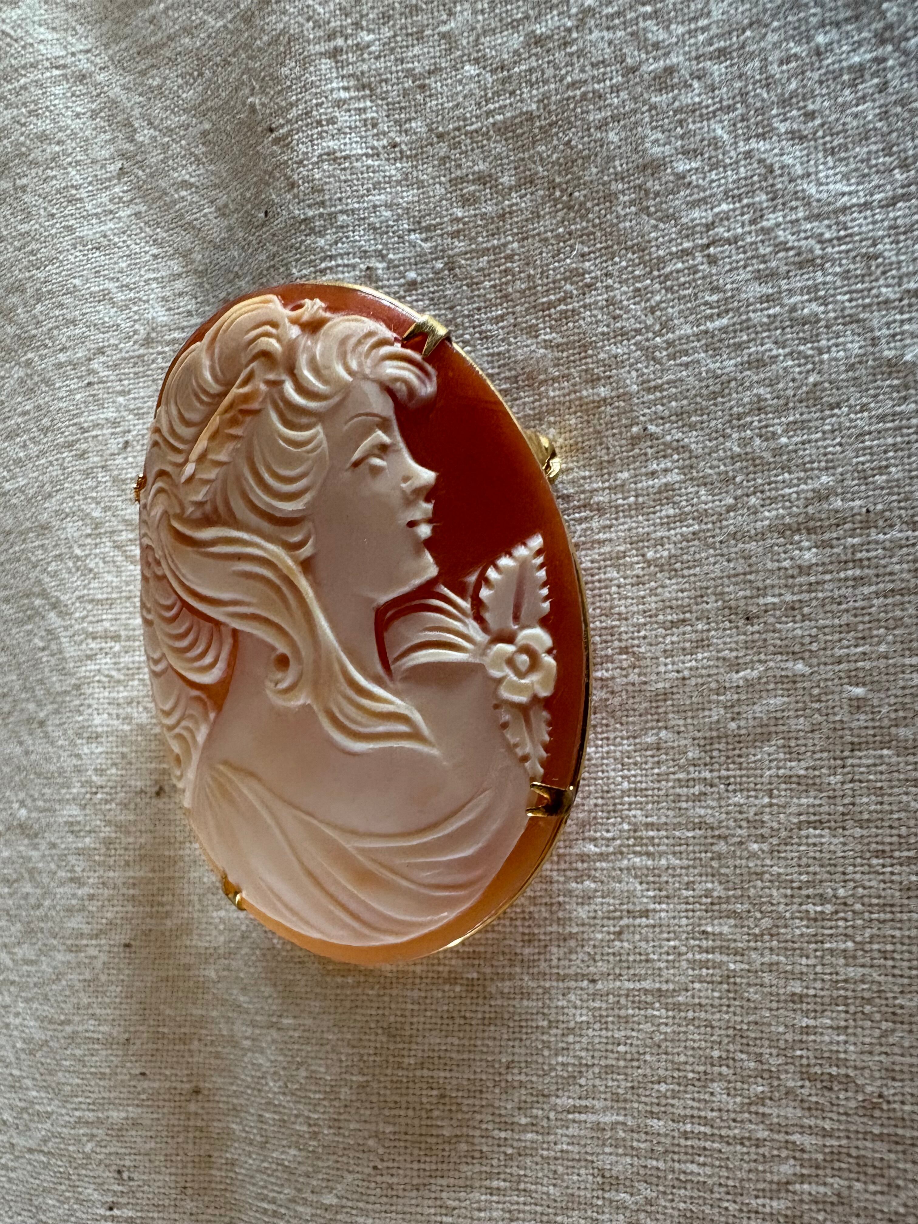イタリアの古いカメオ Cameo アンティークカメオ ブローチ ディルーカ社製 diluca Italy 【1点】