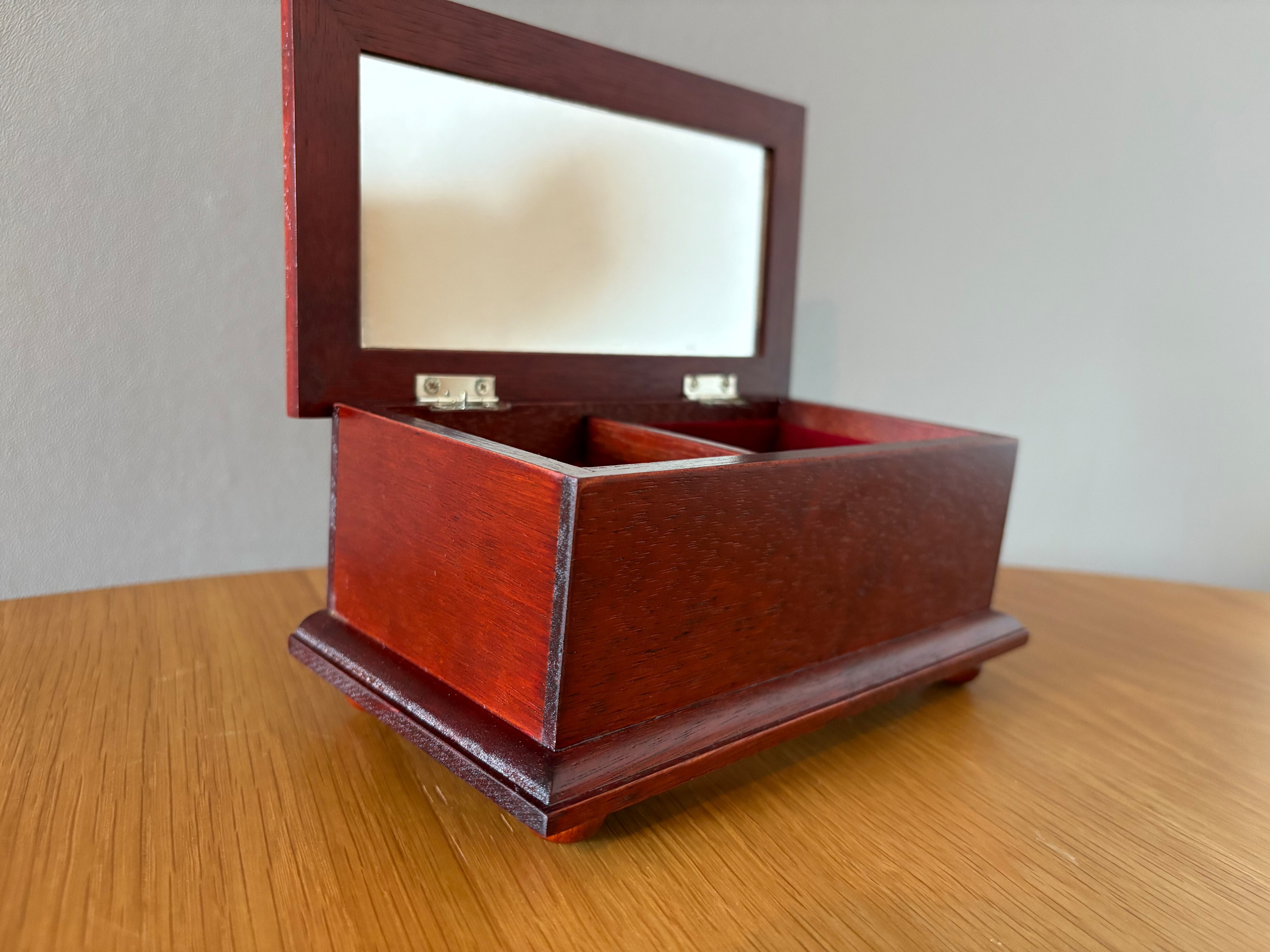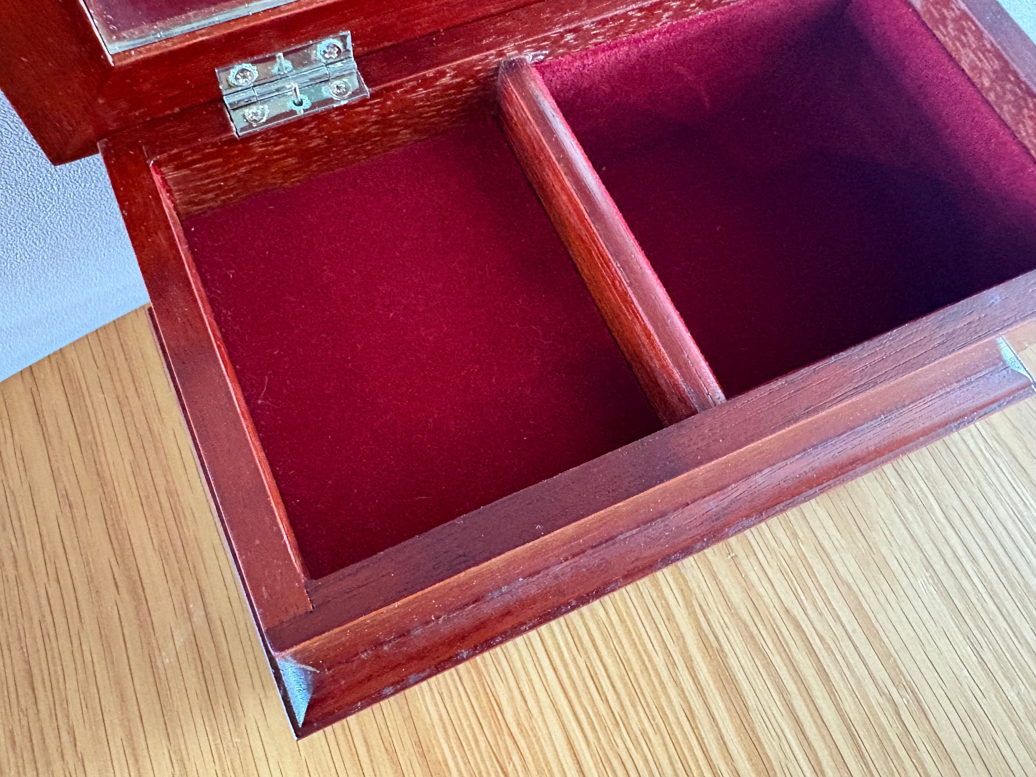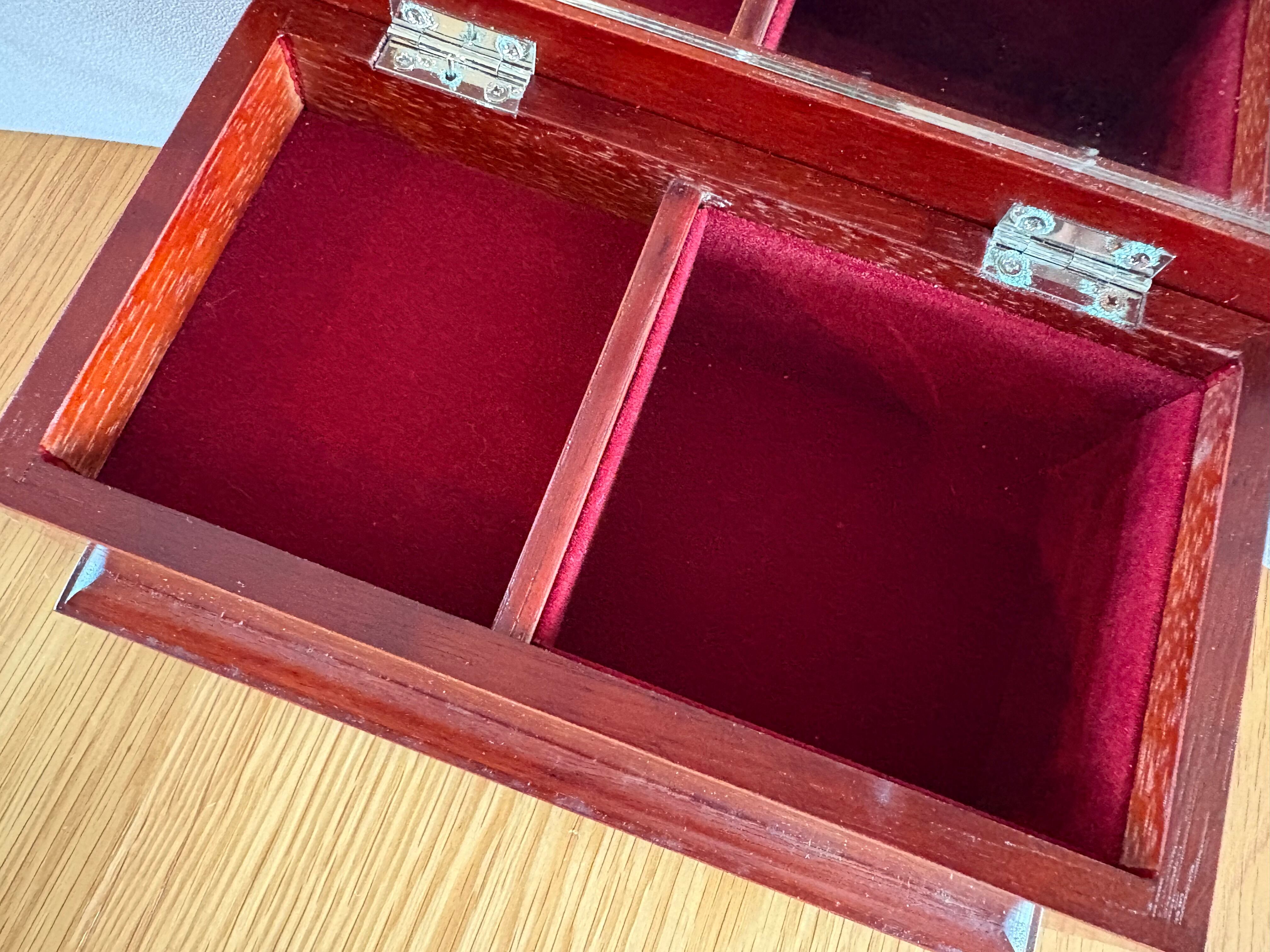 仕切り付きでリングやブレスレット、ピアスなどをきれいに収納可能。実用性と美しさを兼ね備えた逸品です。