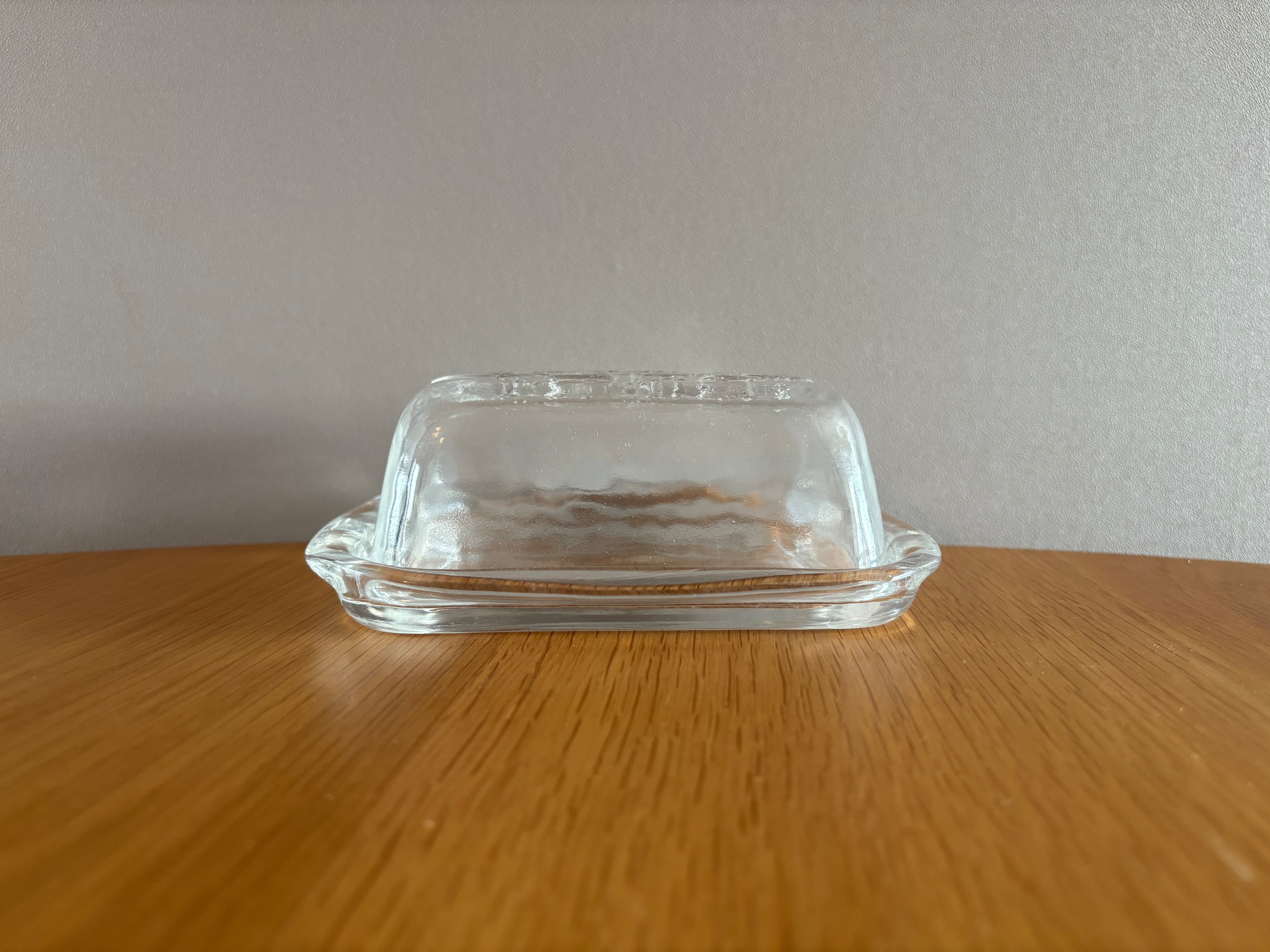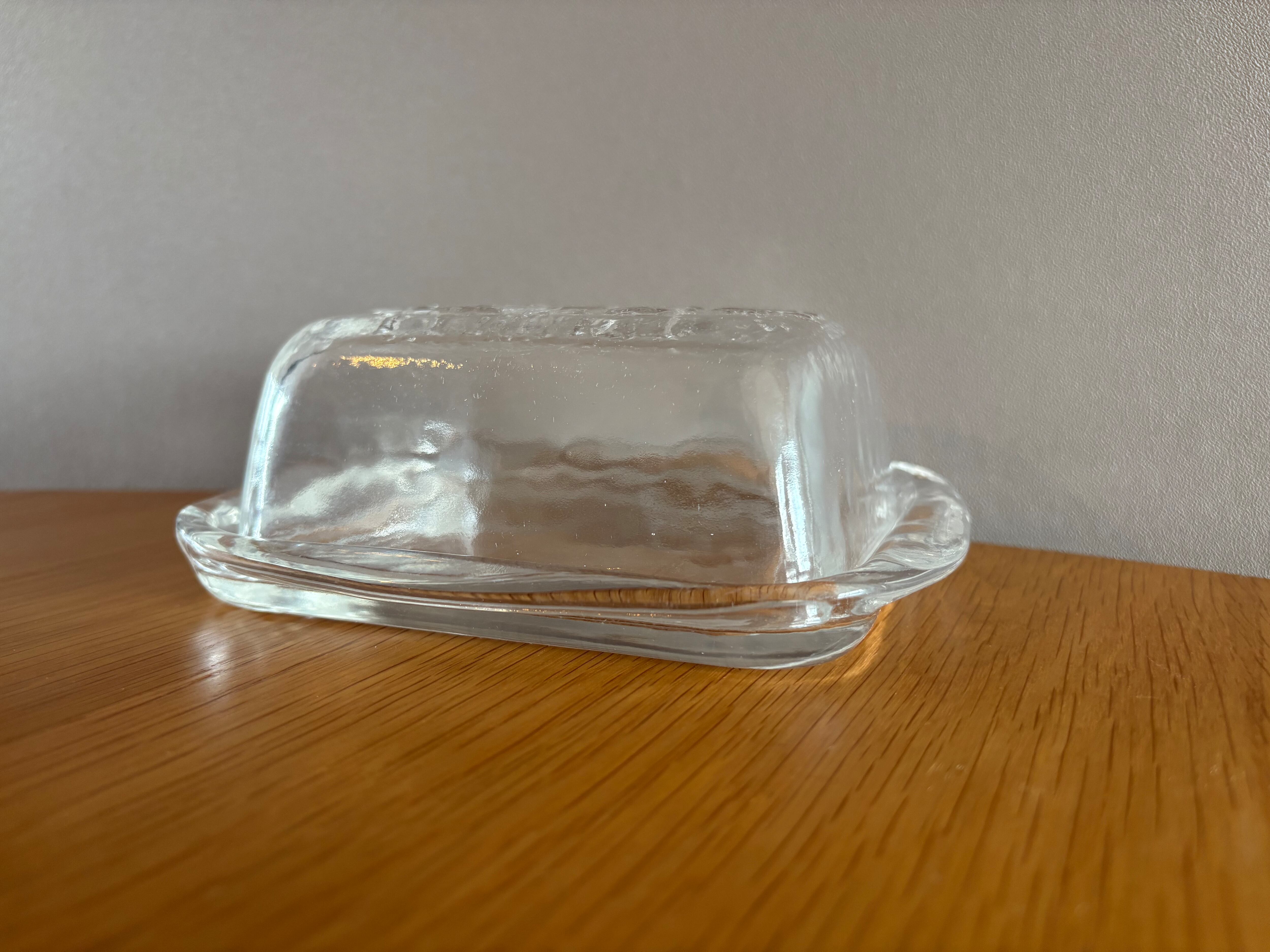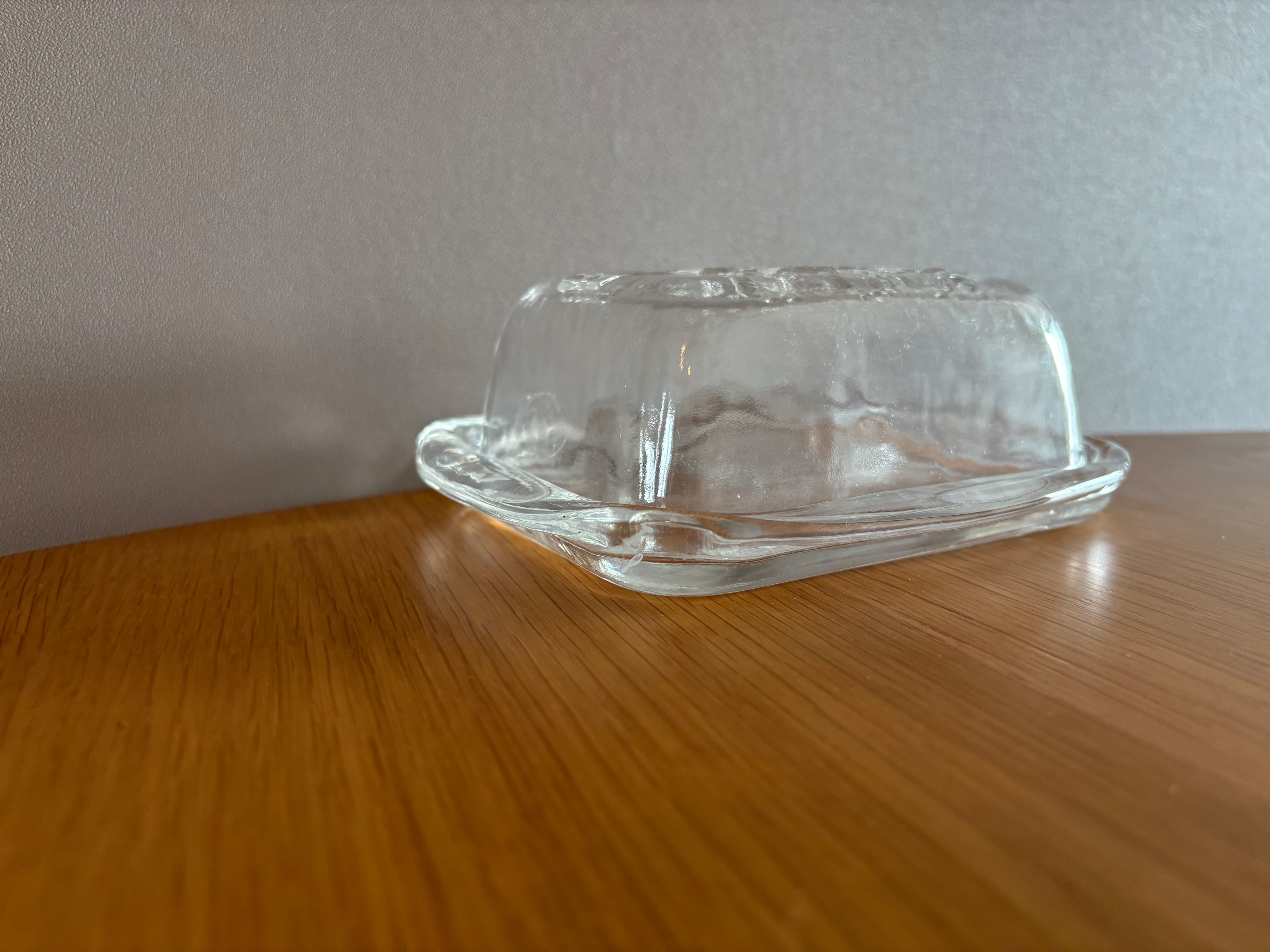 ドイツ製の分厚く重厚感のあるガラス製バターケースです。