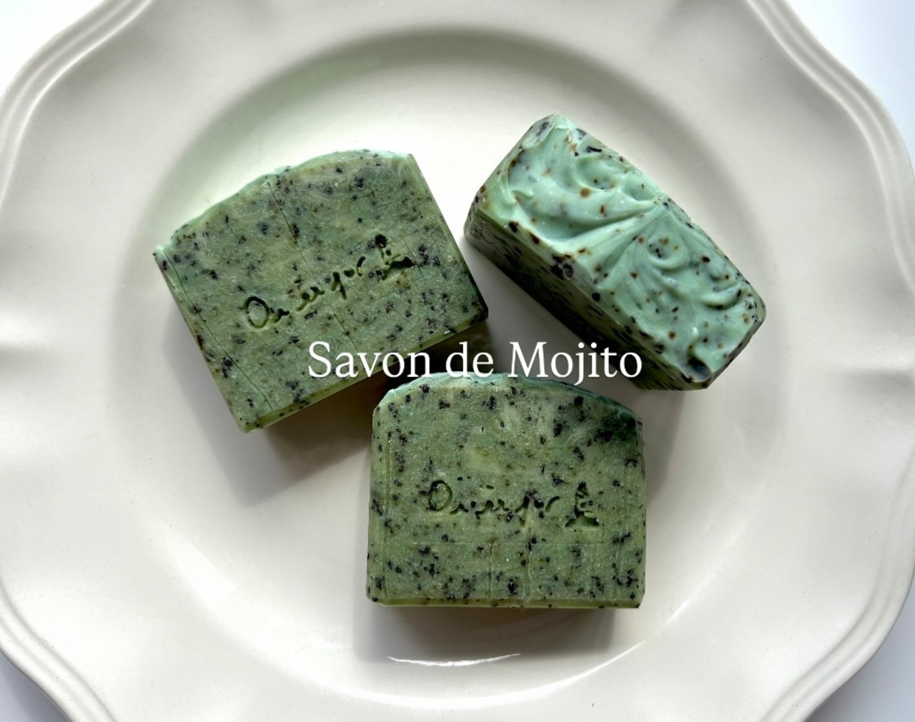 天然由来のオイルとハーブをブレンドした、モヒート風石けん。ライムのすっきりとした香りに、ミントの爽やかさをプラスしました。
