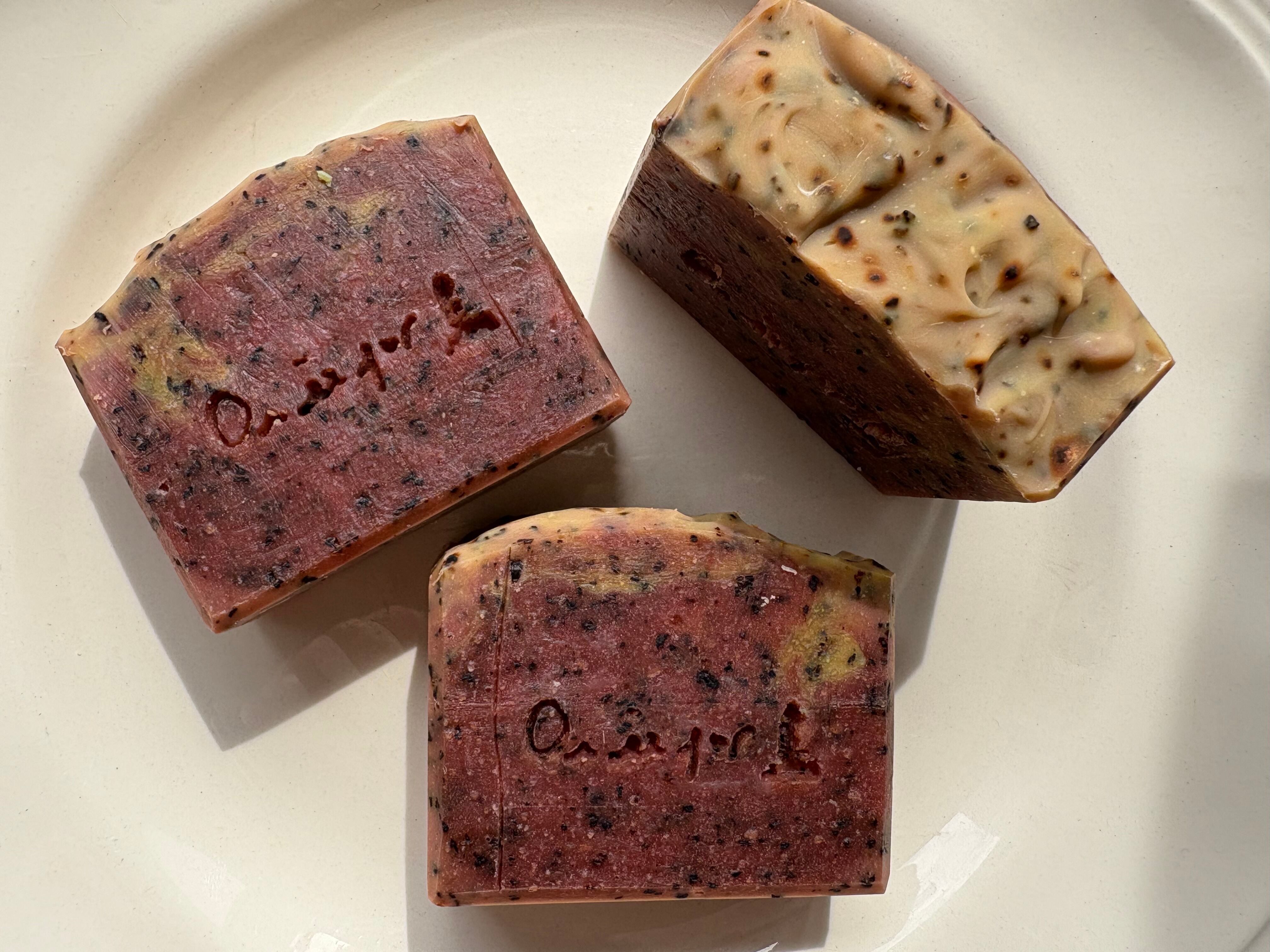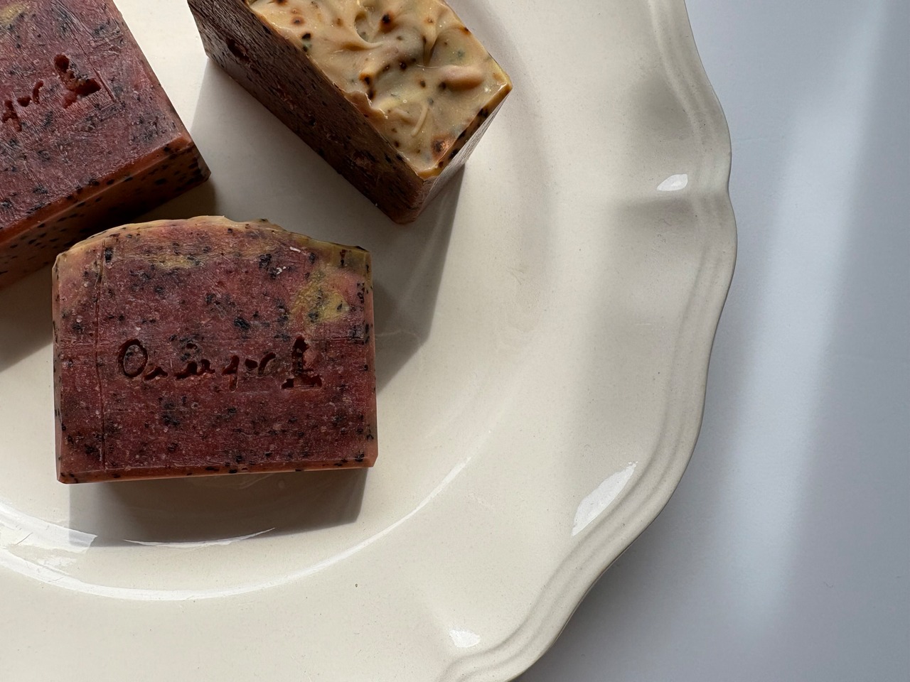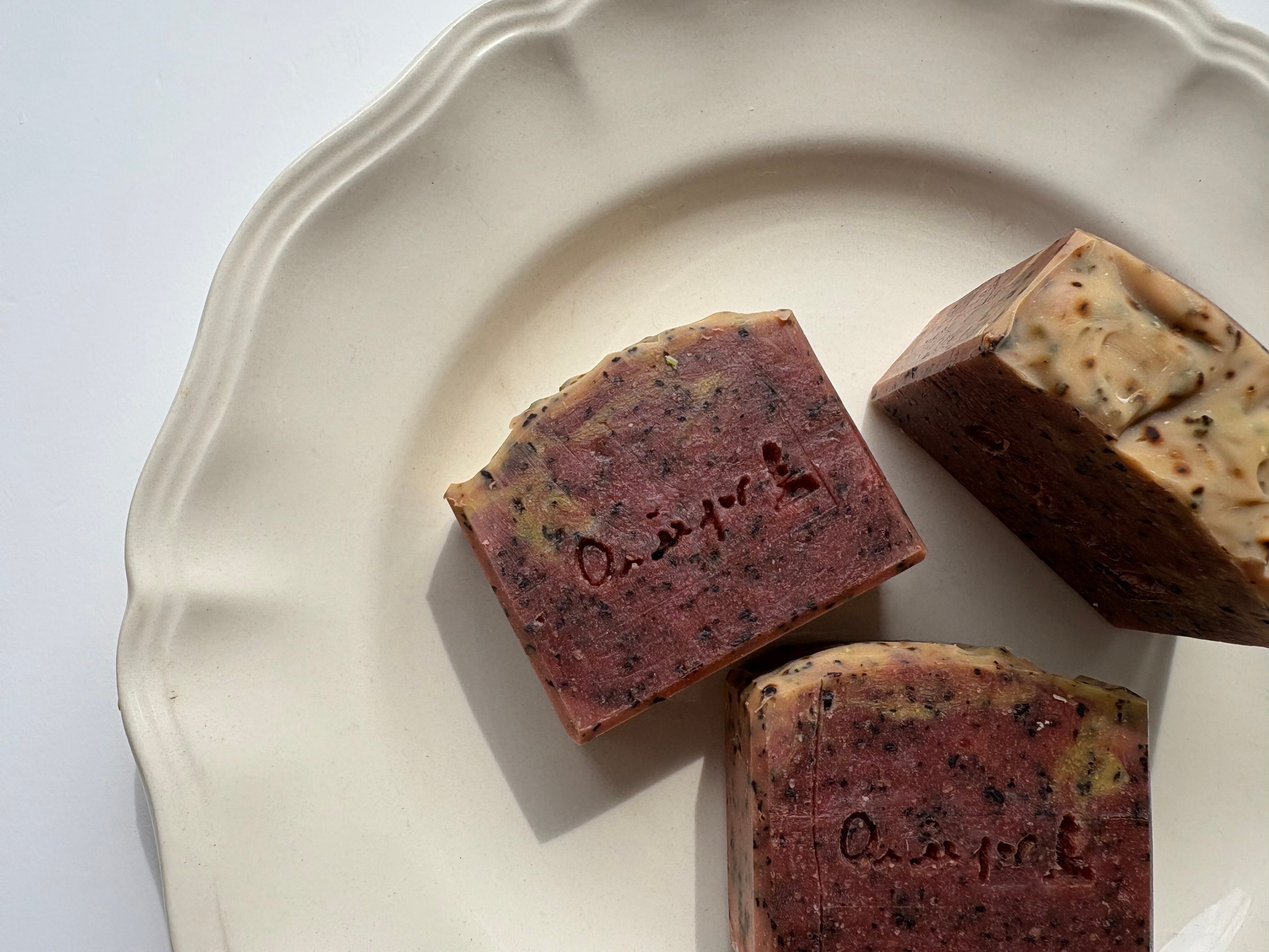 全てコールドプロセス・枠練り製法の手作り石鹼のため、色や形が写真と全く同じにはなりませんのでご了承ください。