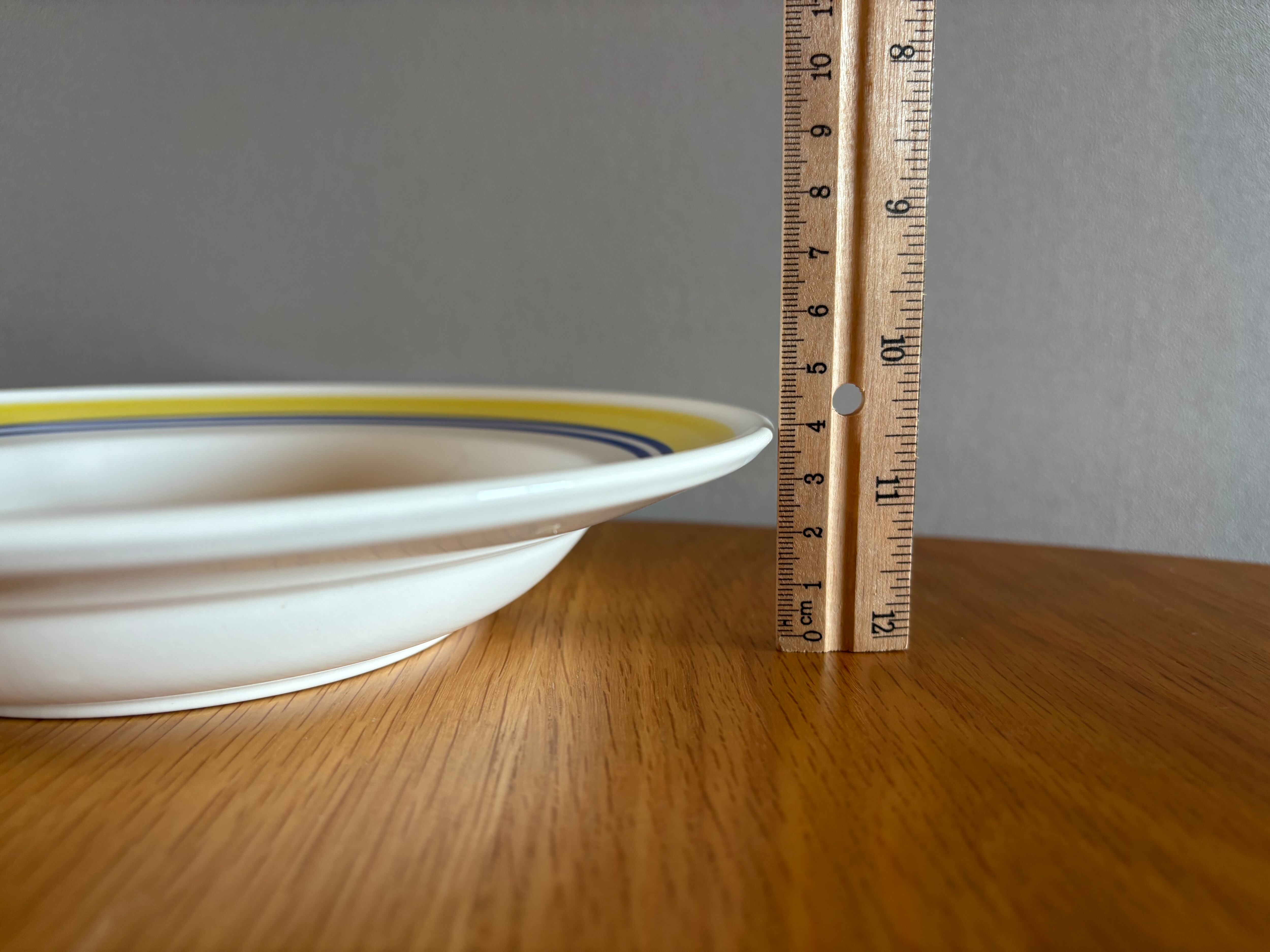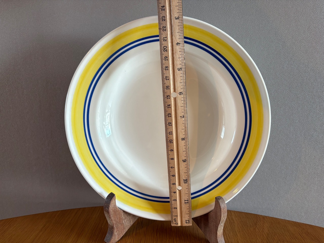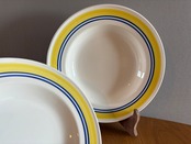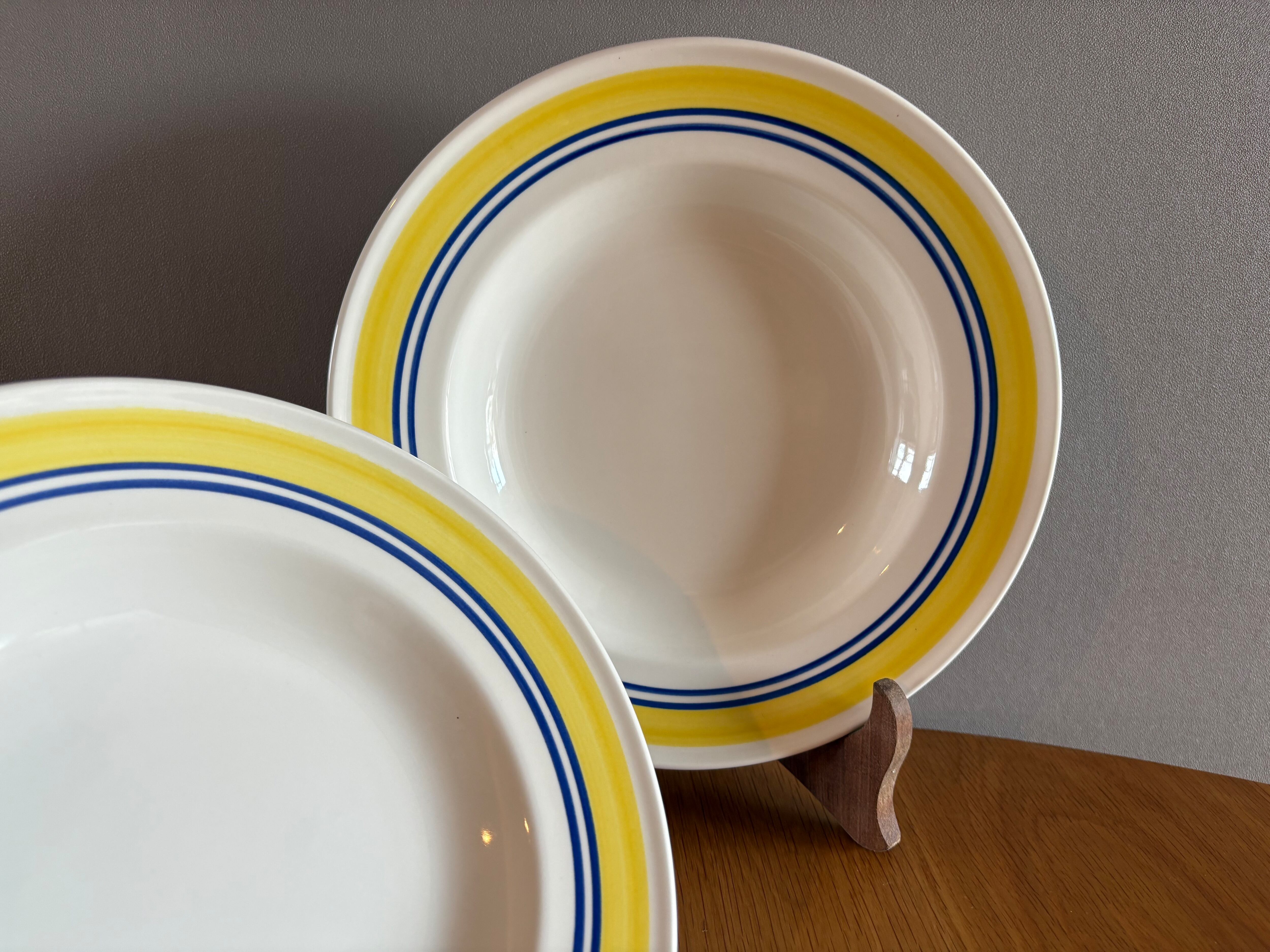 黄色と青のラインがアクセントになったポップで爽やかなデザインは、料理を引き立てるだけでなく、テーブルコーディネートのポイントにも。