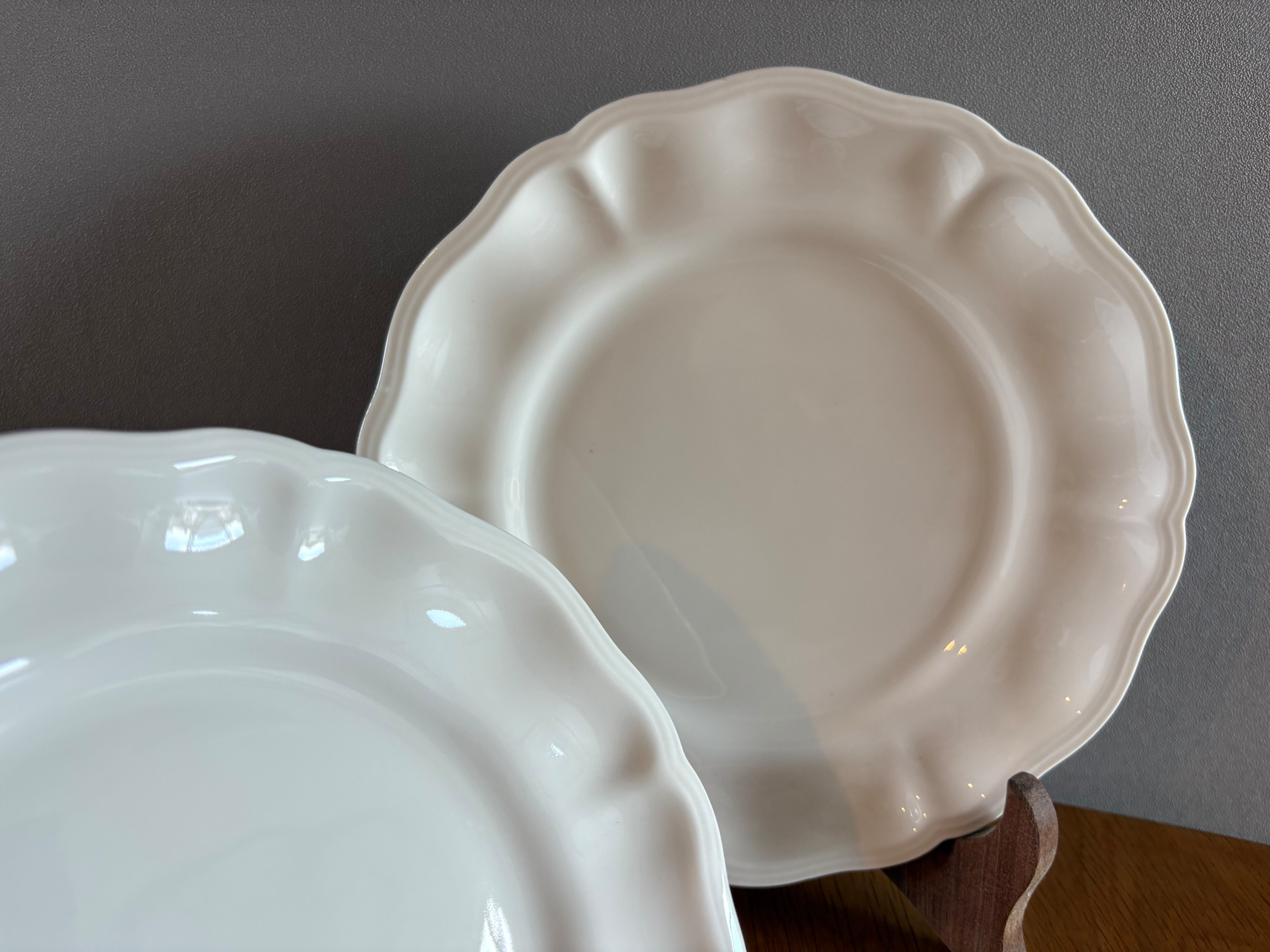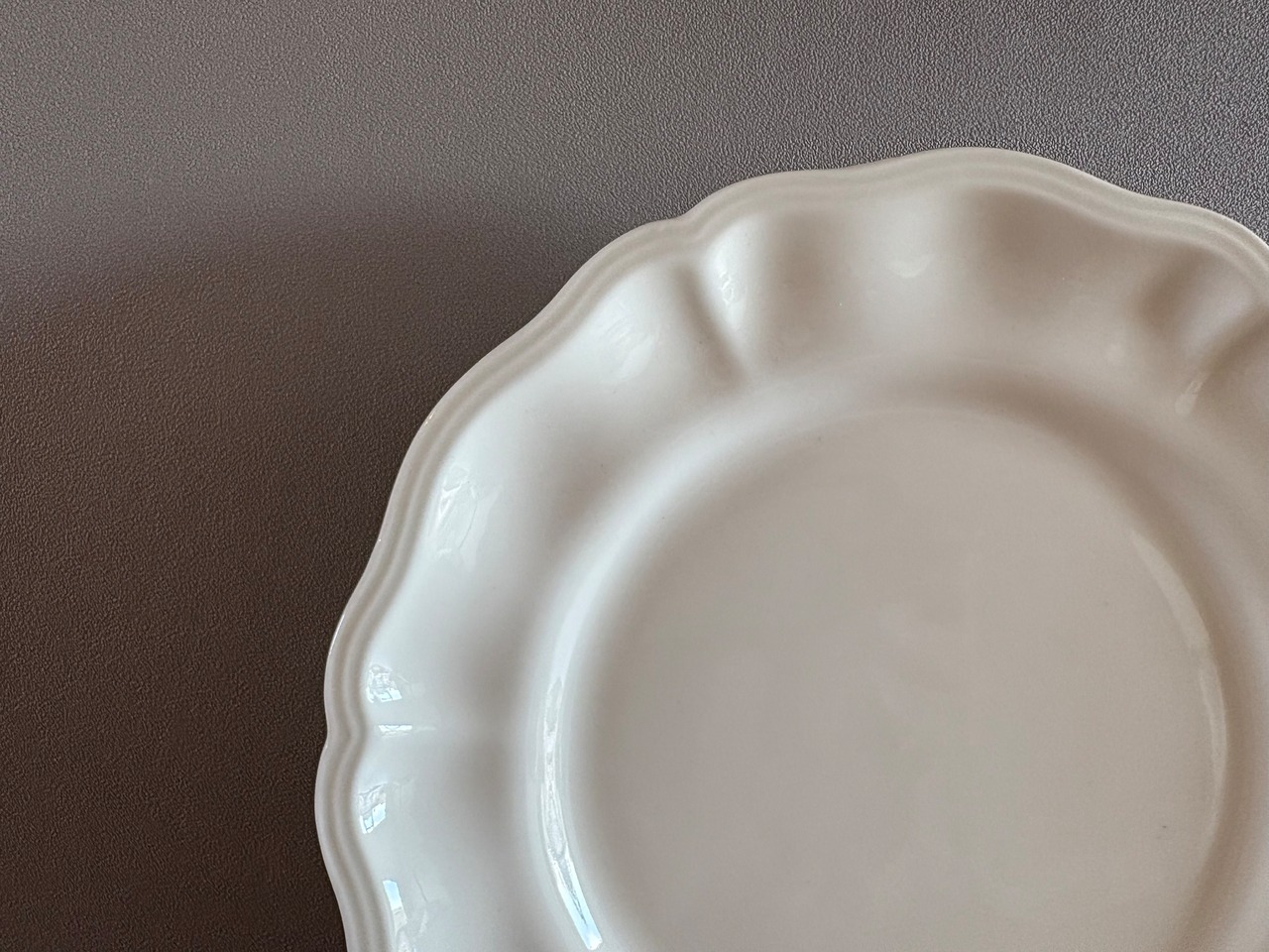 当店で取り扱いをしているフランスの食器は80年以上経過しているものが殆どです。古いものになりますので、貫入(釉薬の細かいひび割れ)やカトラリーによる傷、シミや汚れ、小さな欠けなどがあるものもございます。なるべく細かく写真を撮っておりますが、撮りきれない部分や水を含んで現れる貫入などもありますので、神経質な方や新品のようなクオリティーを求めるお客様には不向きな商品になっております。