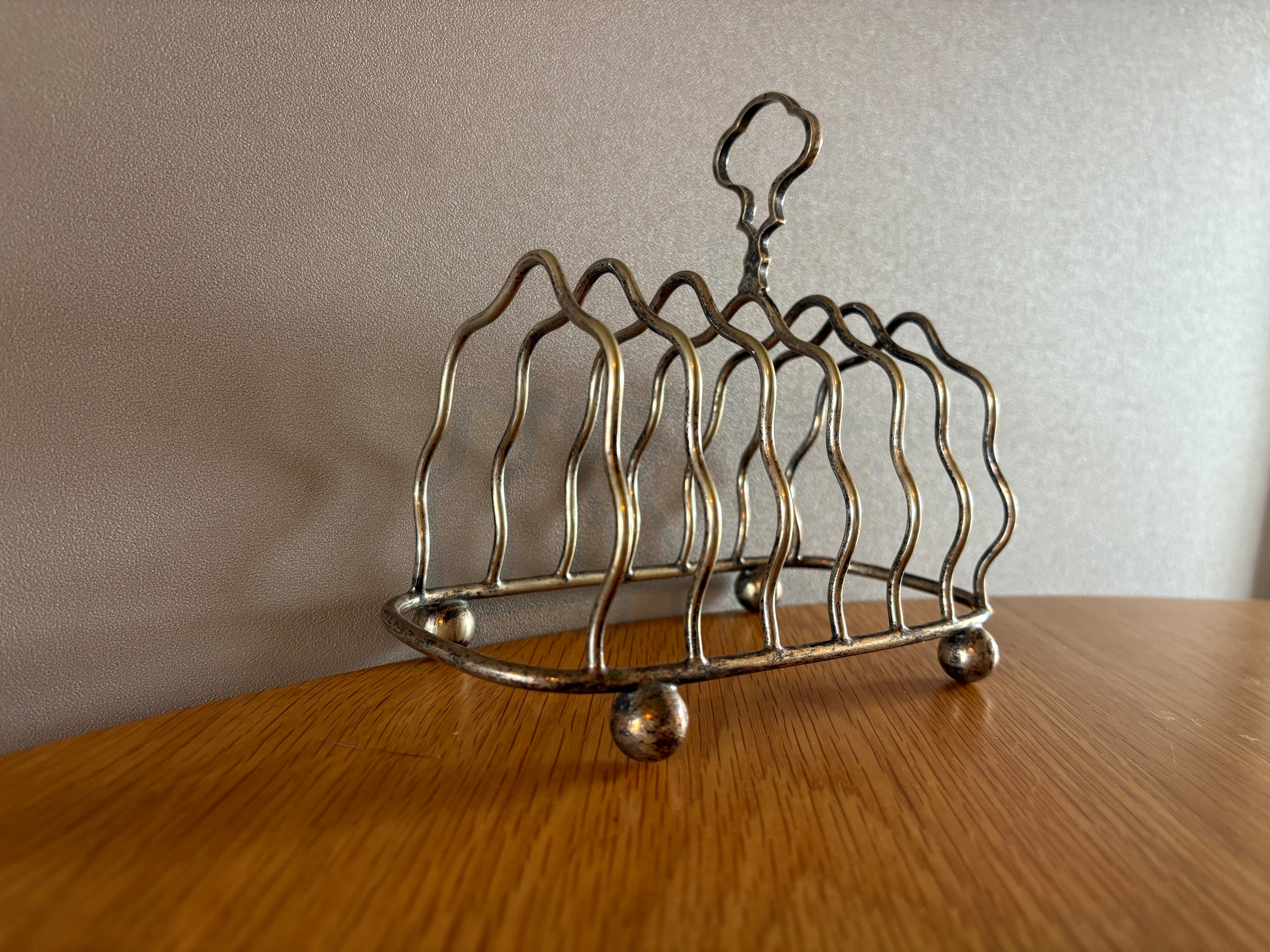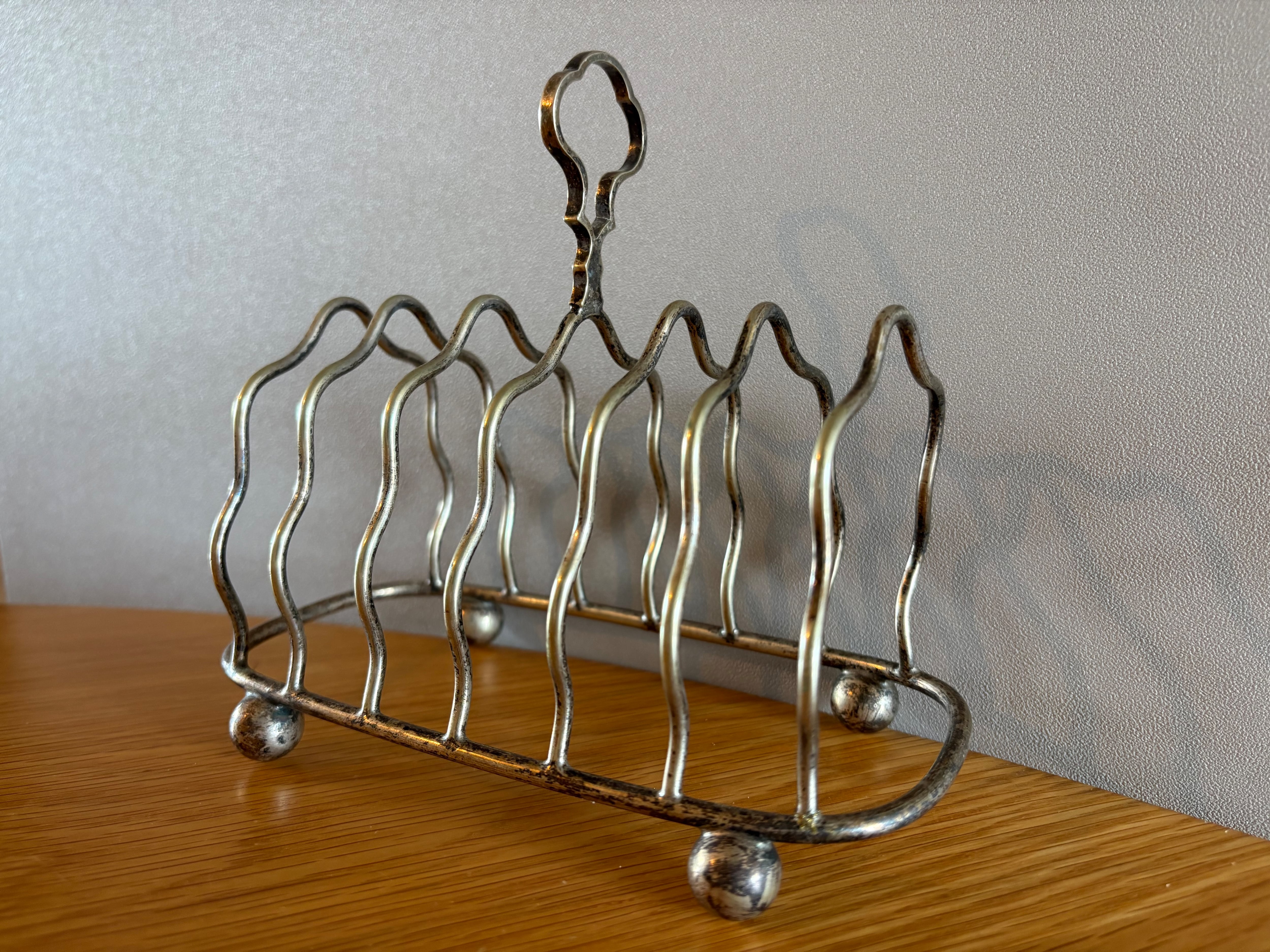 朝の光がやさしく差し込むテーブルに、こんな小さな輝きを添えてみませんか。こちらは、イギリスで長く愛されてきたアンティークのトーストラック。波打つような優美なラインと、程よく味わいを帯びたシルバーの風合いが魅力です。