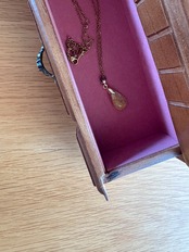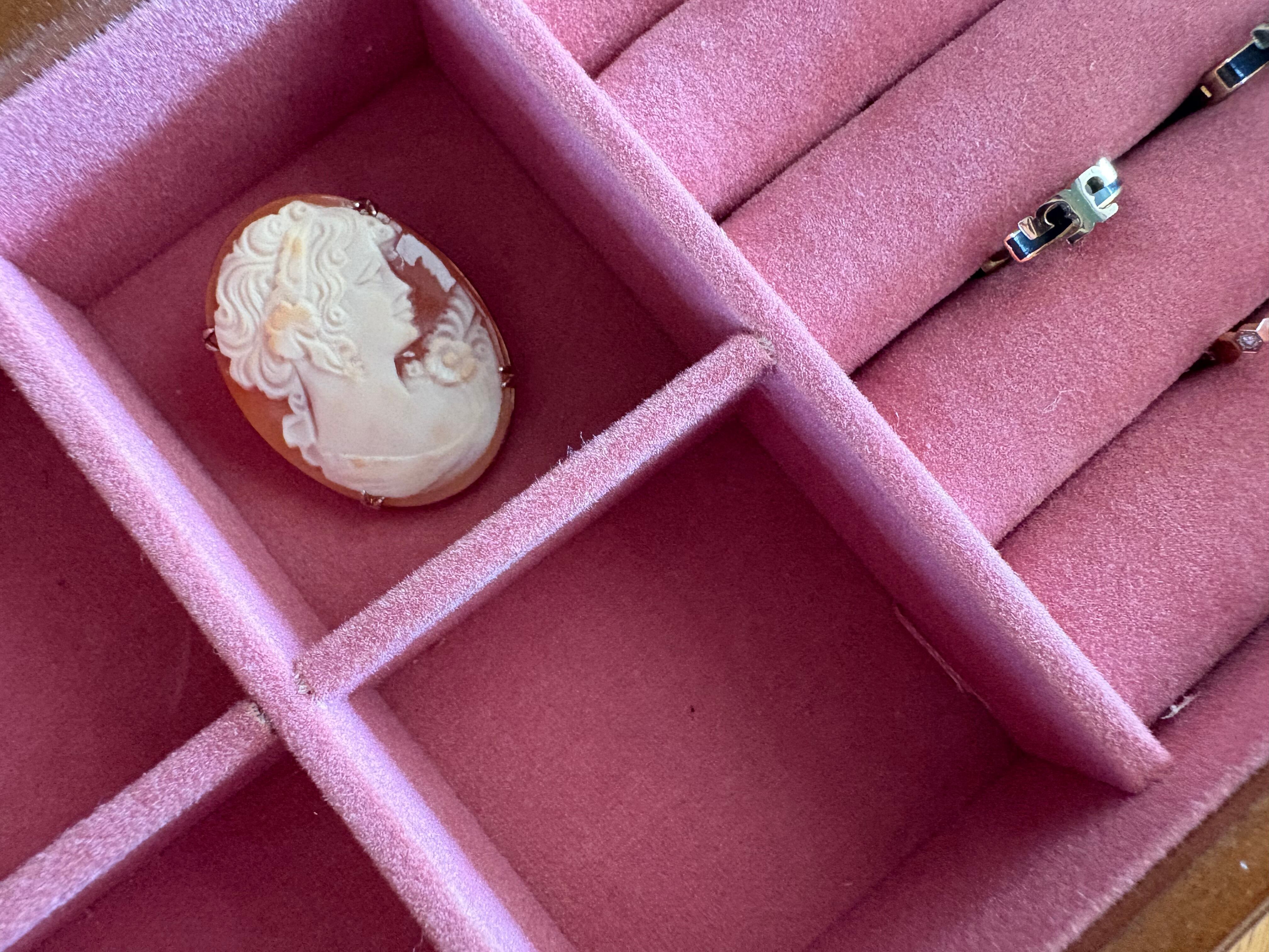 内側は優しいピンクのベルベット調生地で仕上げられ、大切なアクセサリーをやさしく守ります。