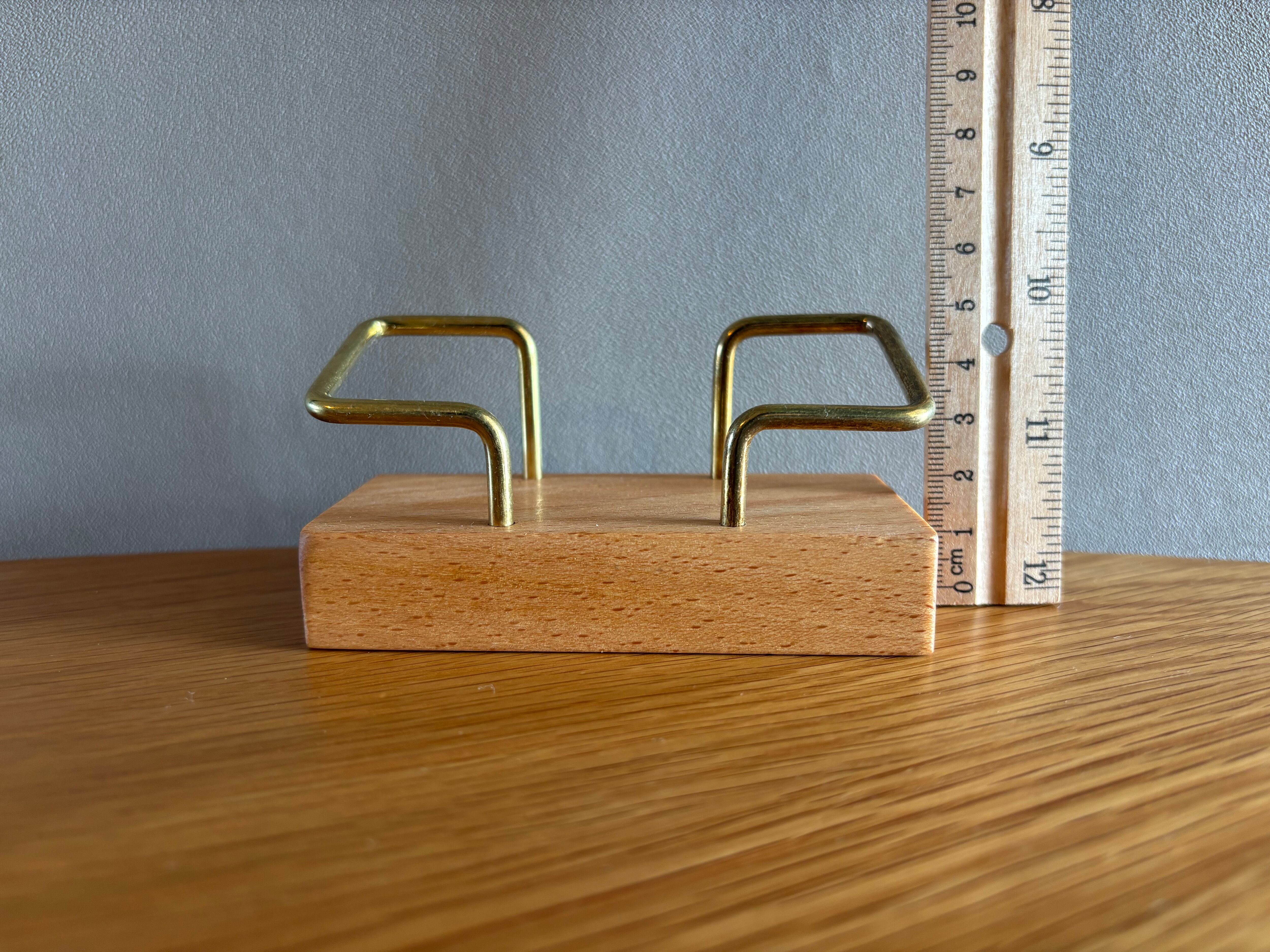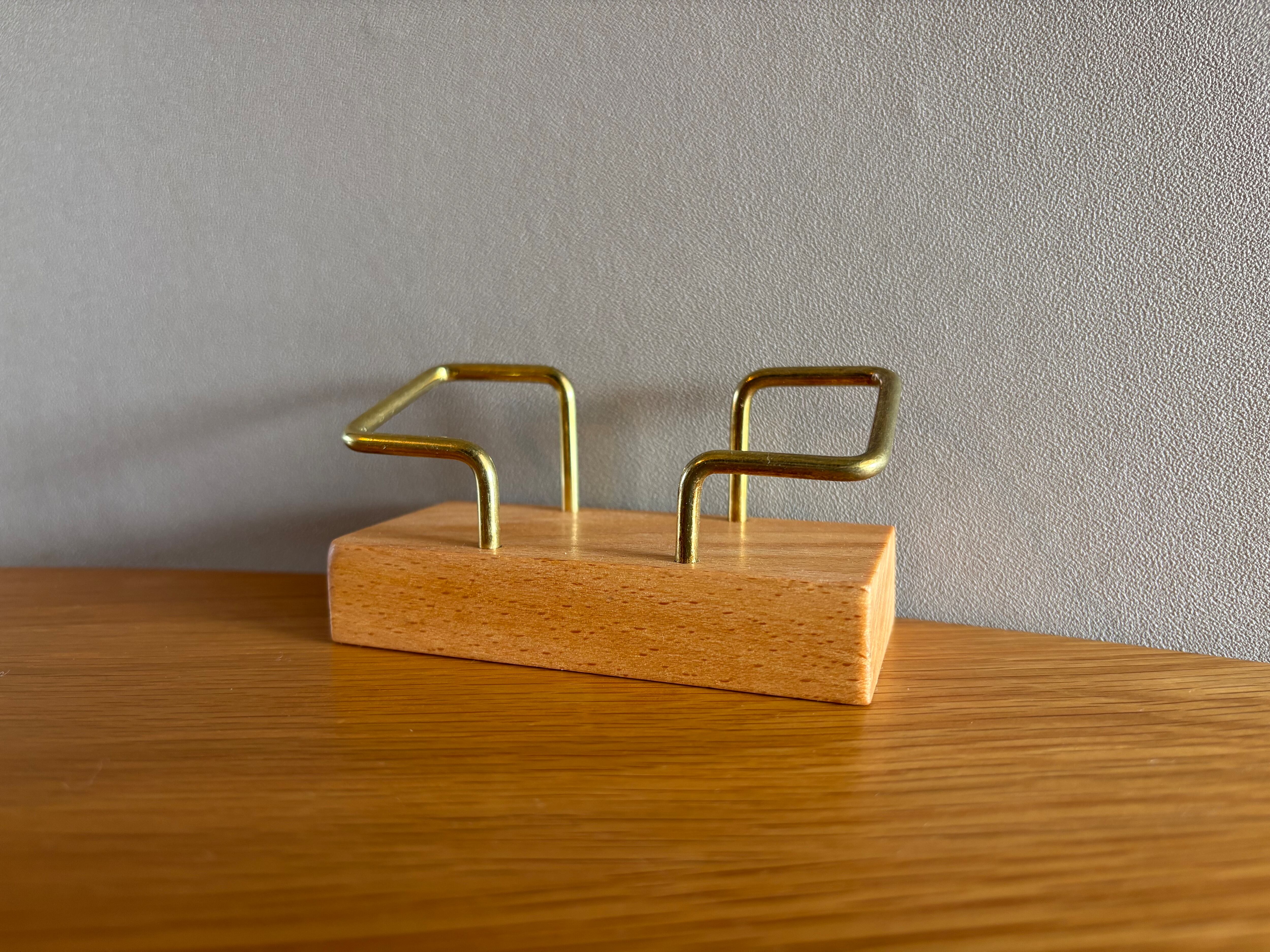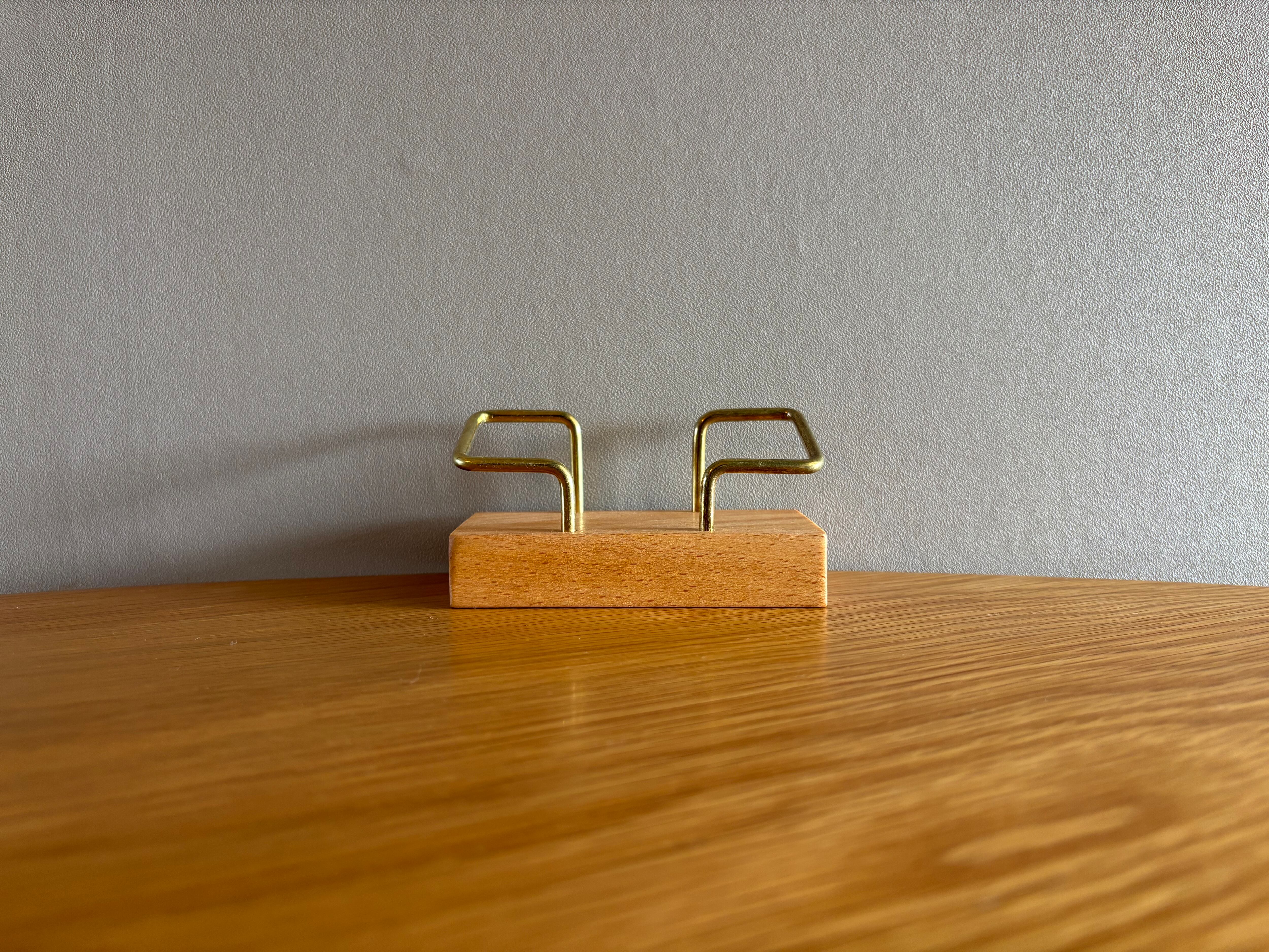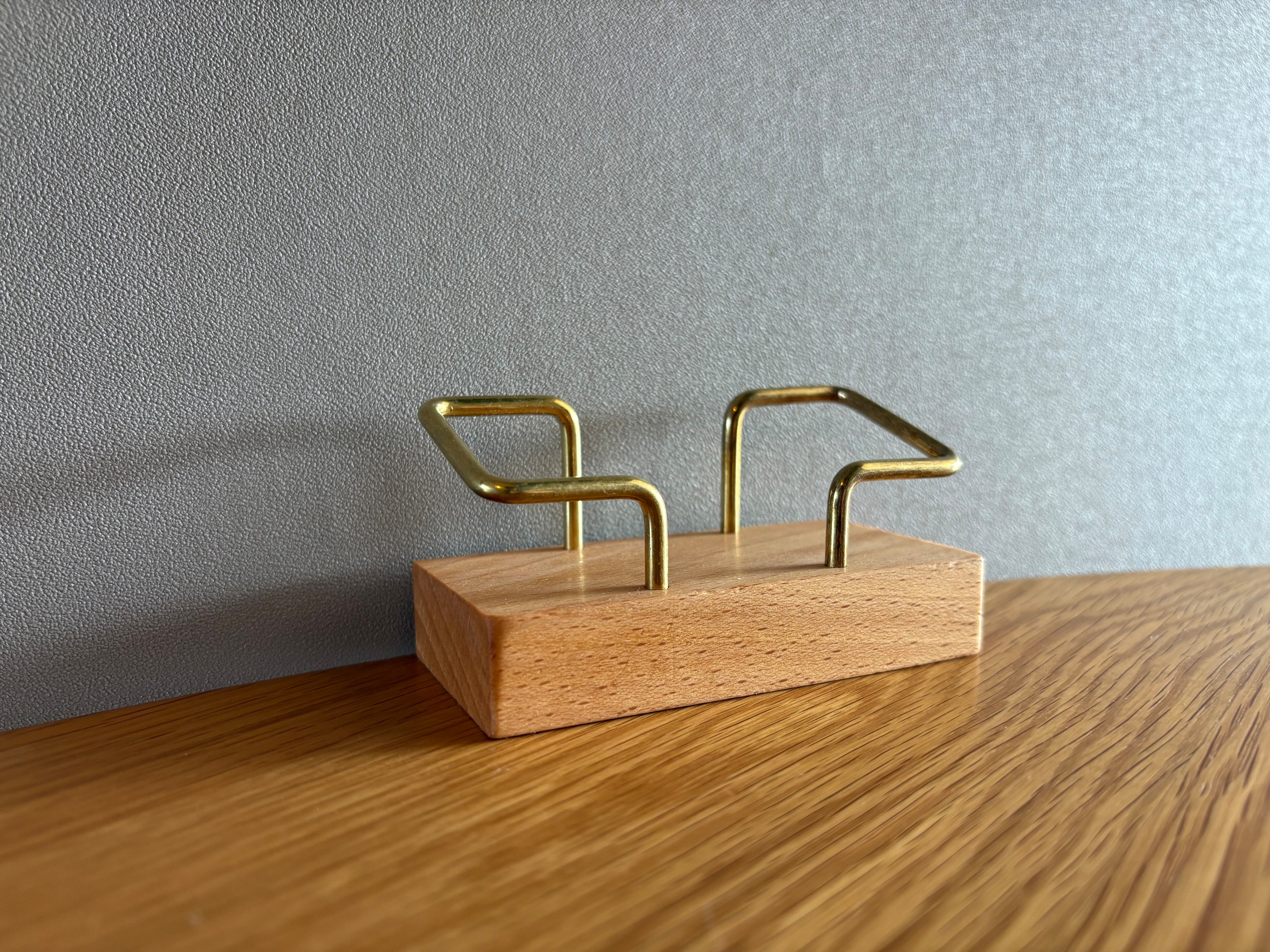 真鍮は時とともに深みを増し、木のベースは穏やかな表情を育てていきます。
