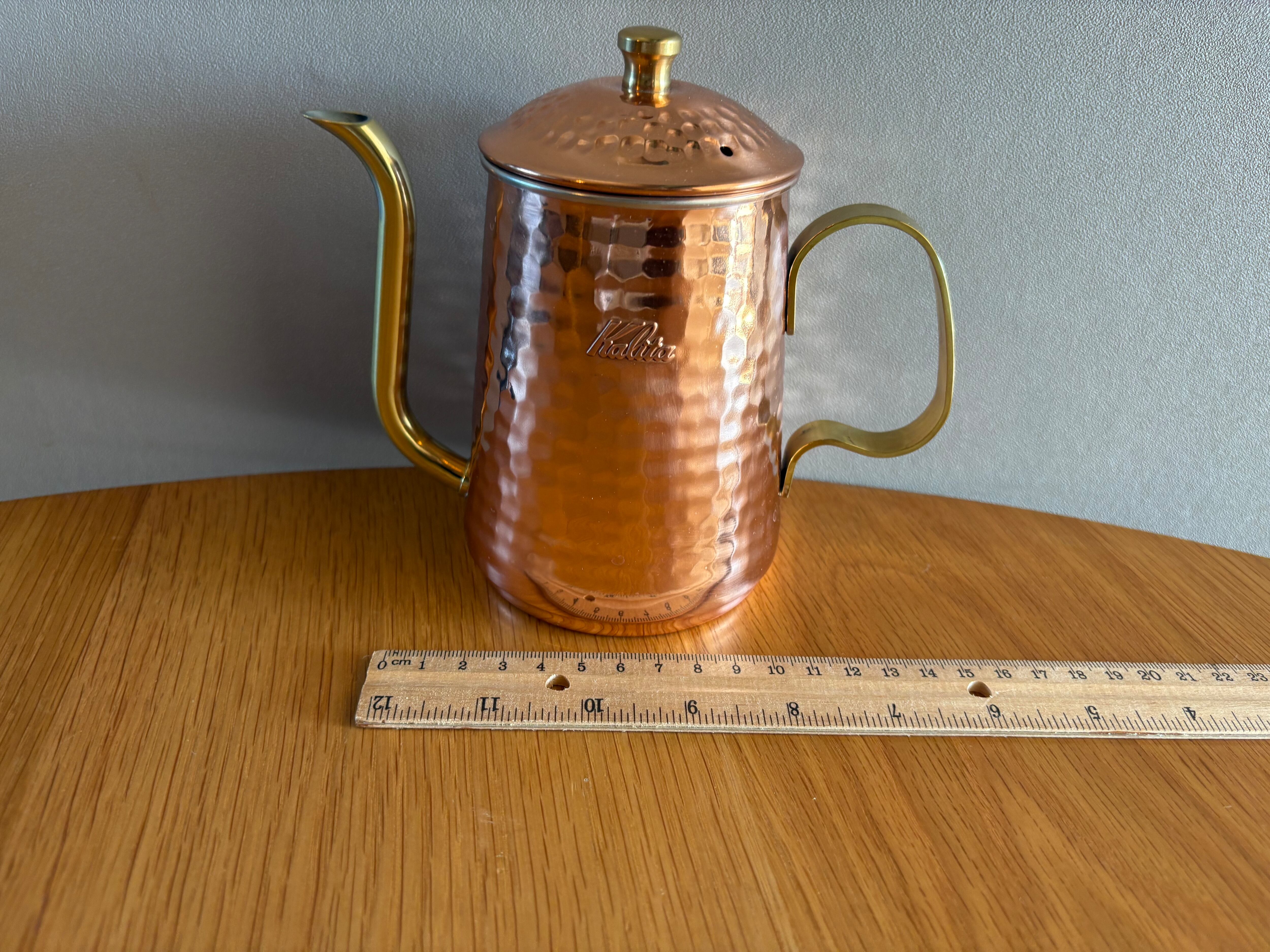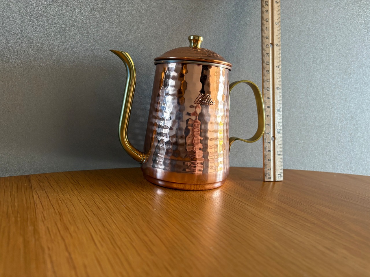 銅の質感が美しく際立つ、Kalita のドリップポット。