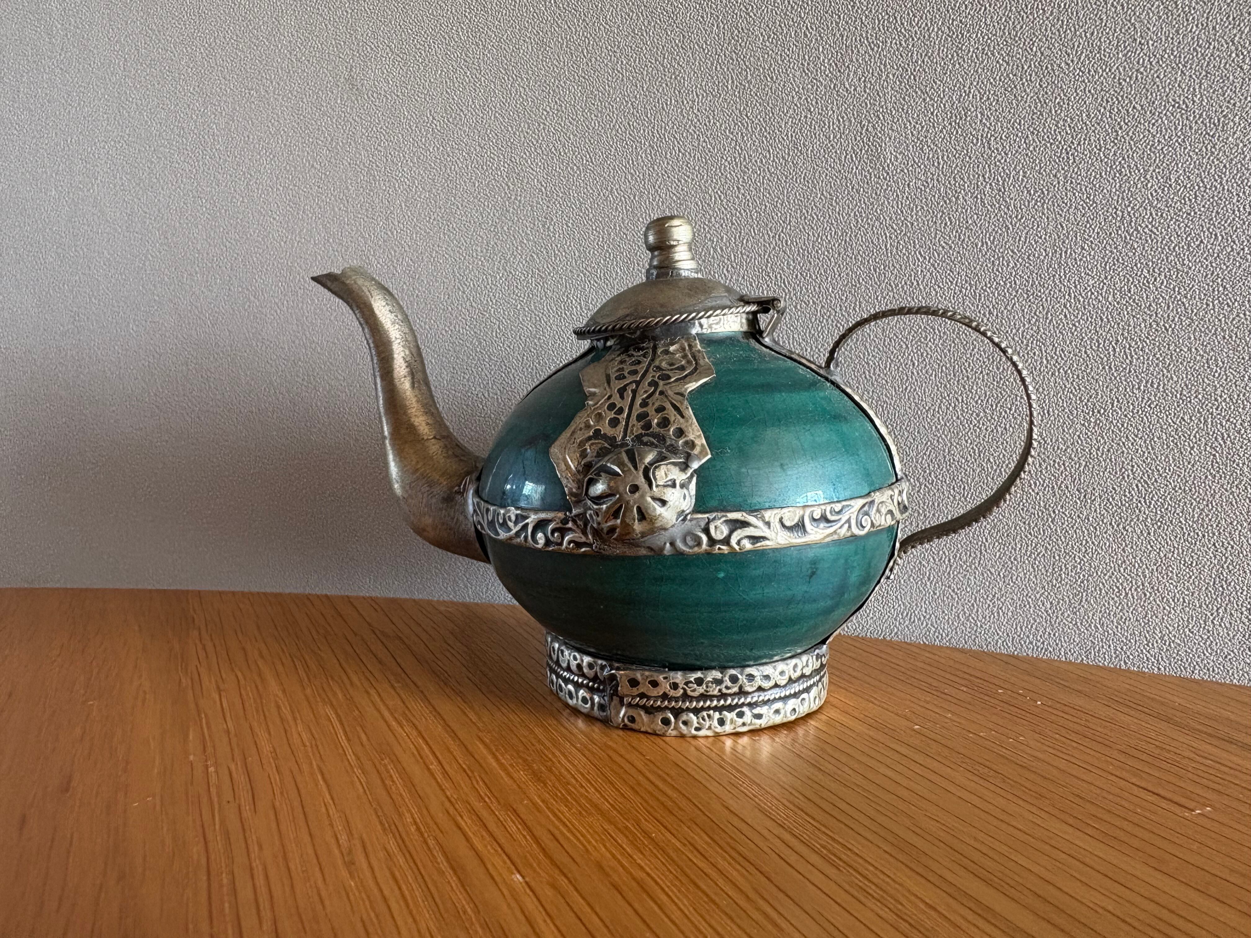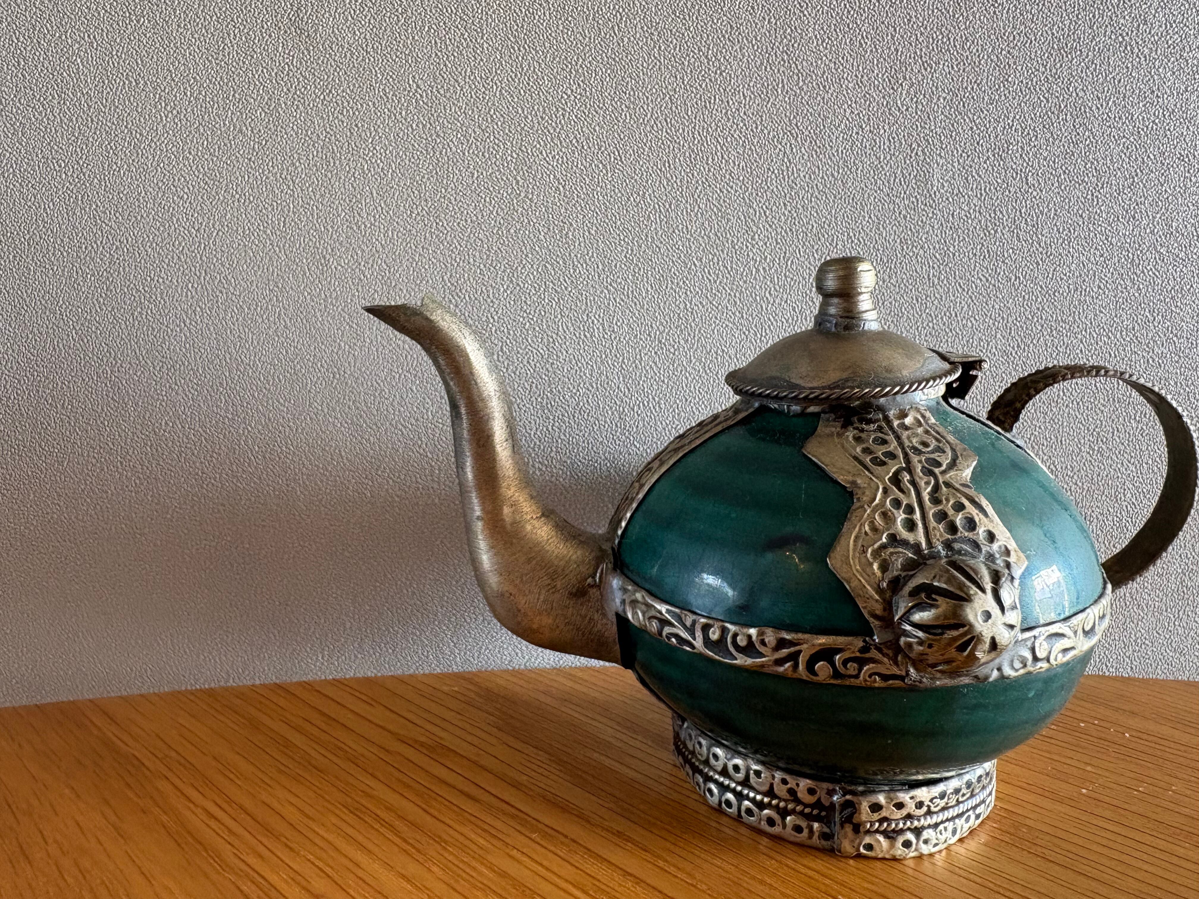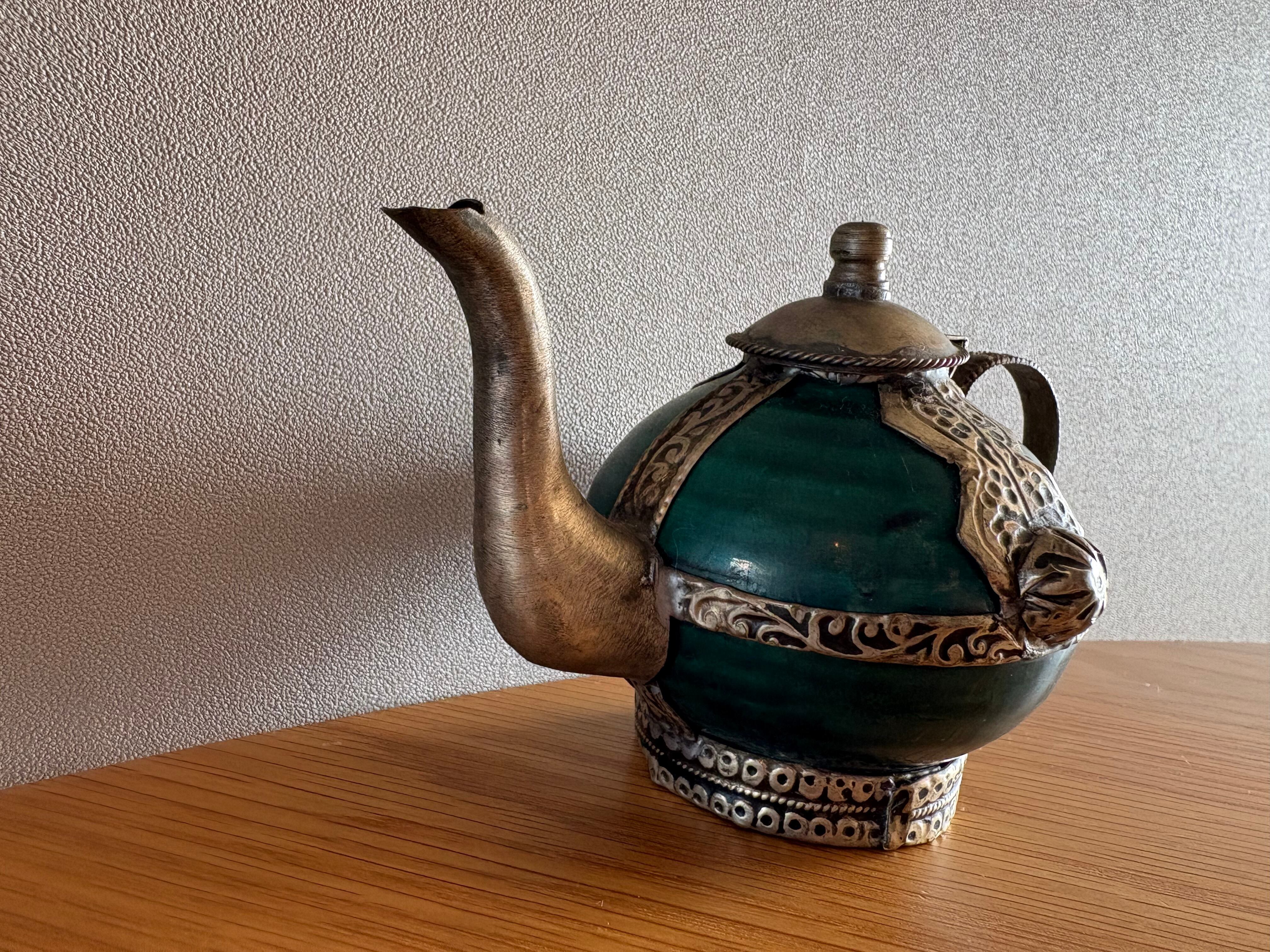 モロッコの古いターコイズ装飾ティーポット
