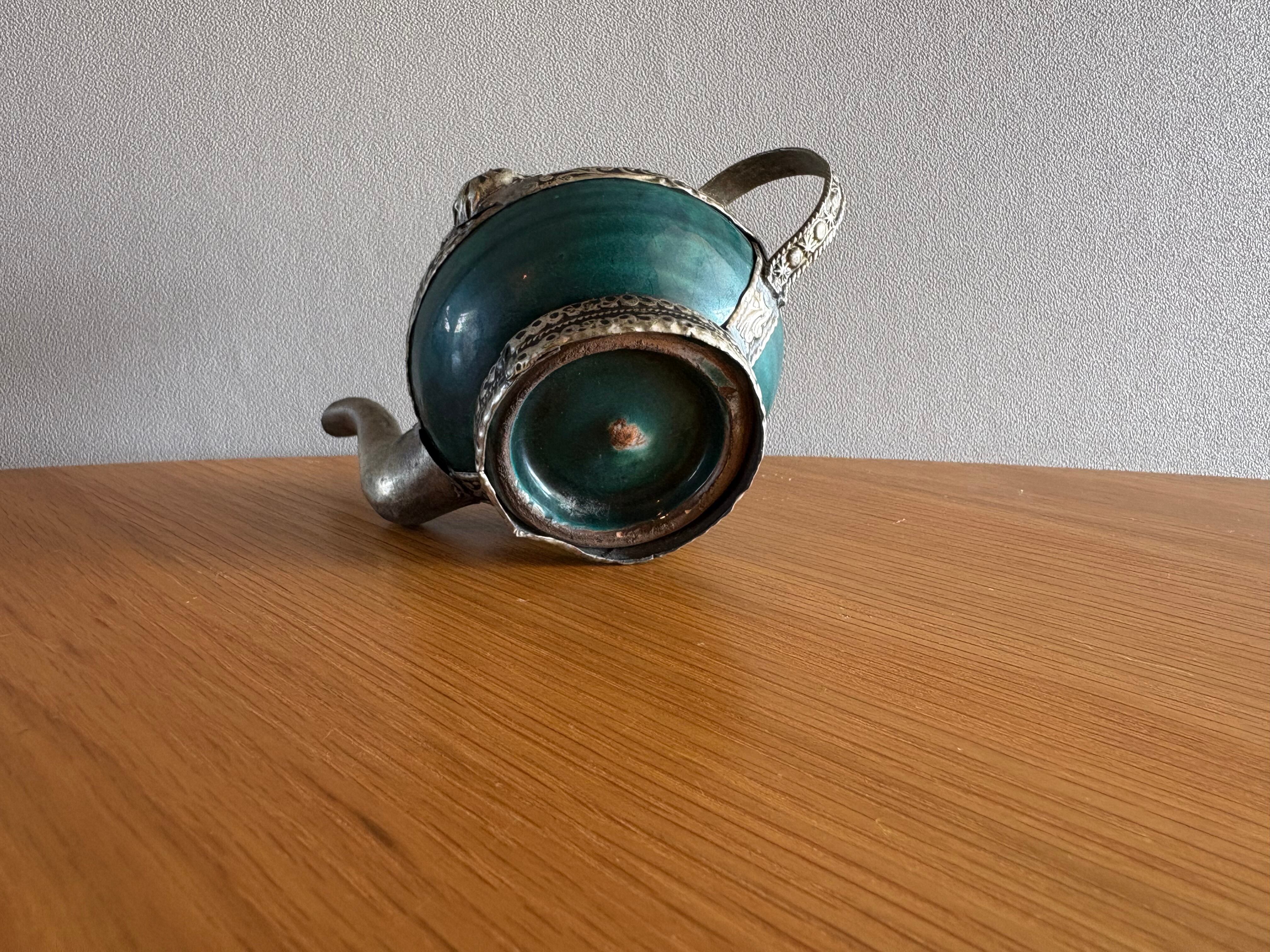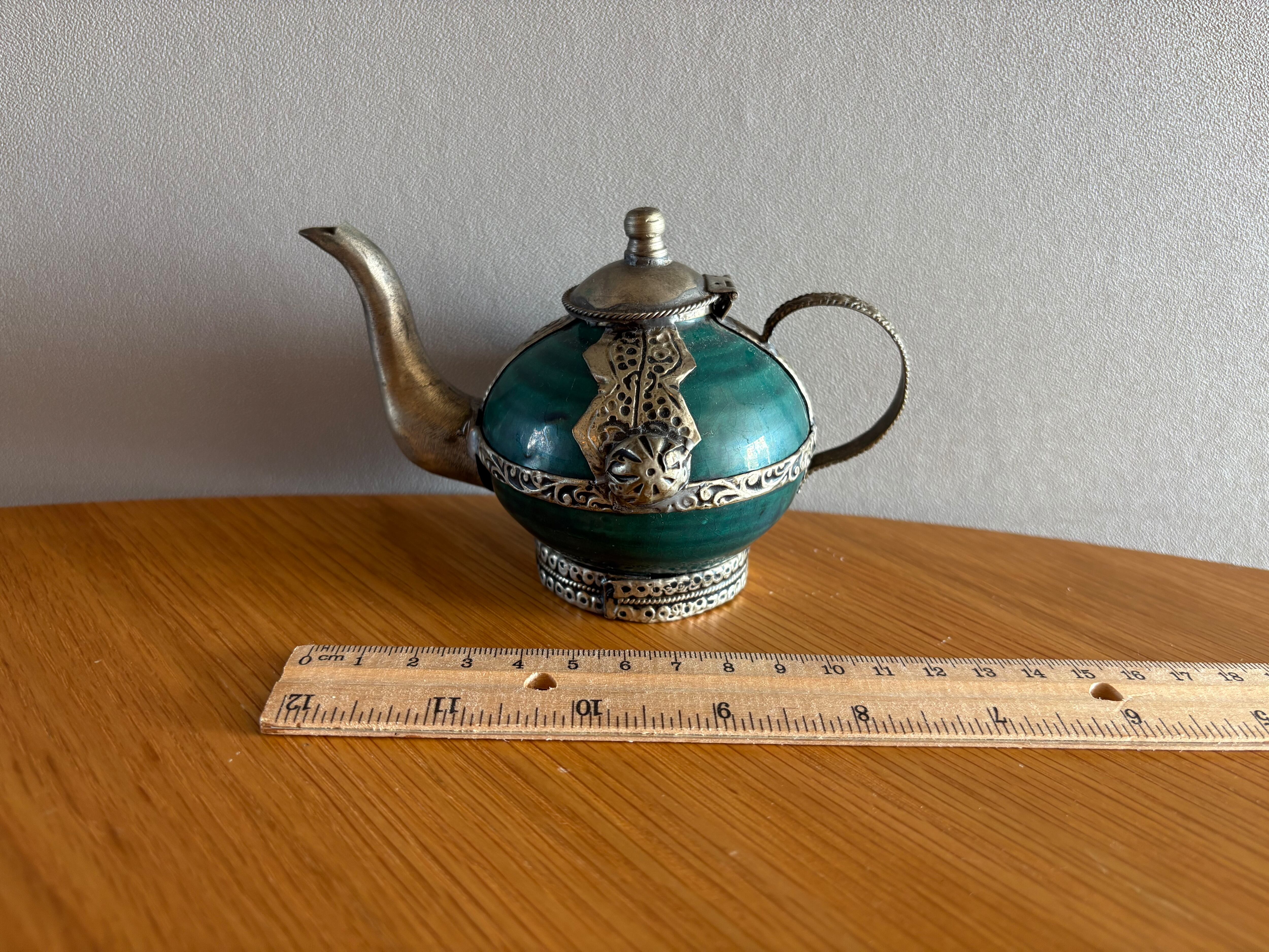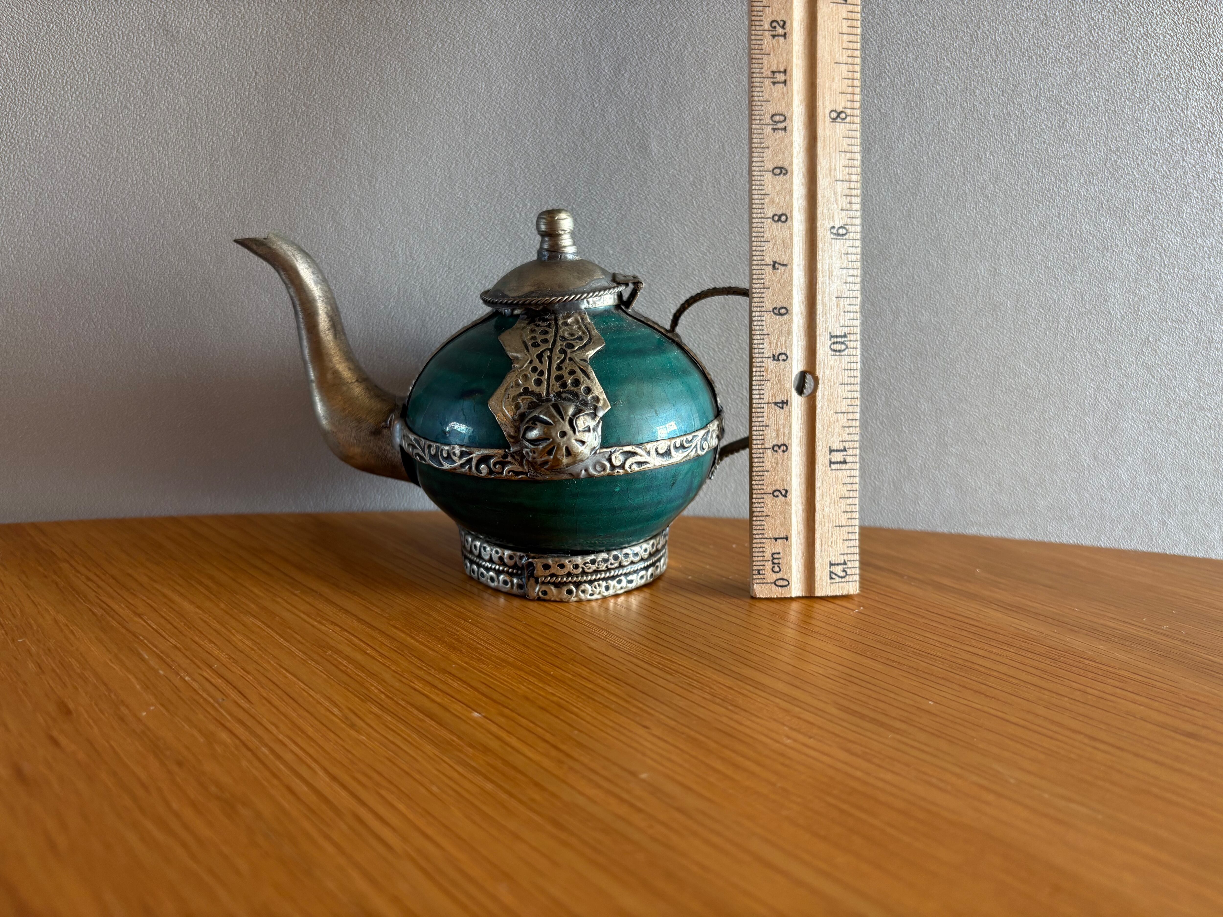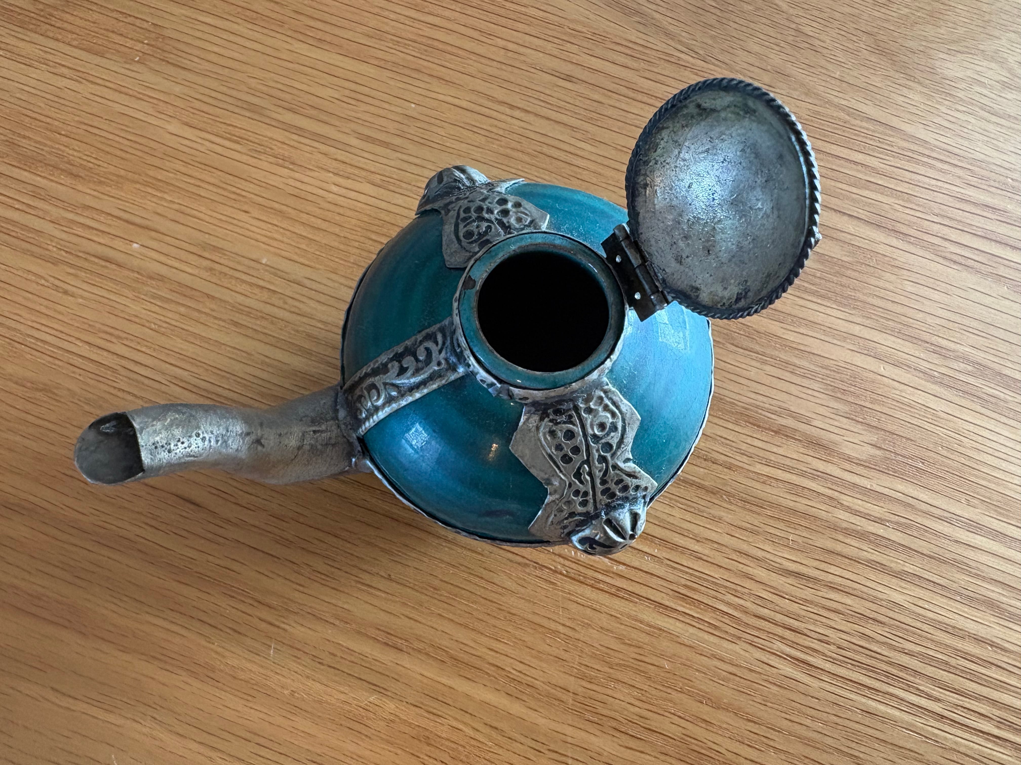 モロッコの古いターコイズ装飾ティーポット