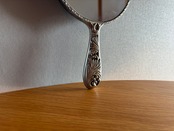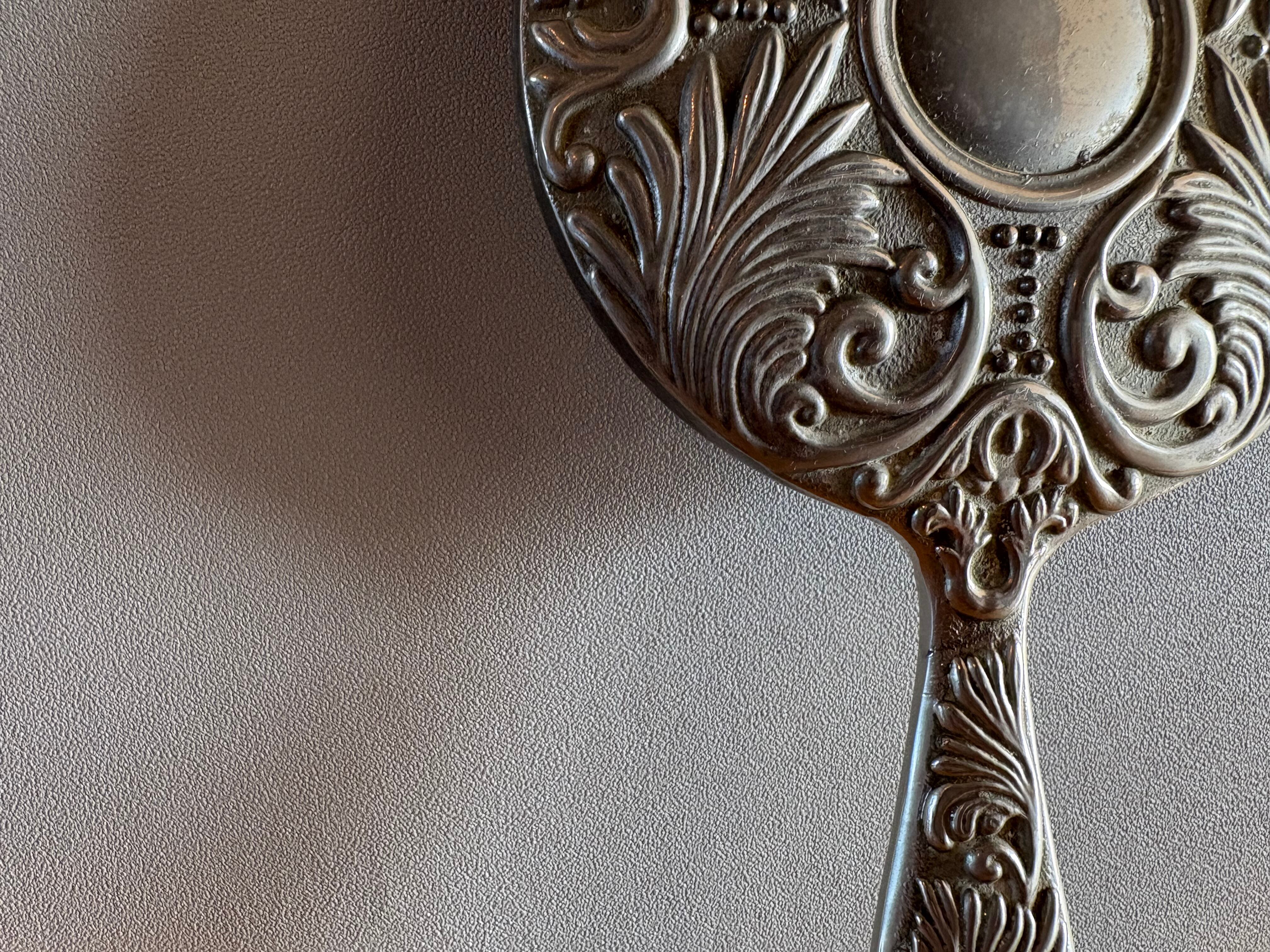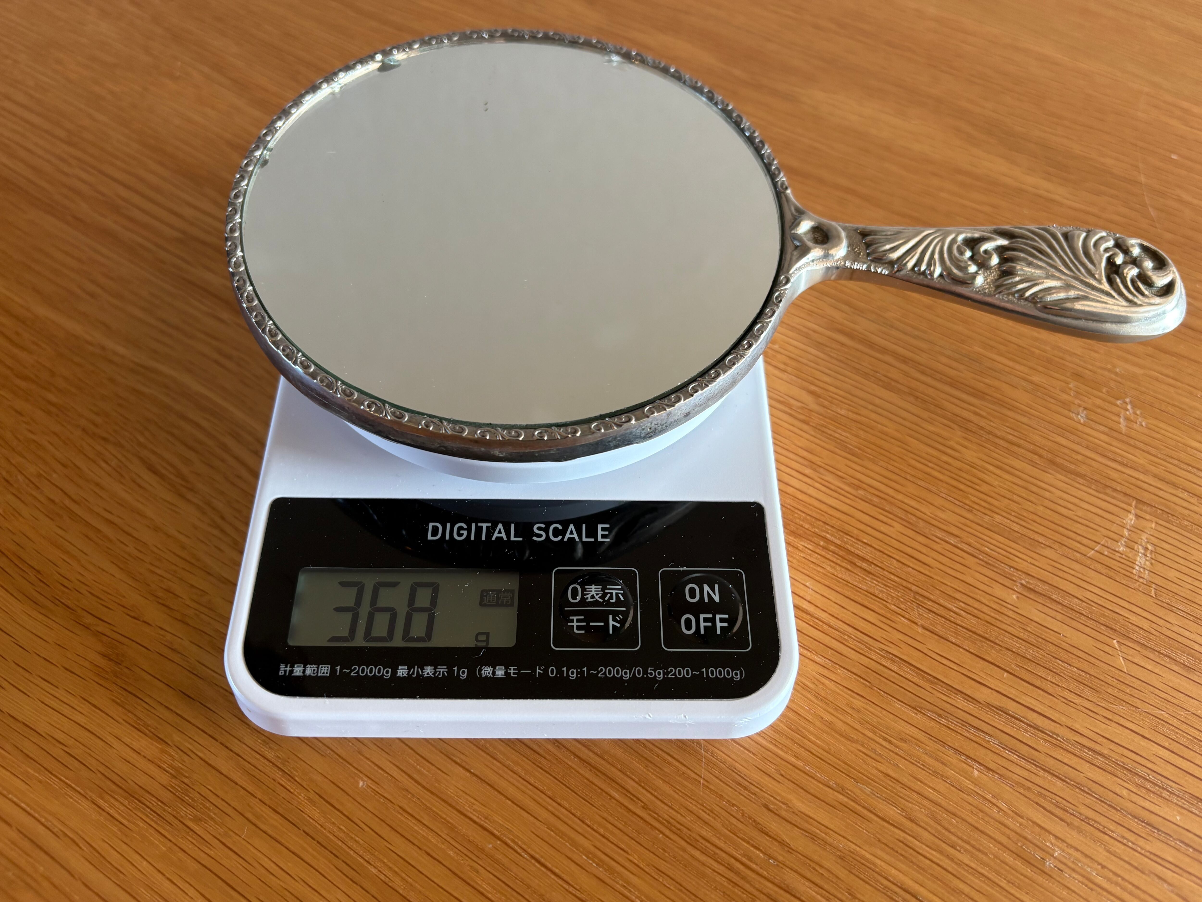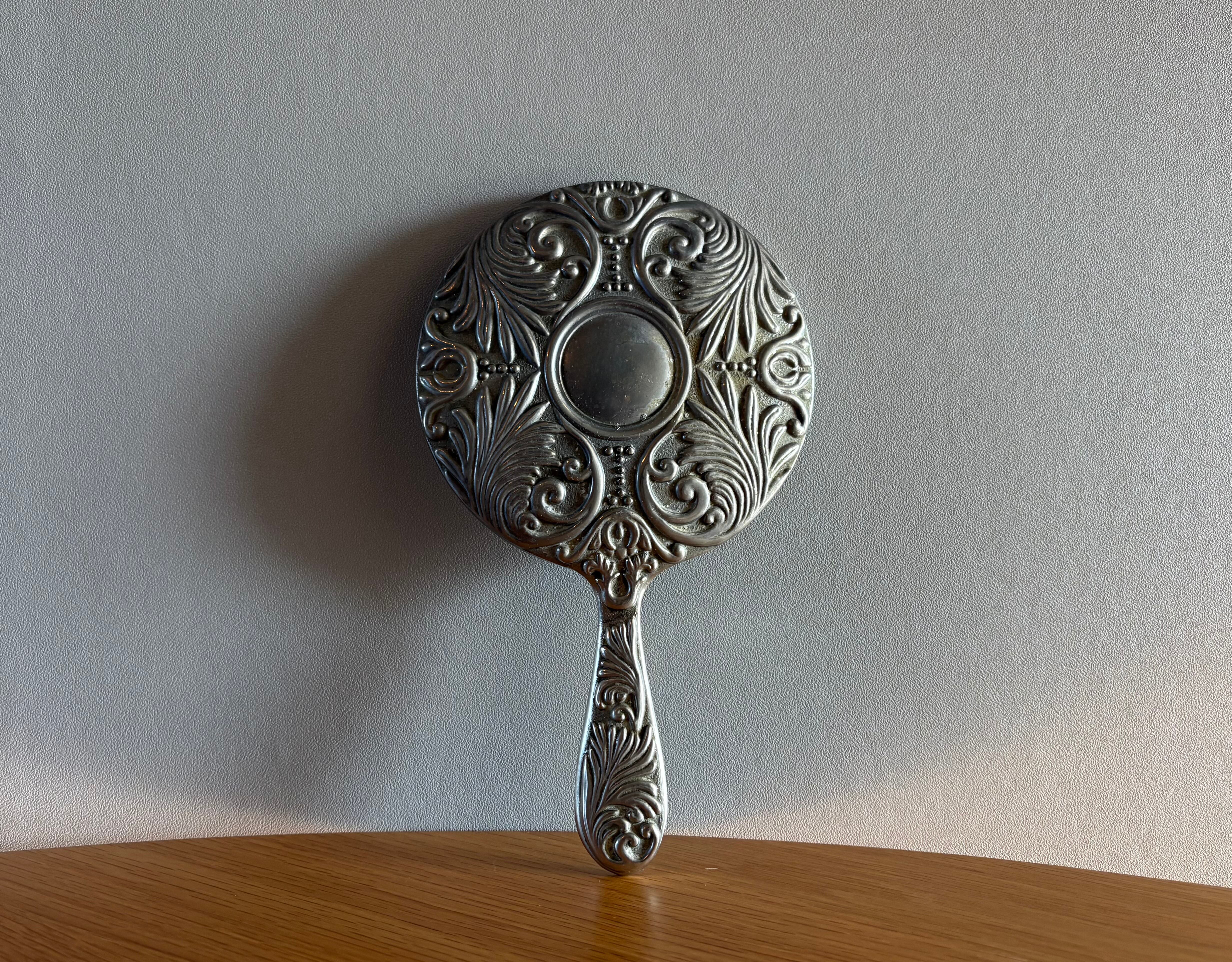 経年によるくすみや細かな擦れが見られますが、アンティークならではの深い風合いとしてお楽しみいただけます。鏡面は日常使用には問題のない程度で、映りは良好です。