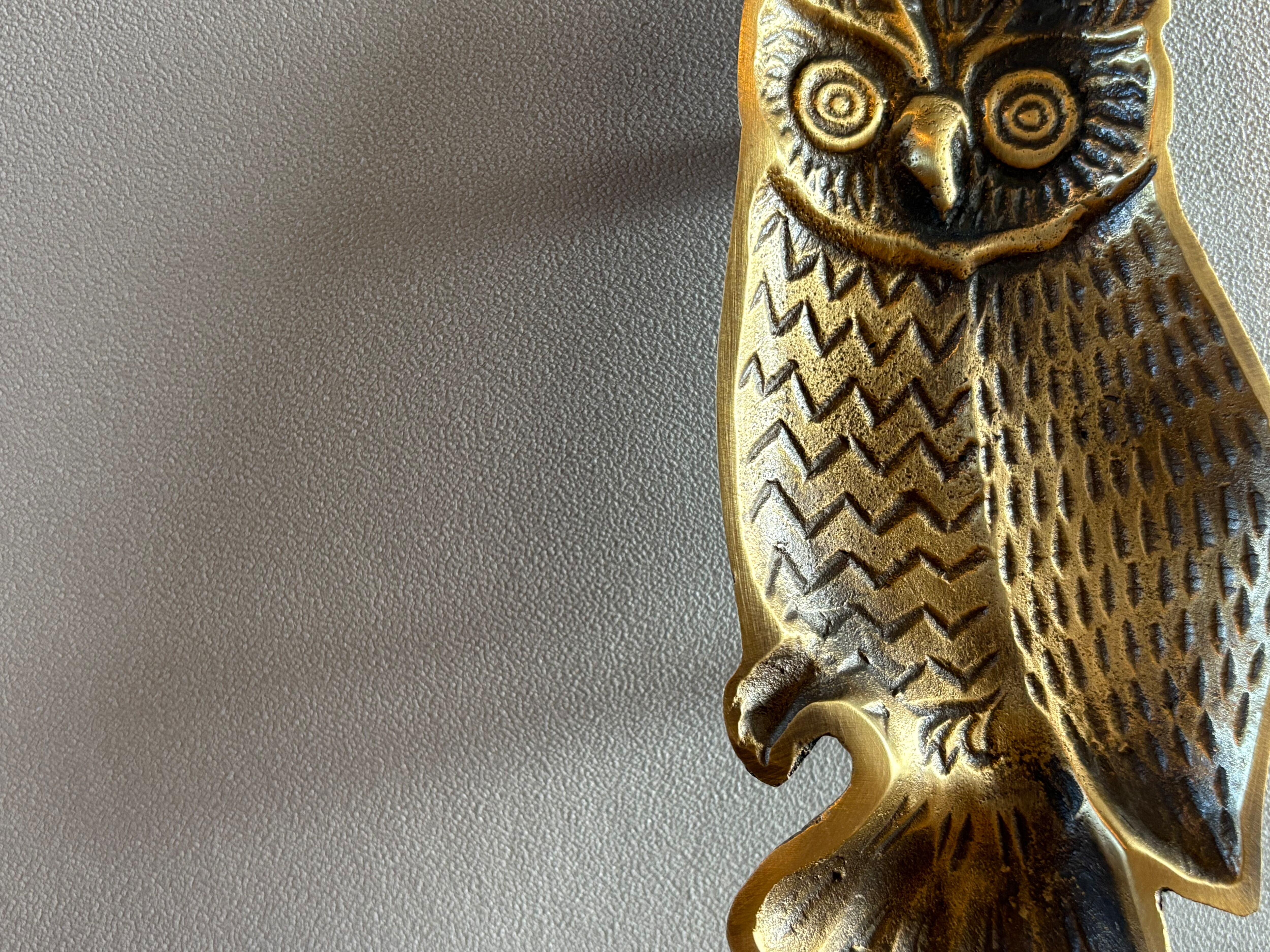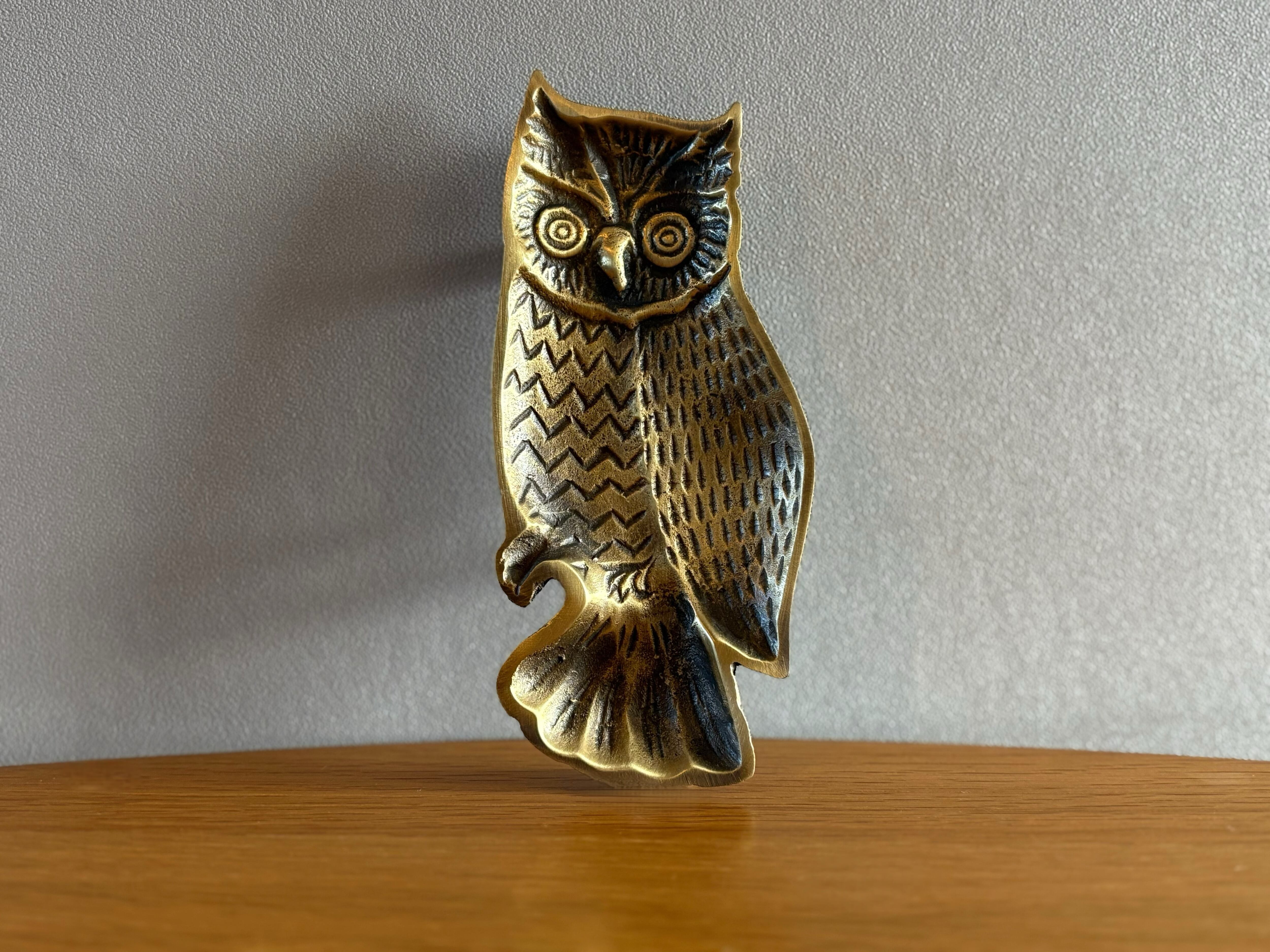知恵と幸運の象徴として親しまれるフクロウをモチーフにした、真鍮製のトレーです。
