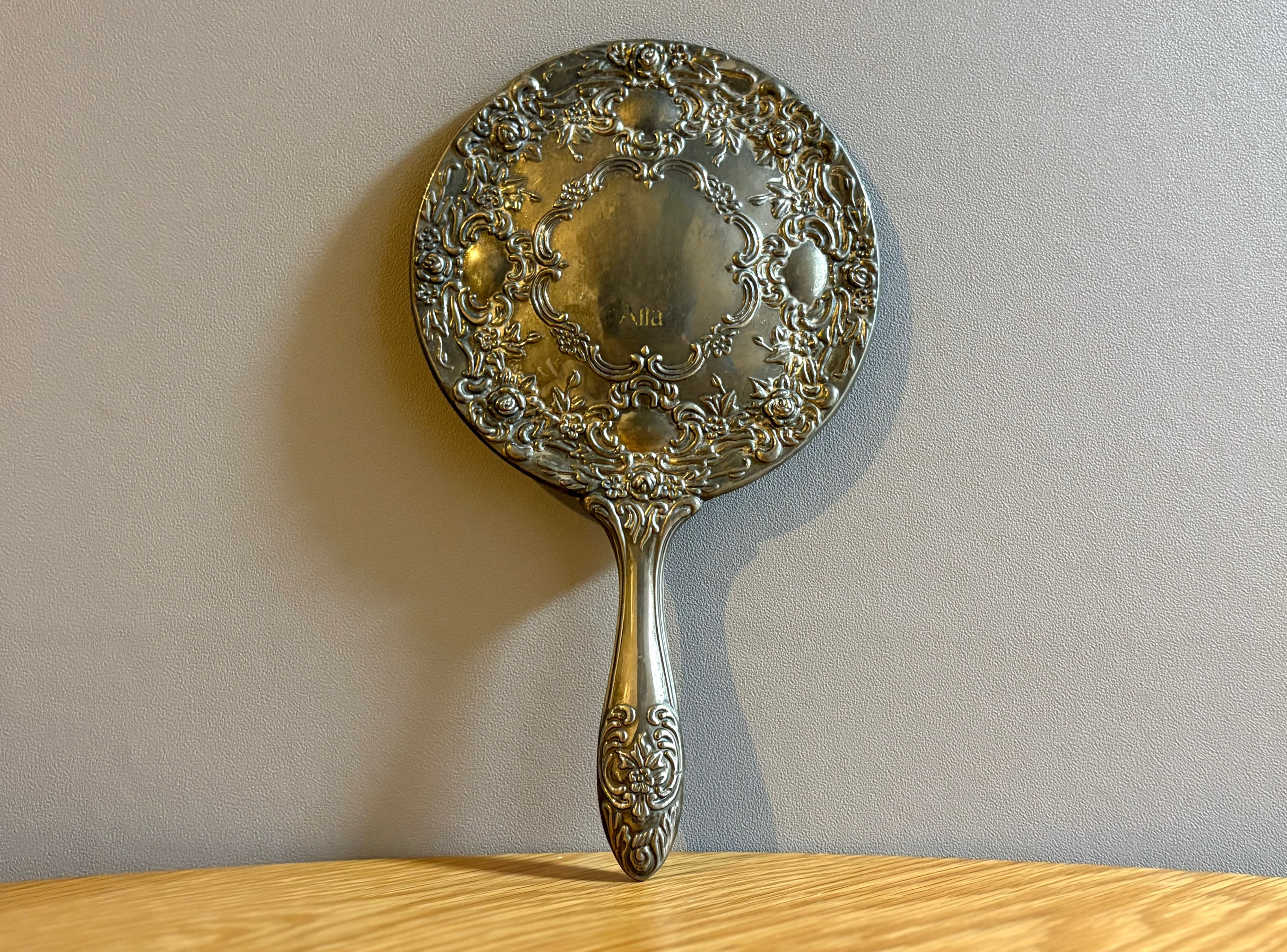 英国らしい優雅さと存在感のある手鏡です。