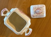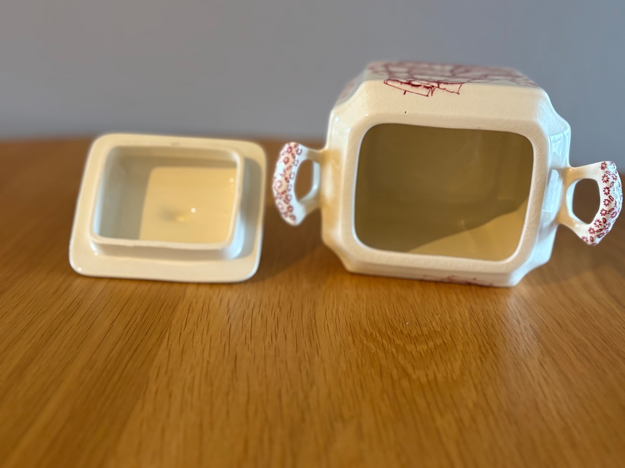 傷や汚れ、くすみなどありますが、長い年月をかけて愛用されたからこそ生まれたアンティークならではの深みのある表情もお楽しみくださいませ。フタの内側部分にカケがあります。