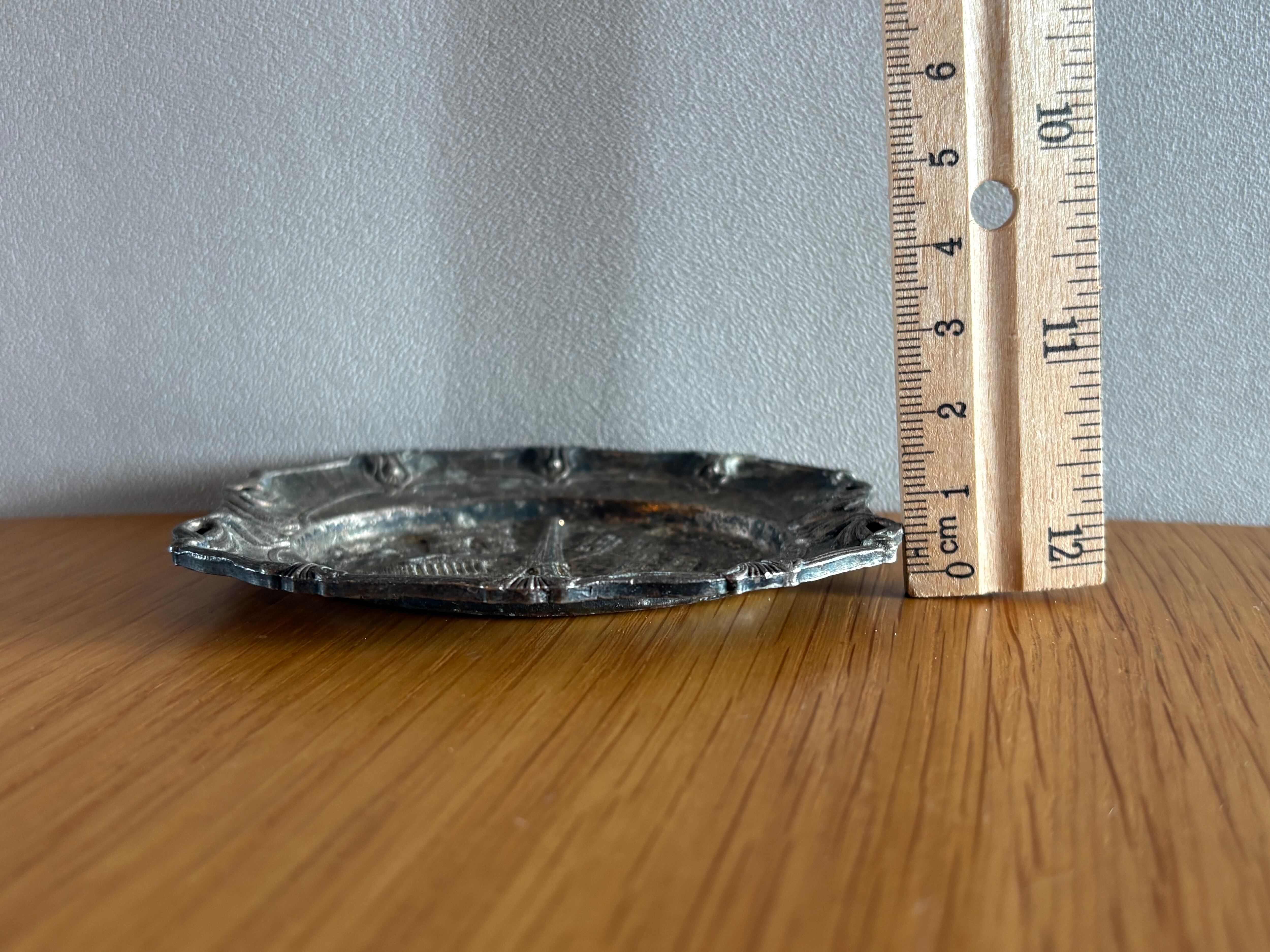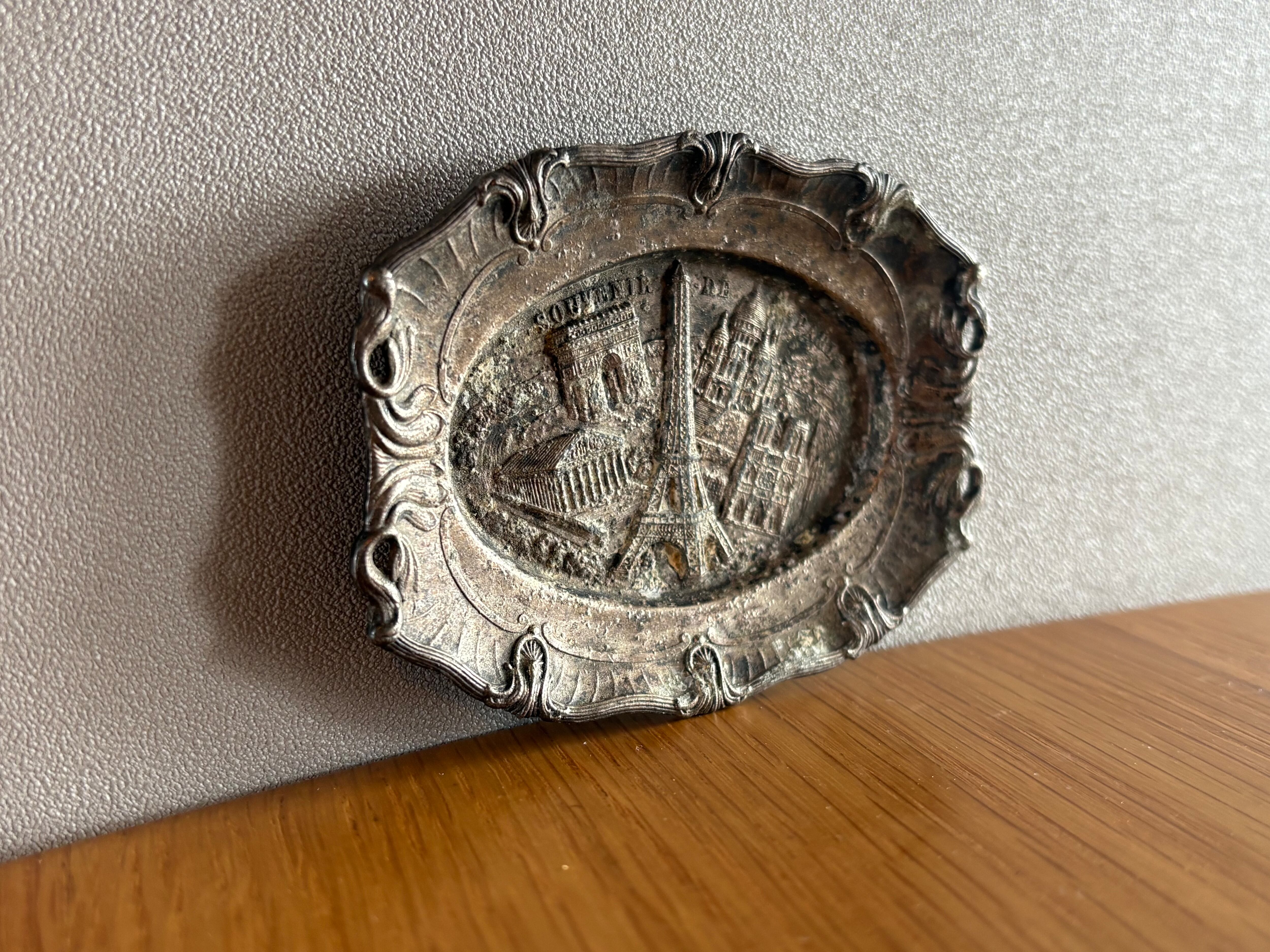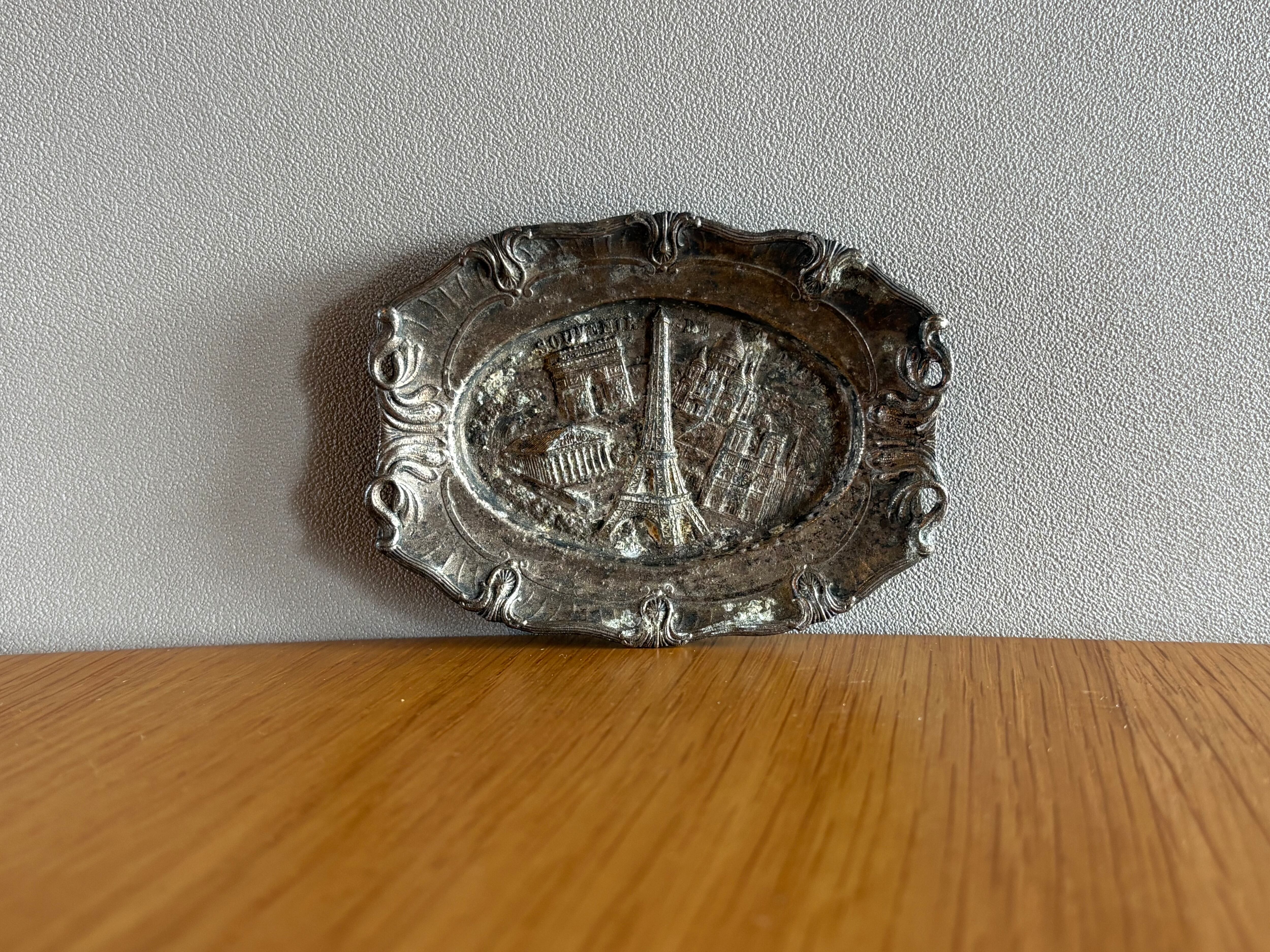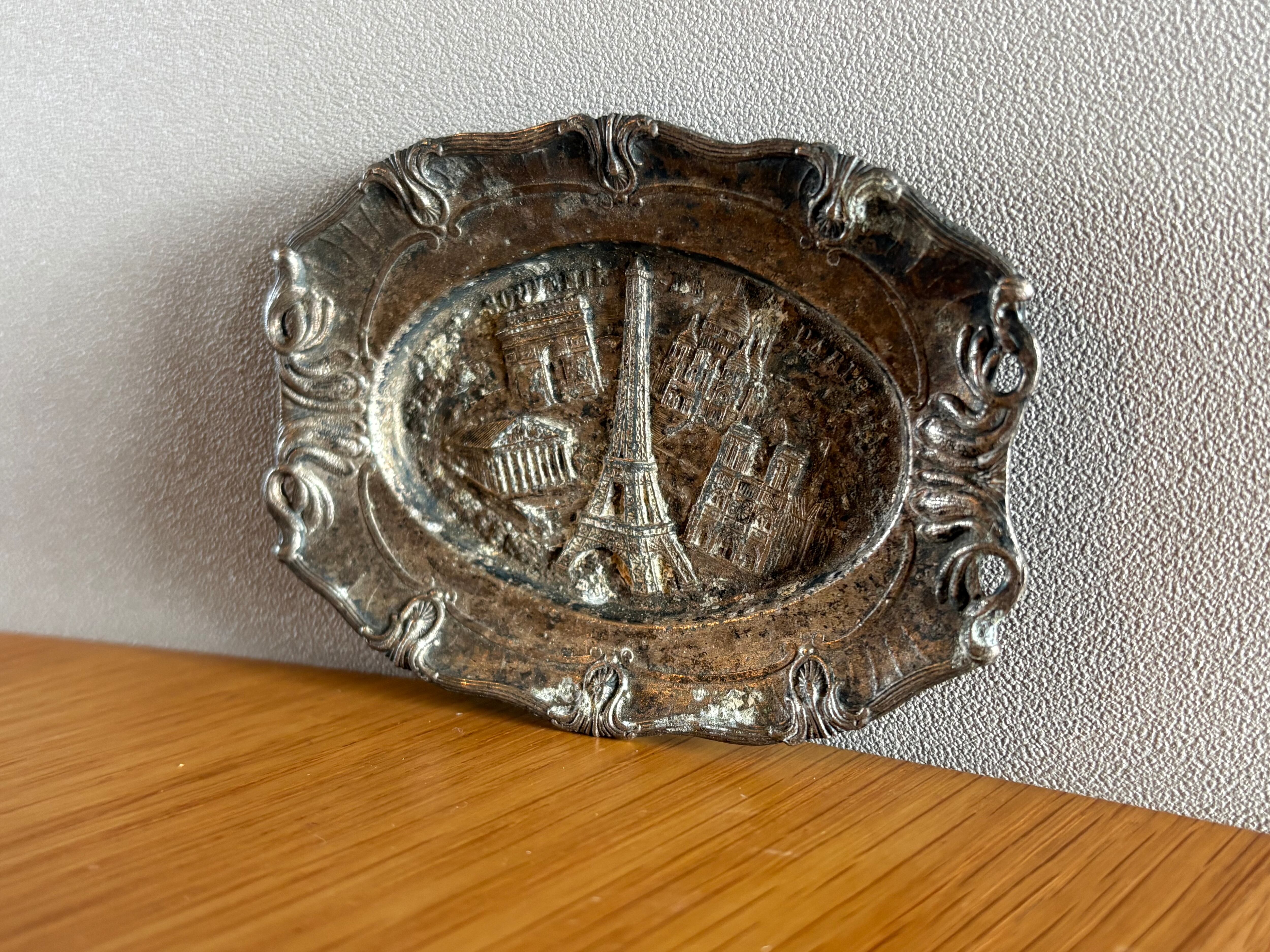 フランスの古いシャビーな小物入れ アクセサリー入れ アンティーク ヴィンテージ シルバープレート 小皿