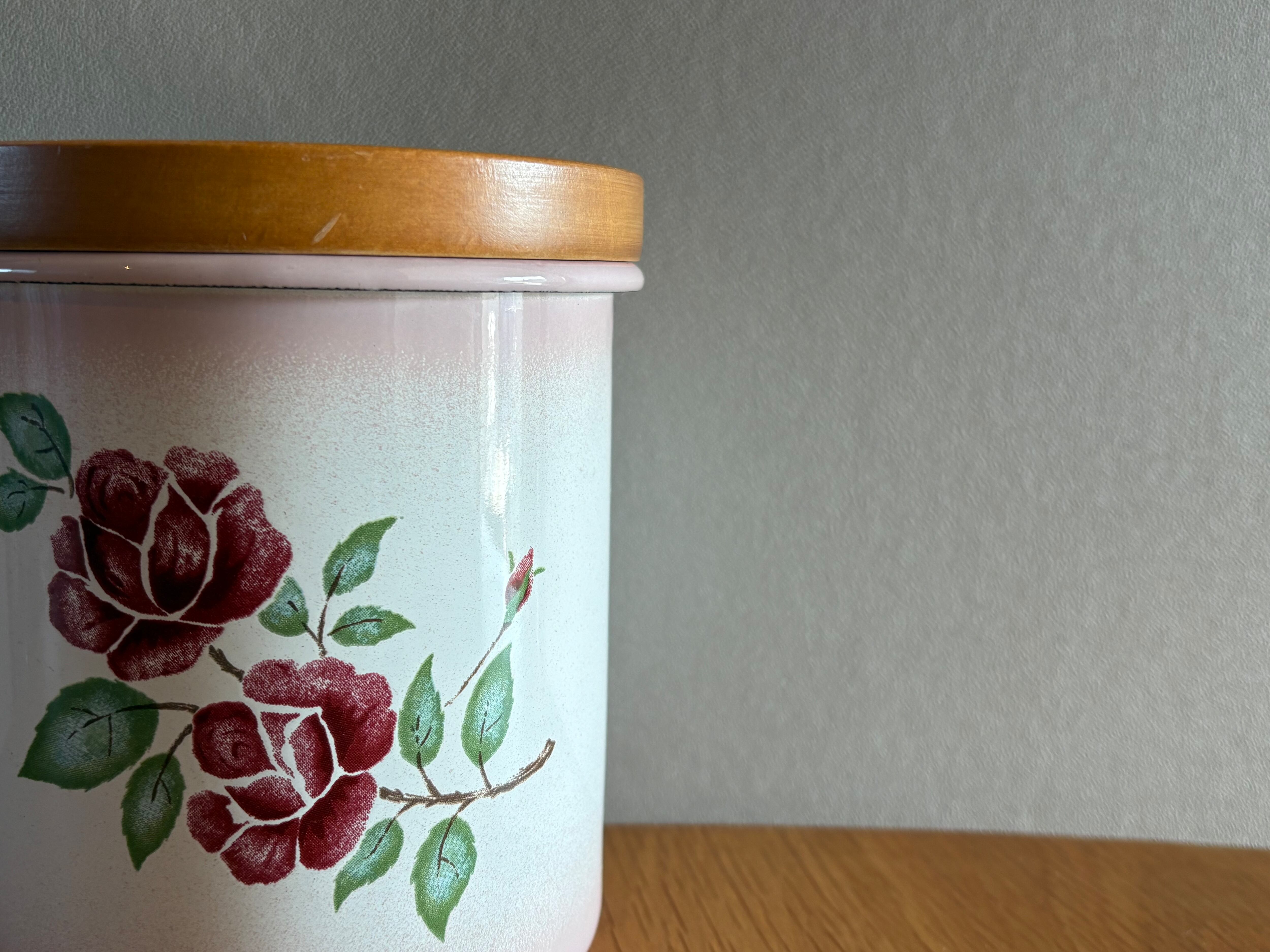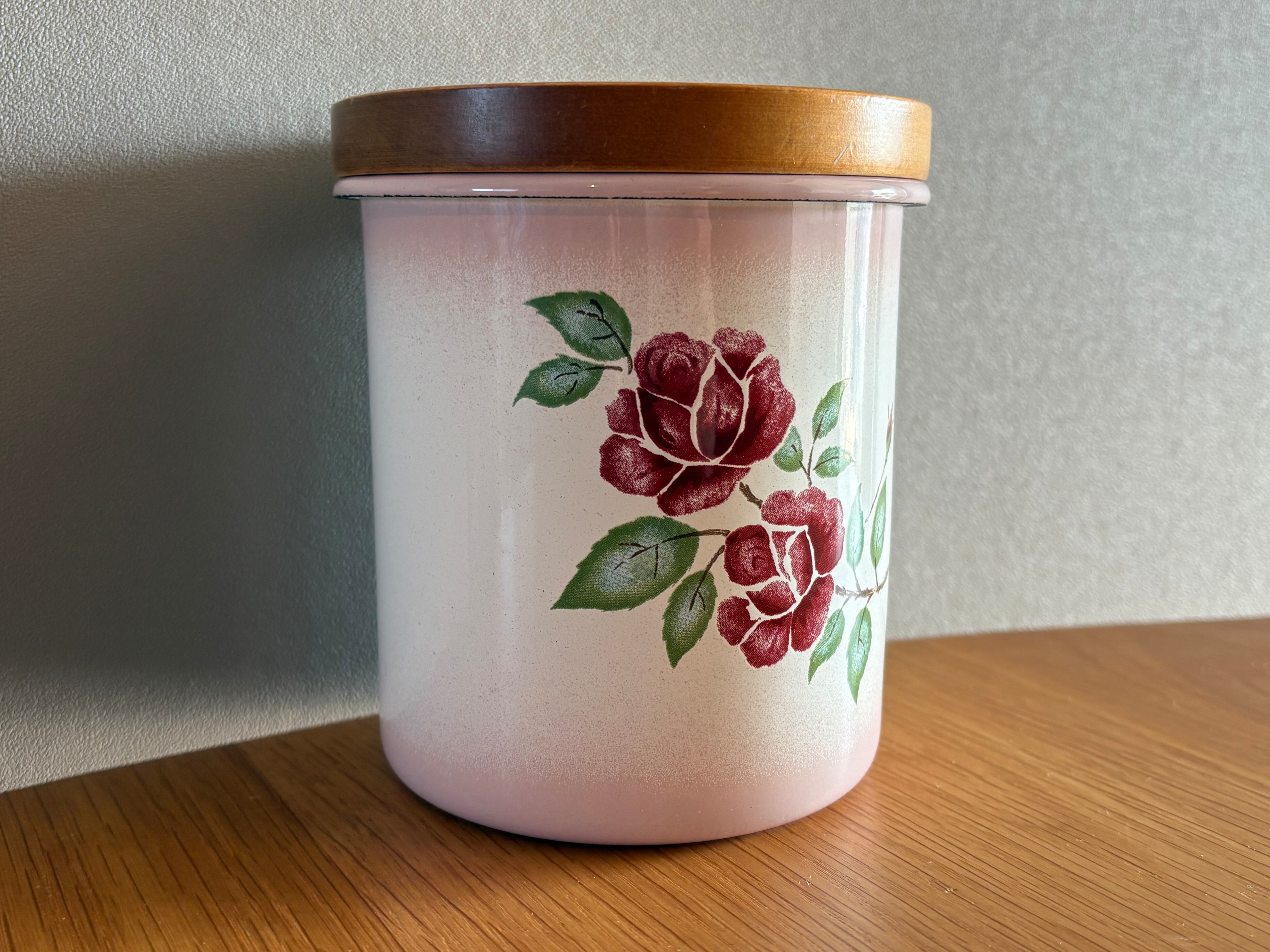 国産の古い薔薇が描かれたキャニスター
