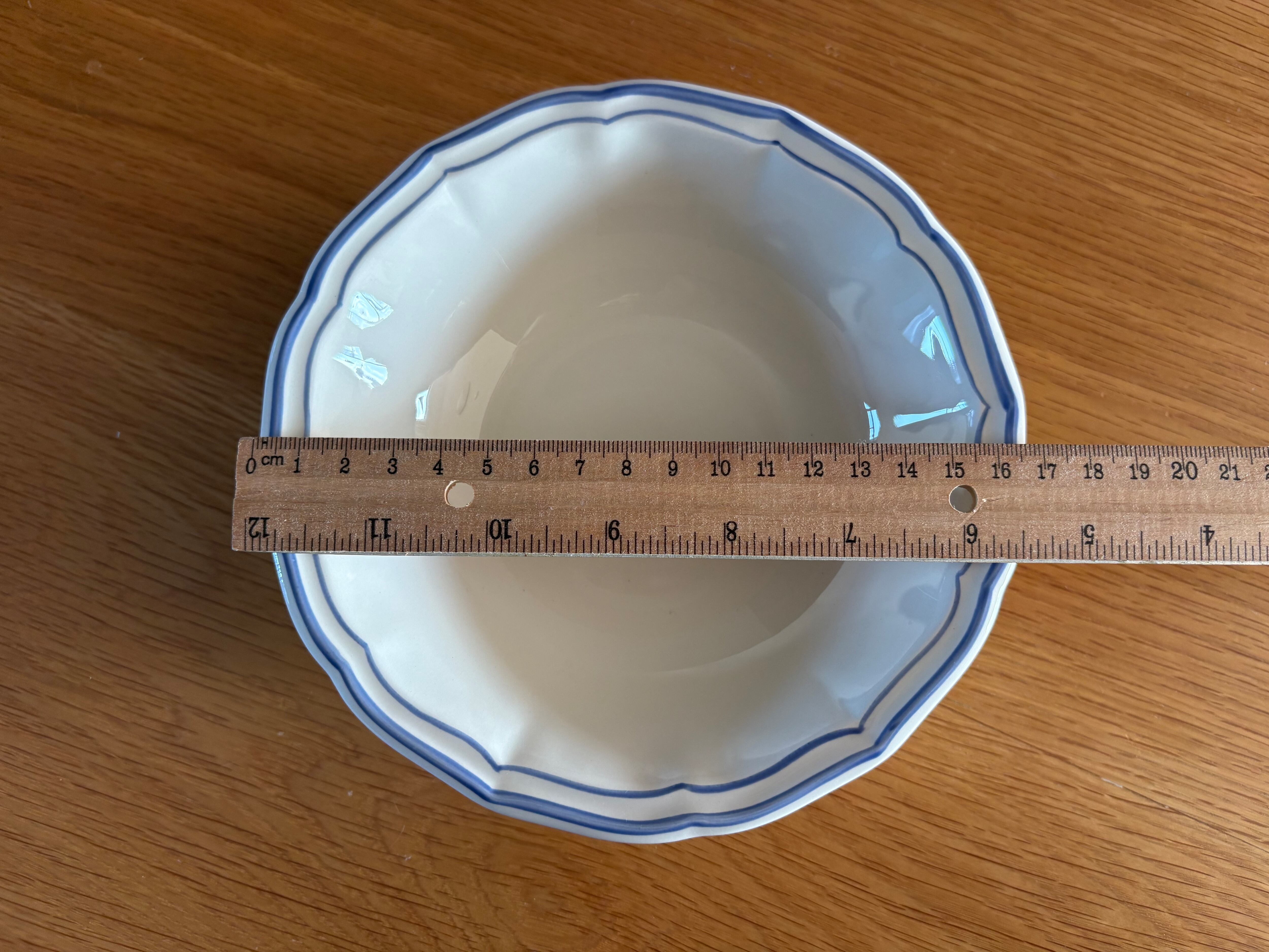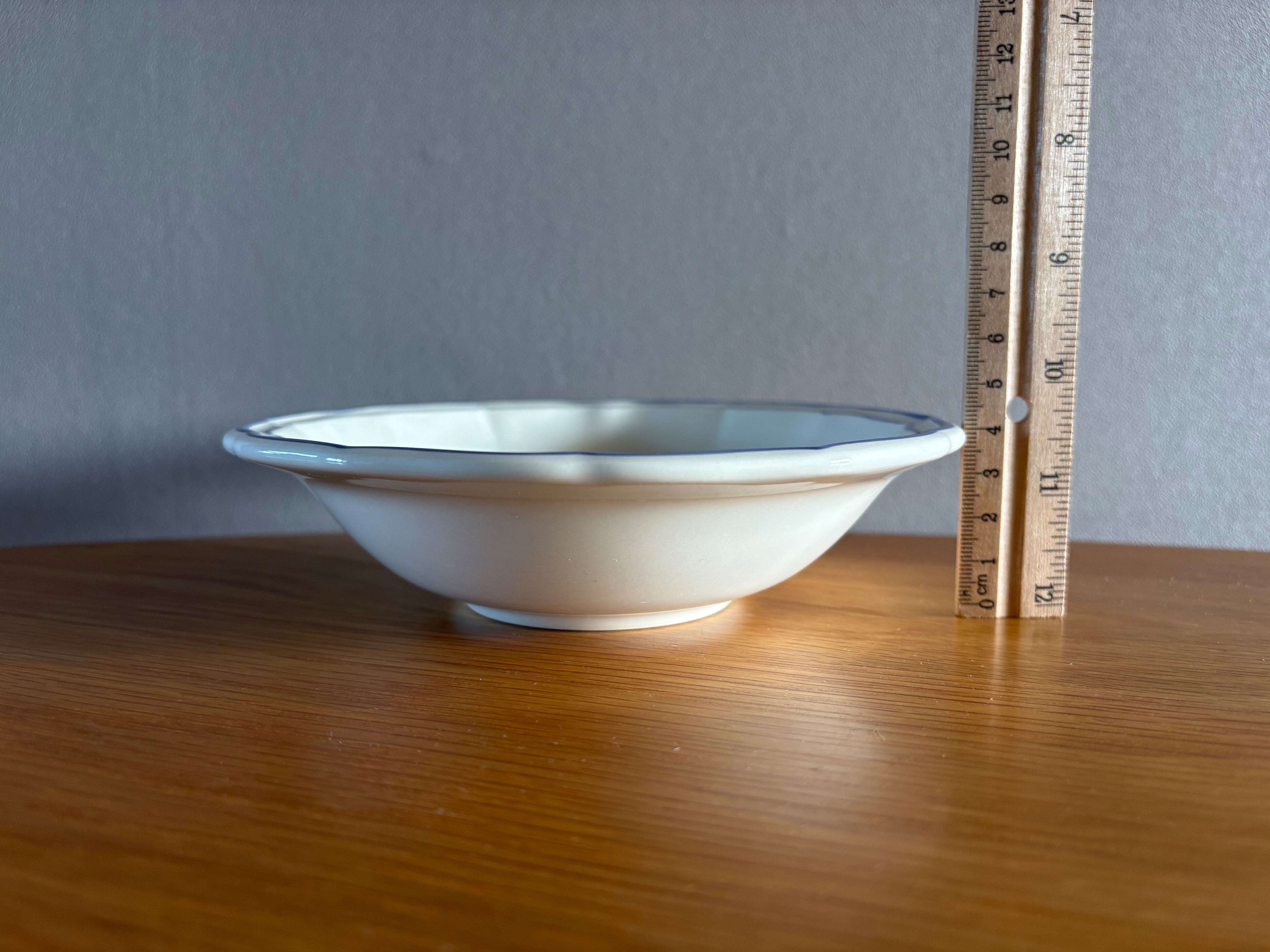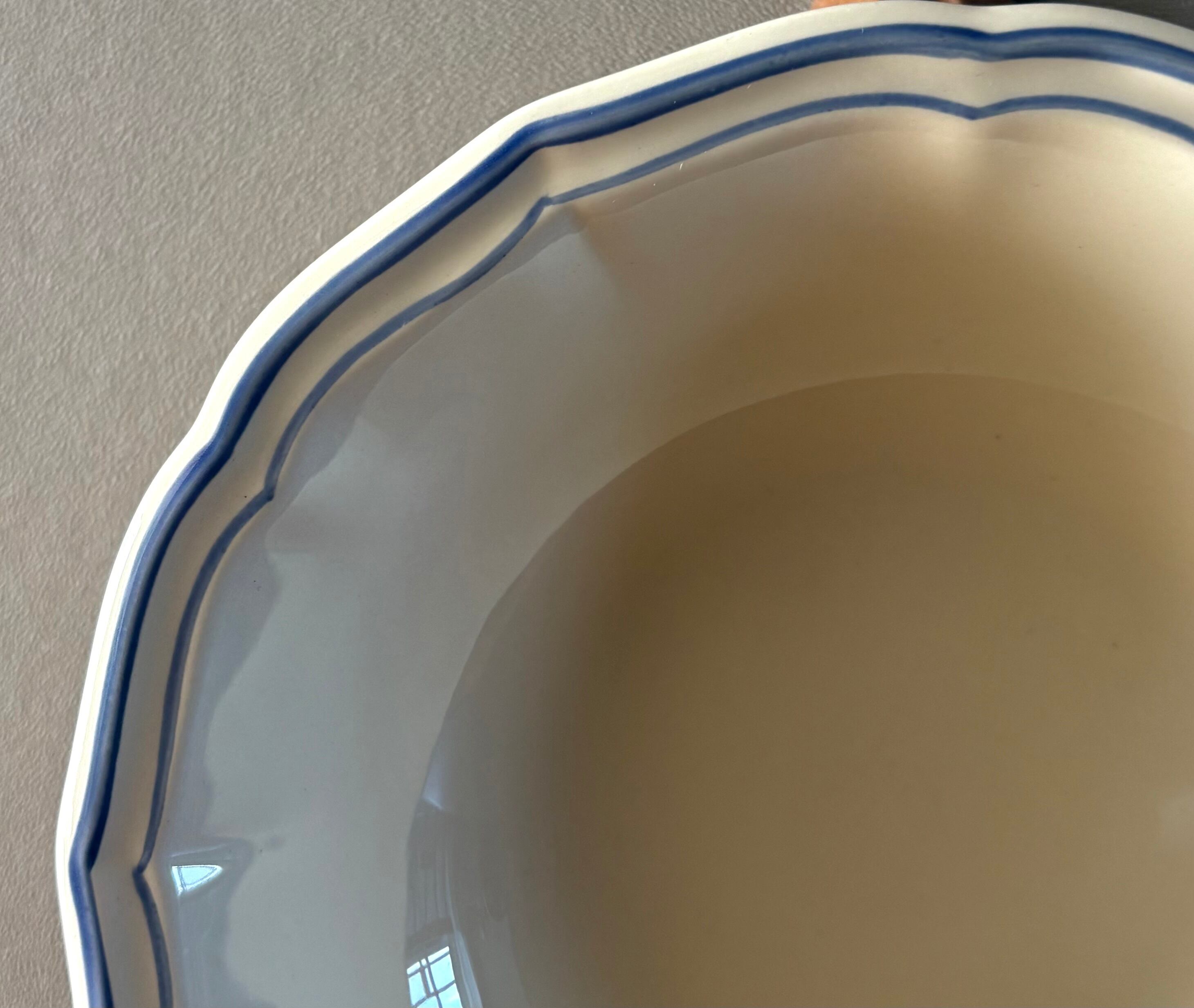 ゆるやかに波打つリムと、ほどよく立ち上がりのあるフォルムが、フランスの古い食卓を思わせる上品な佇まいです。