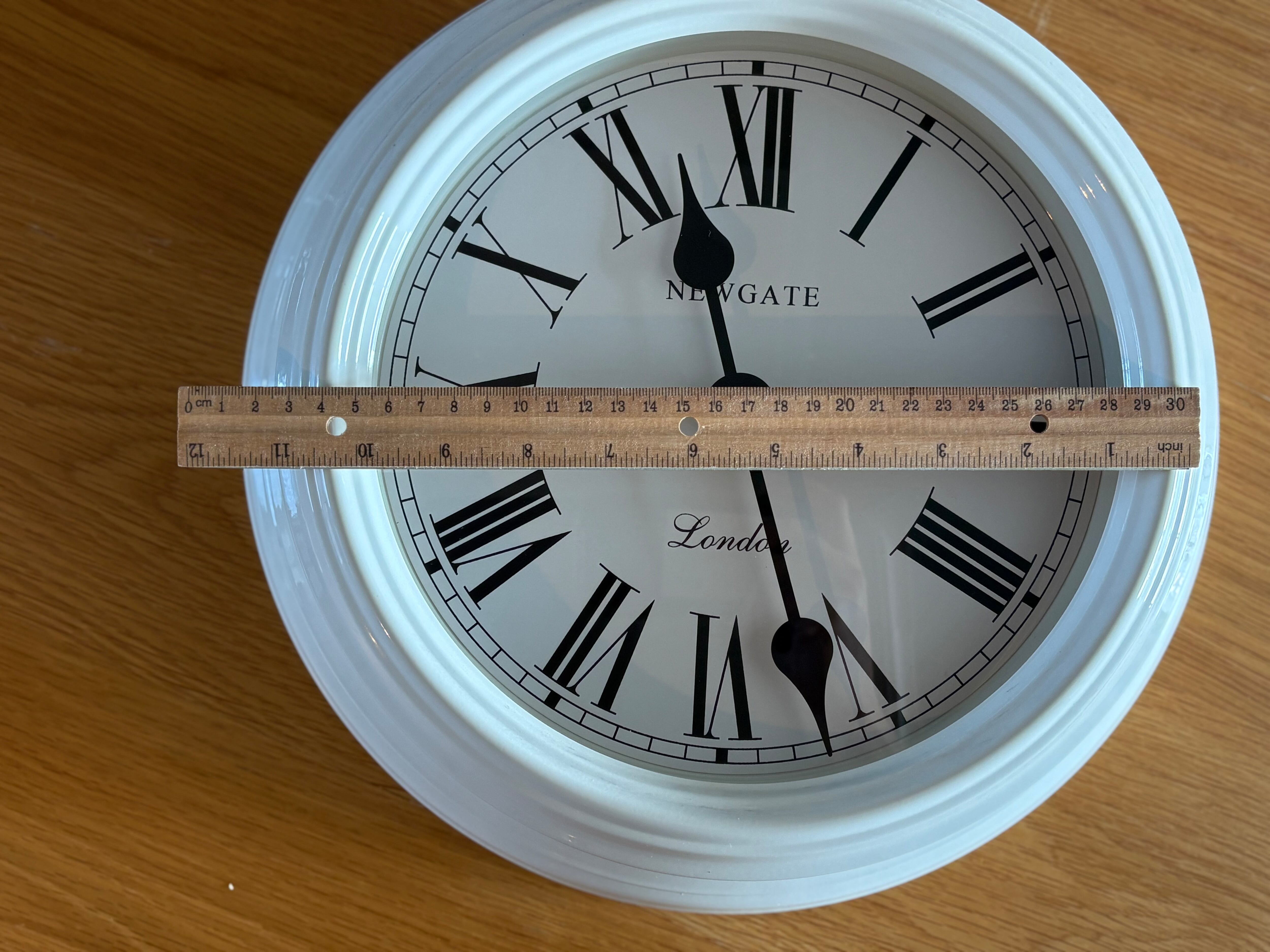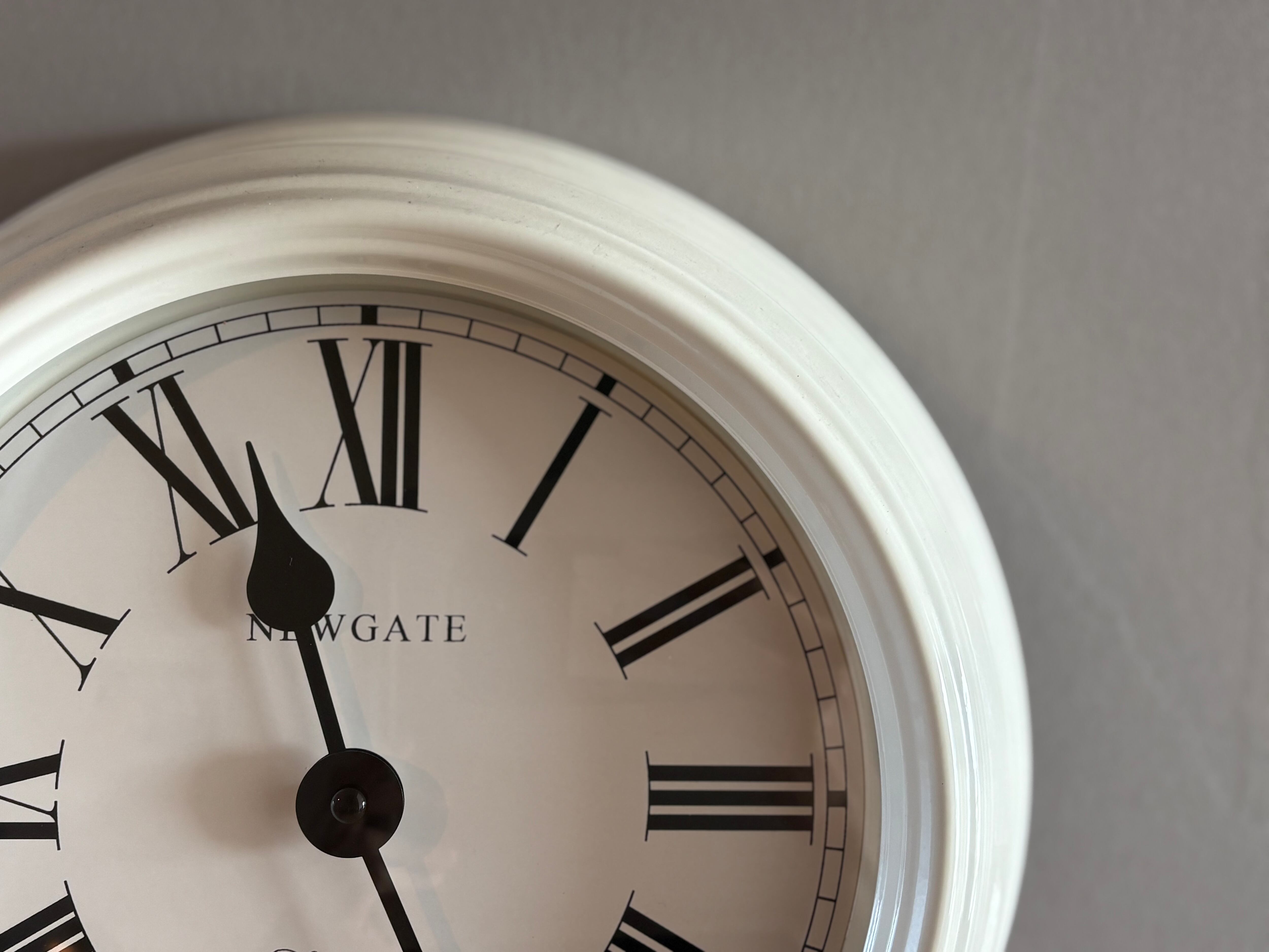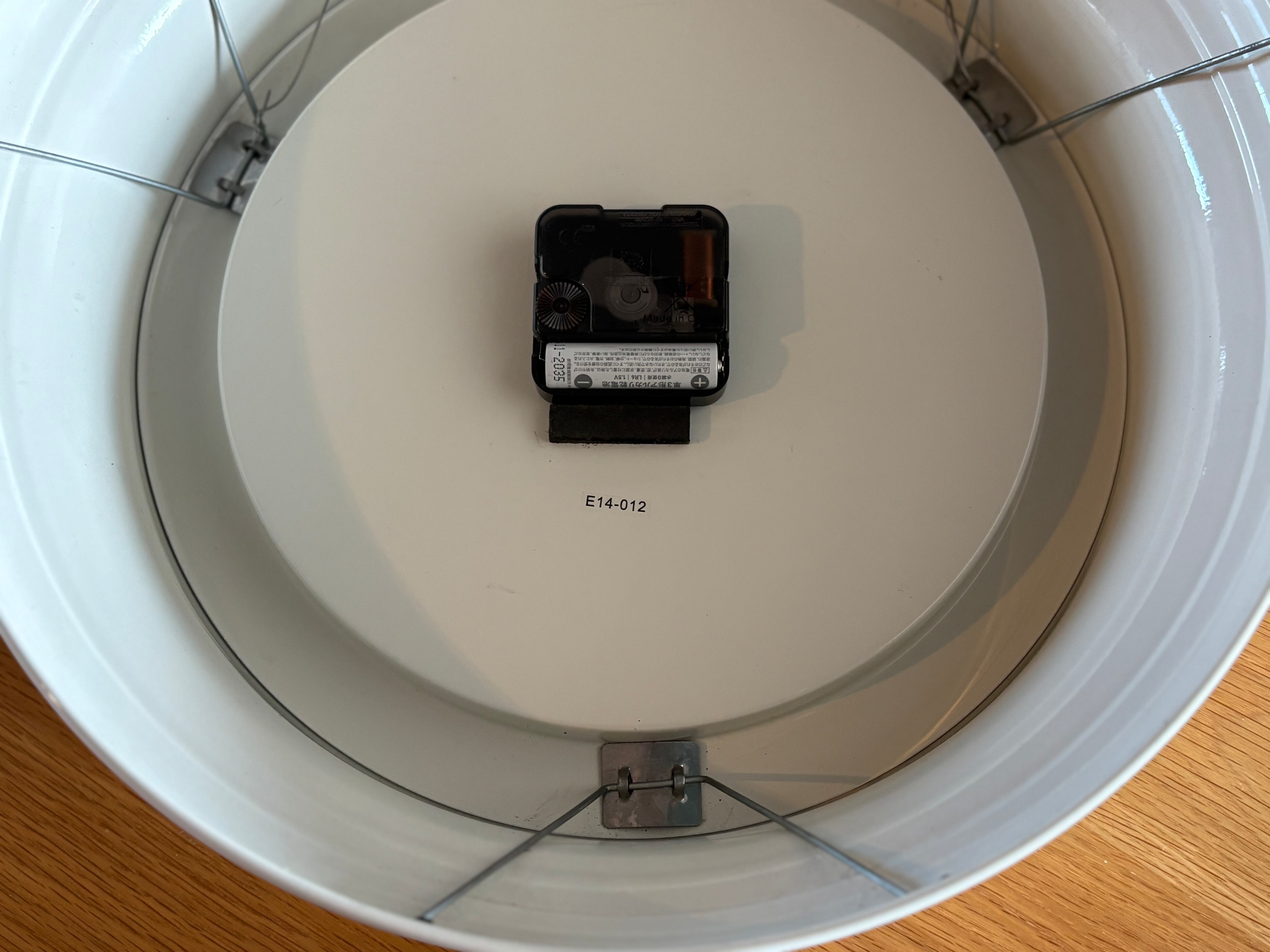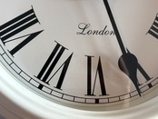 シンプルなホワイトフレームにローマ数字の文字盤が美しく、まるでヨーロッパのアンティーク時計のような上品な雰囲気があります。