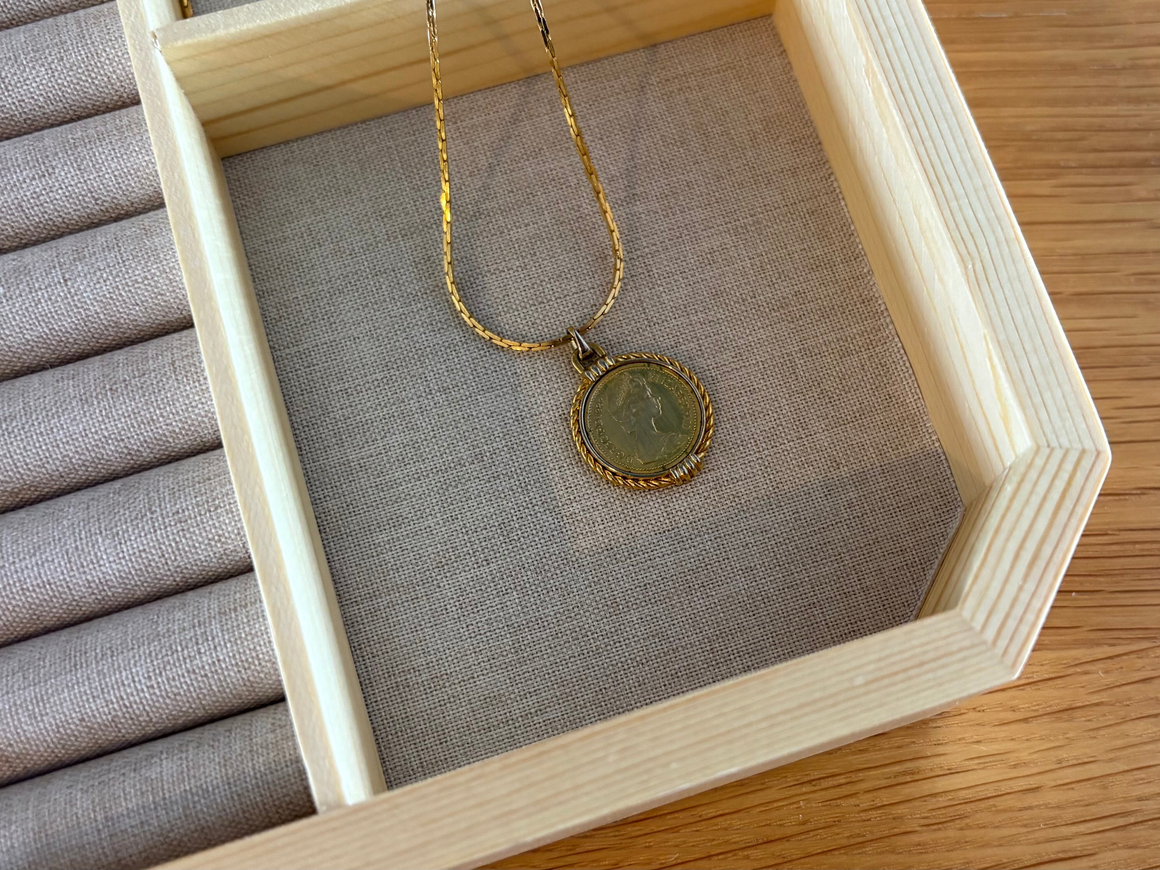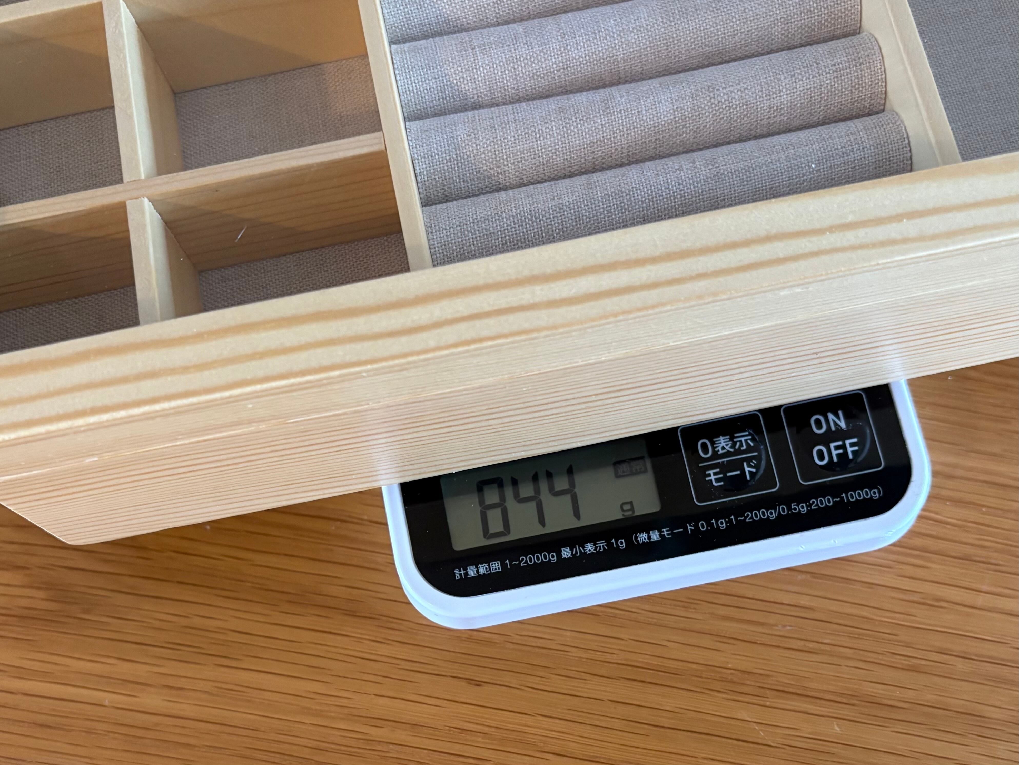 内側はリネン調のファブリックで仕切られており、大切なアクセサリーを傷つけずに収納できます。リング、ピアス、ネックレスなどを分けてしまえる実用的な構造。