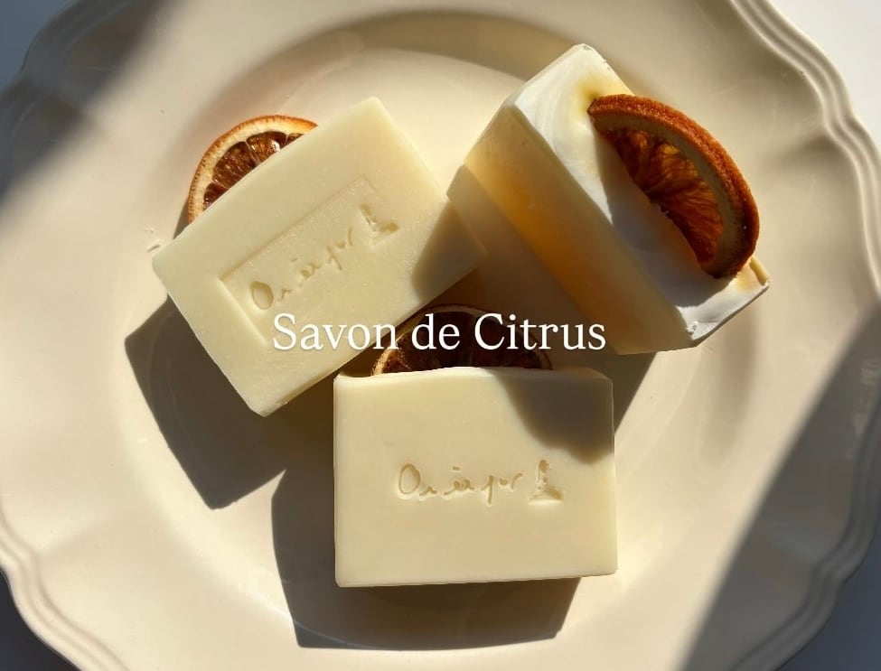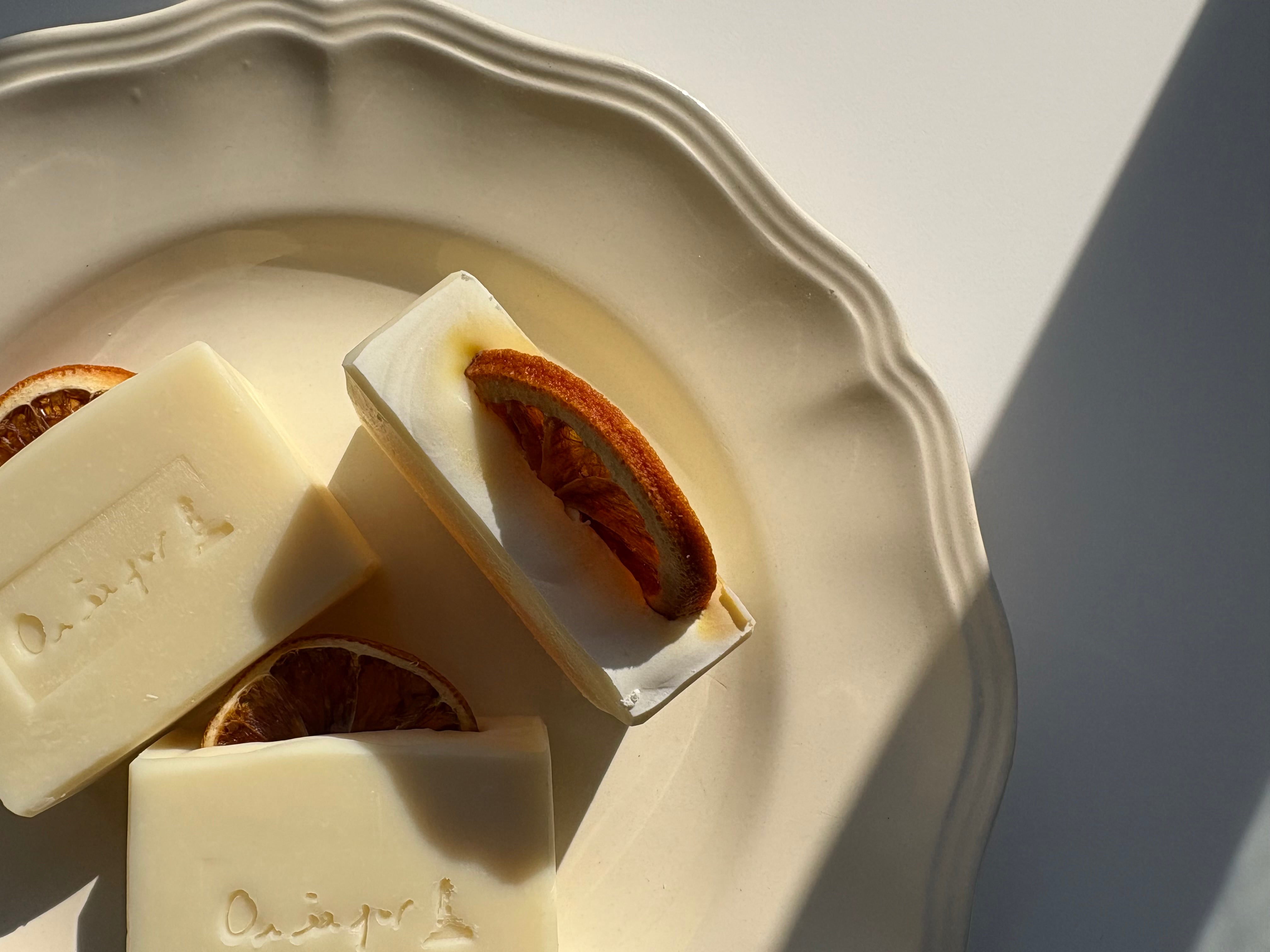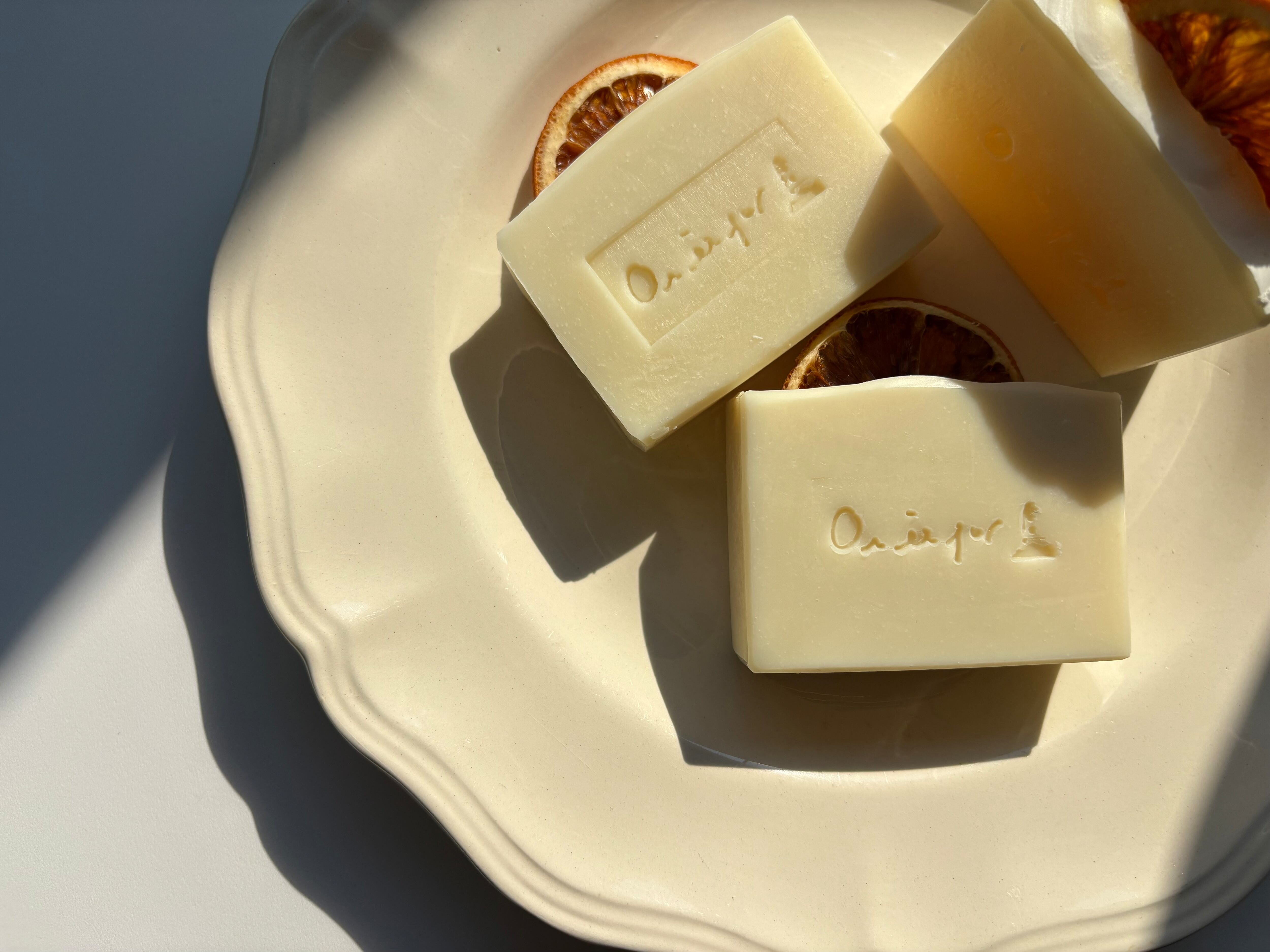 オレンジ果皮やレモン果皮、レモン果汁を使って作成した柑橘系の石鹸