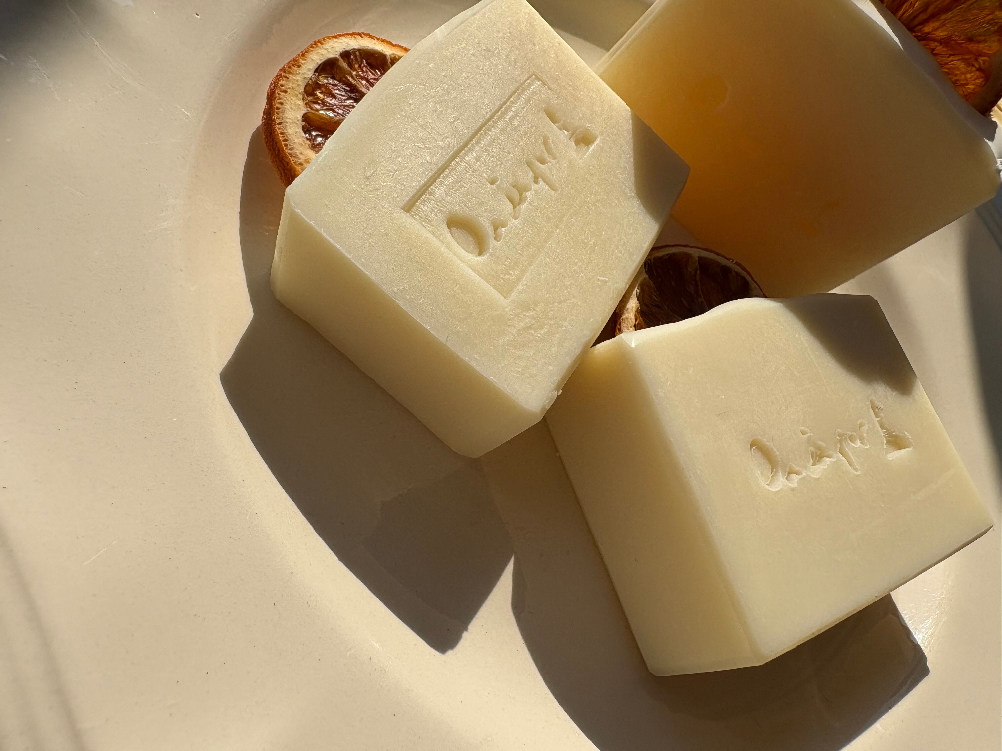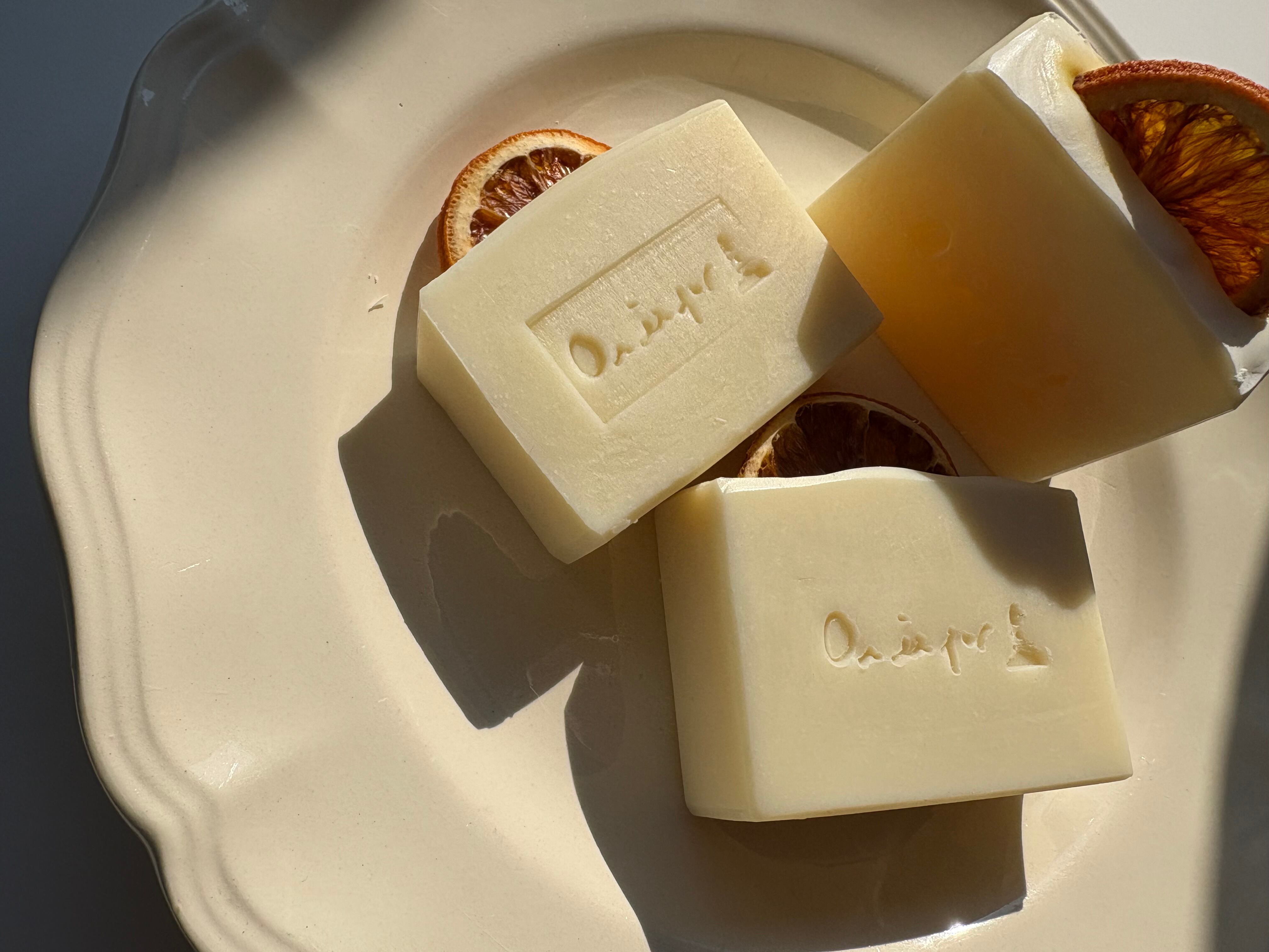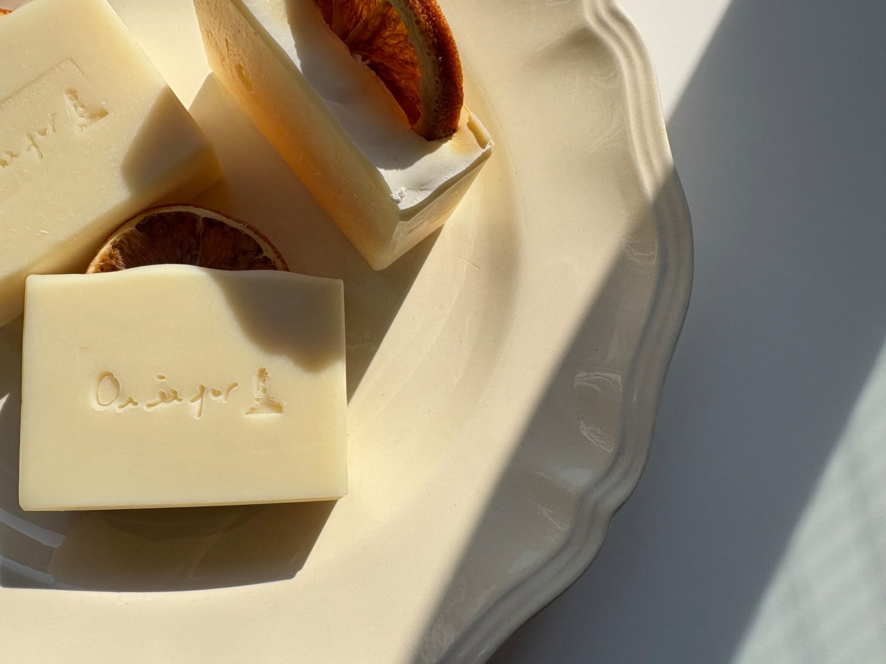 オレンジ果皮やレモン果皮、レモン果汁を使って作成した柑橘系の石鹸