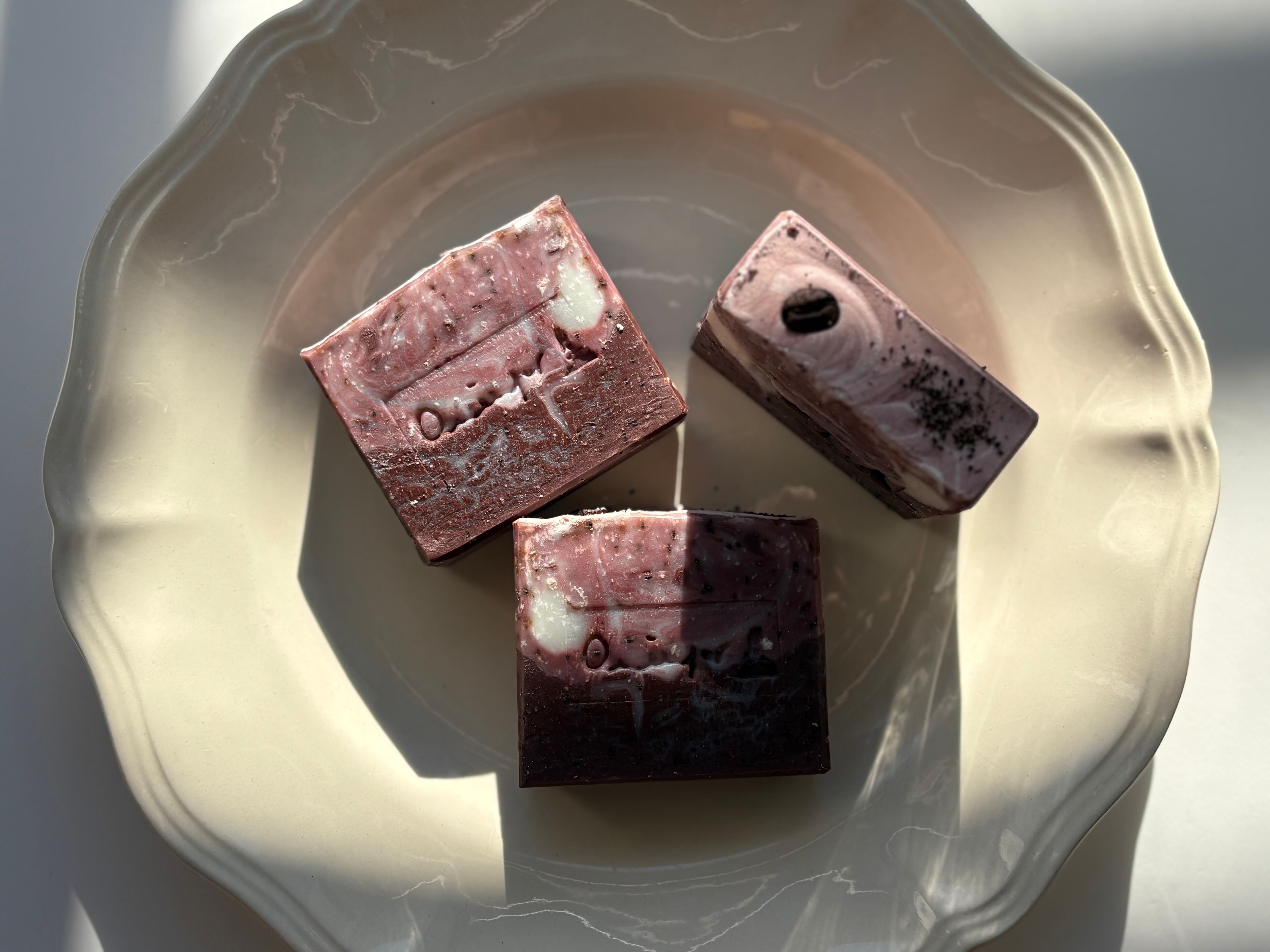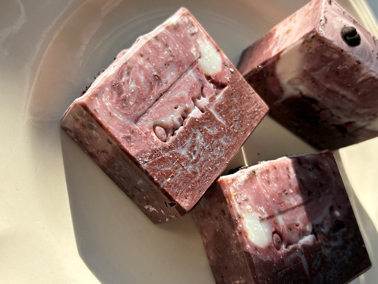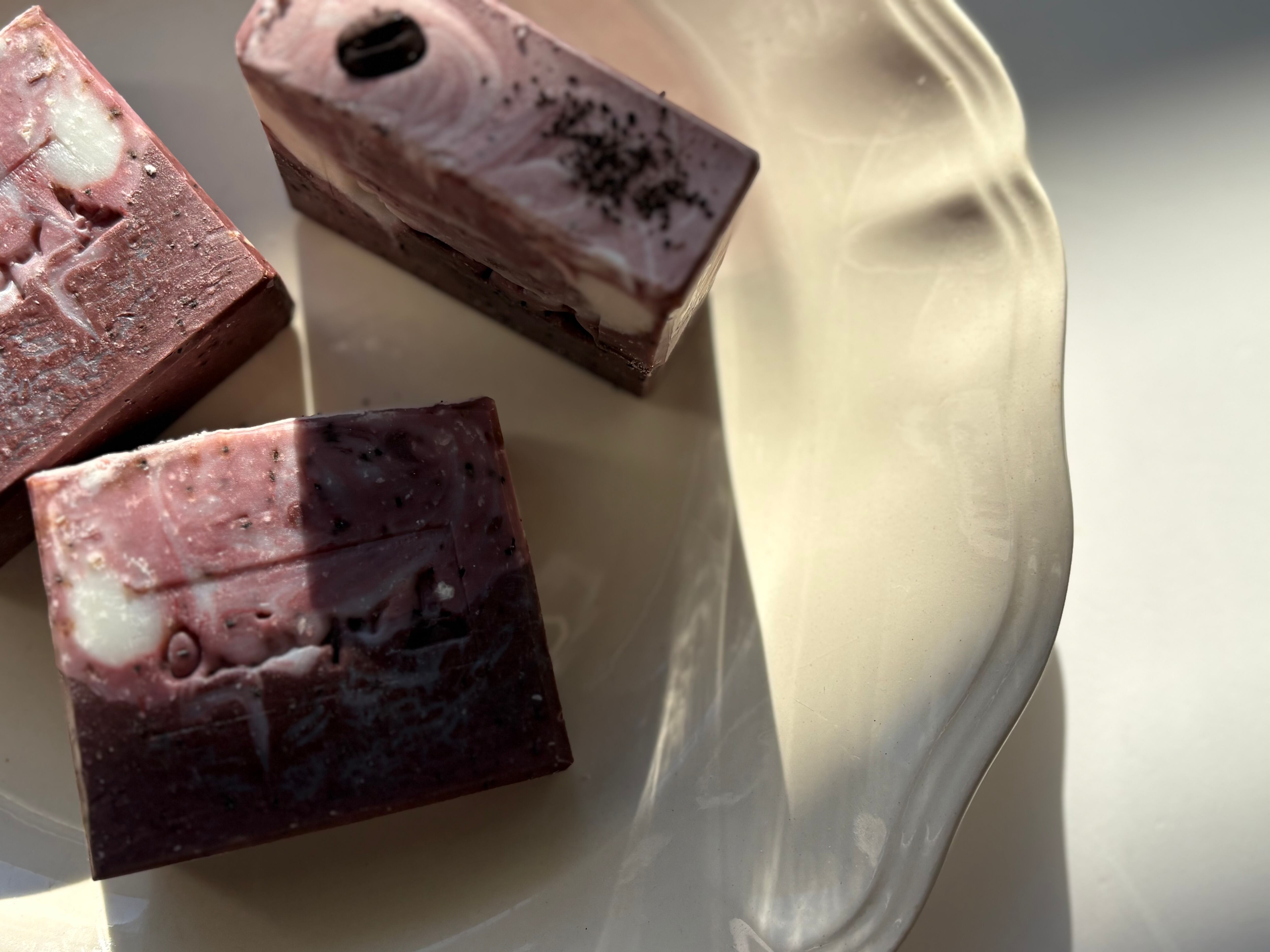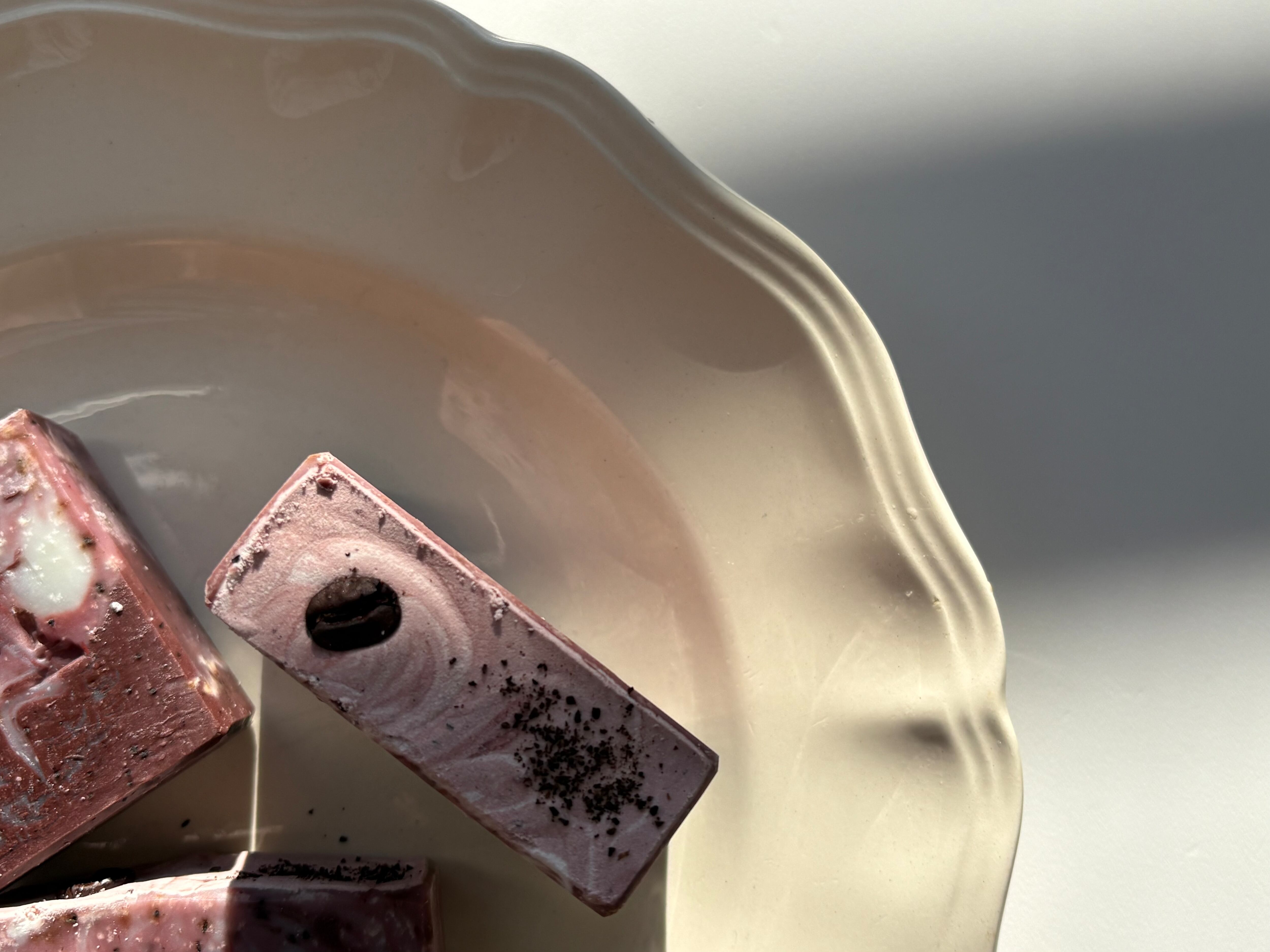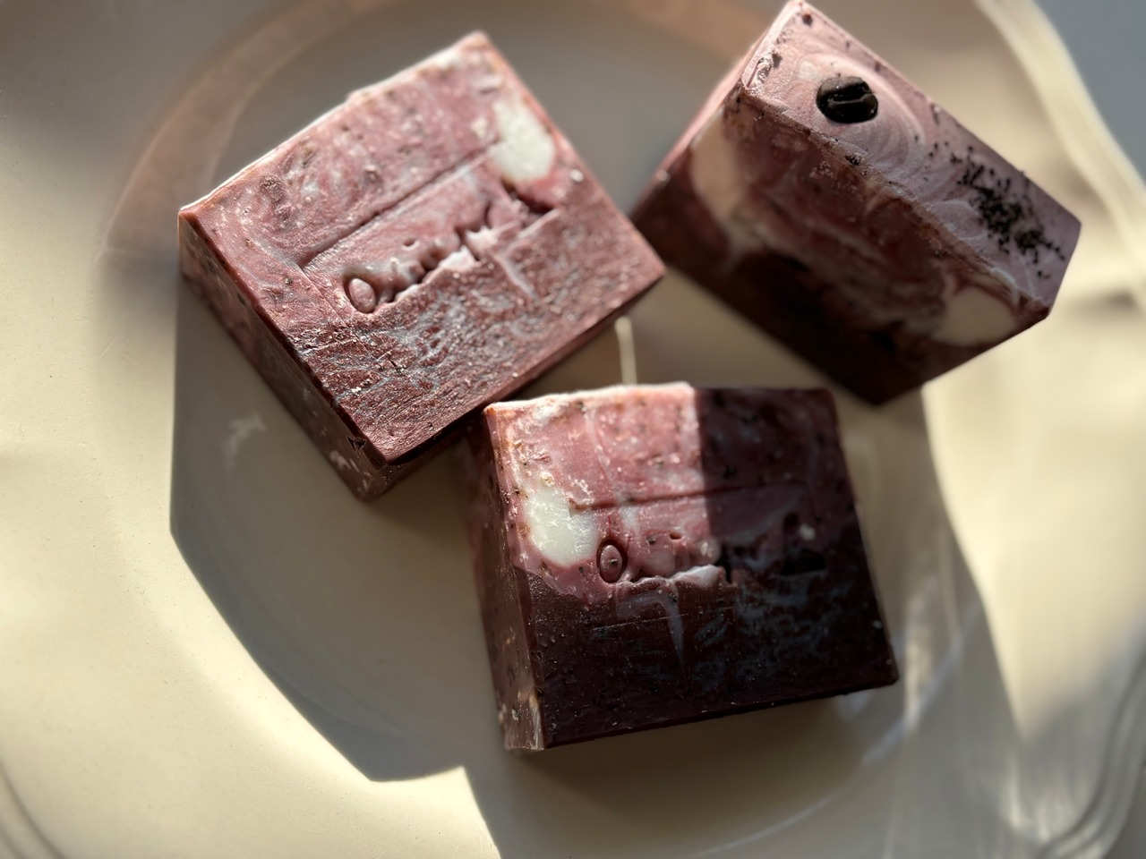 コーヒーグラウンズを使って作成した、ディスプレイとして可愛いアンバーなカフェモカ石鹸