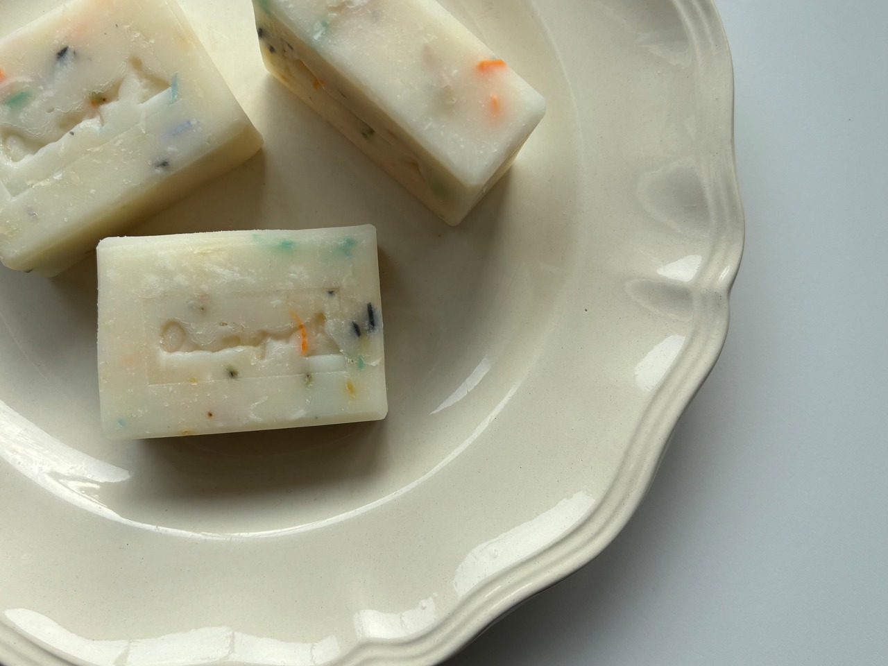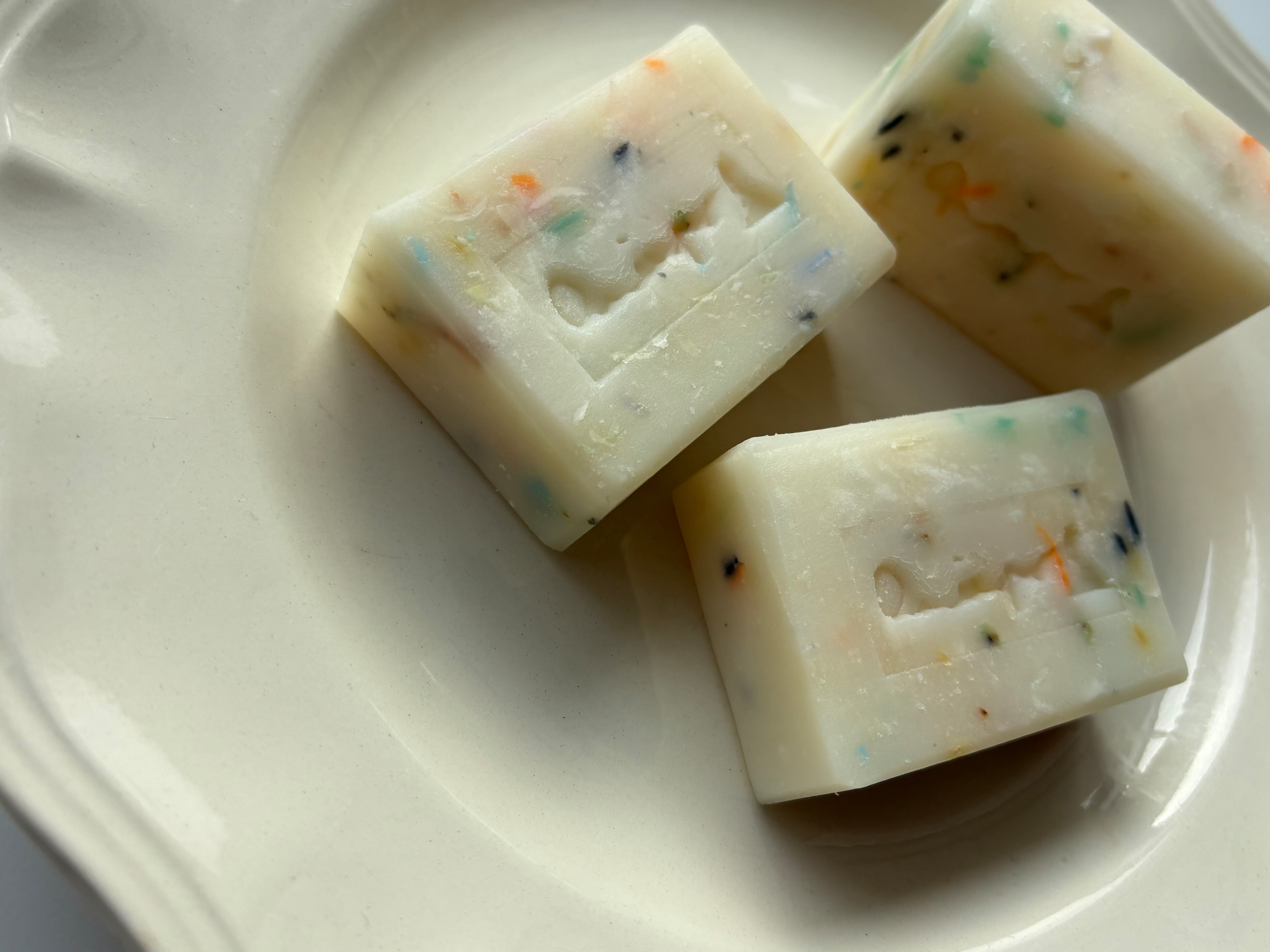 全てコールドプロセス・枠練り製法の手作り石鹼のため、色や形が写真と全く同じにはなりませんのでご了承ください。