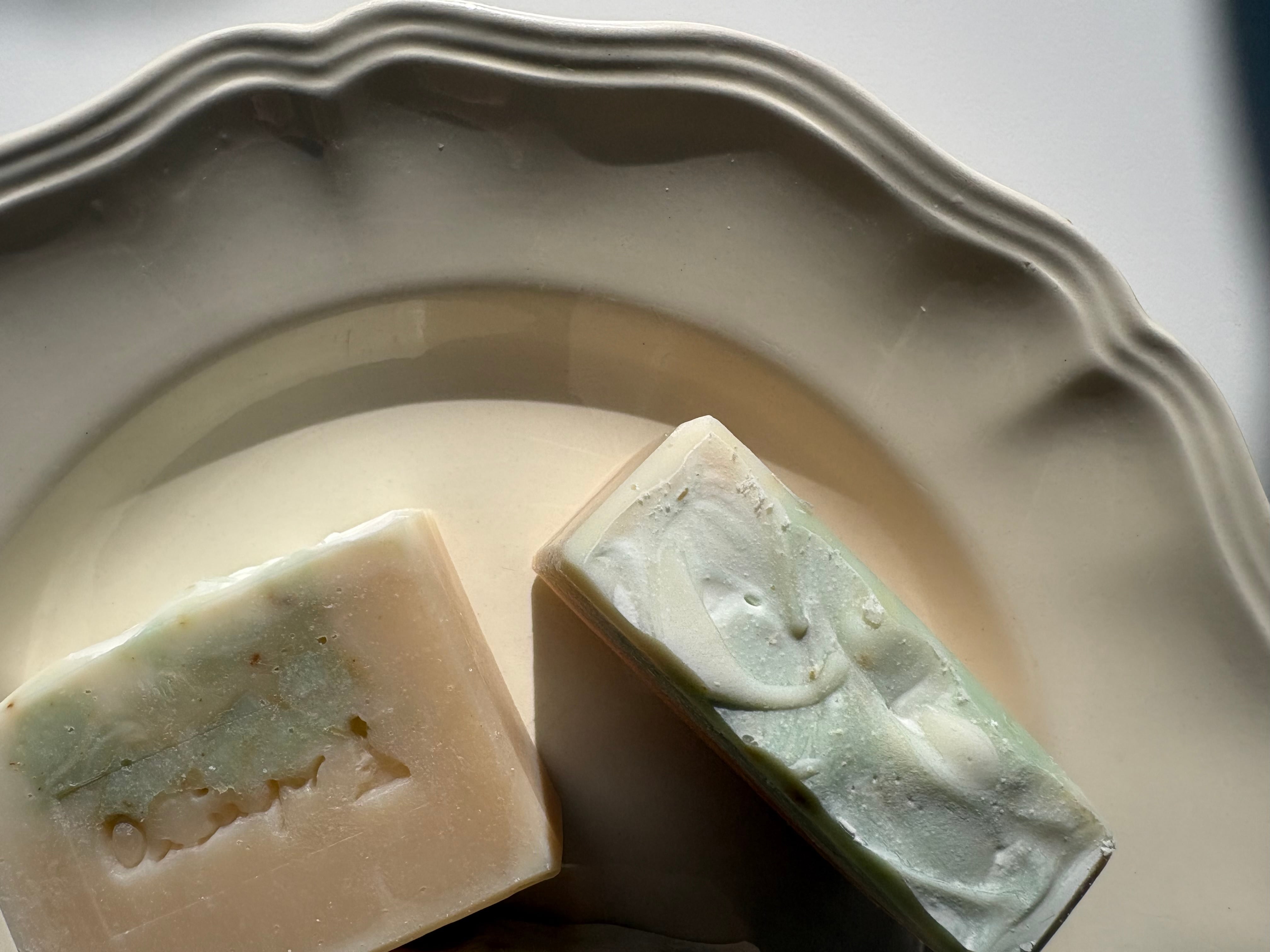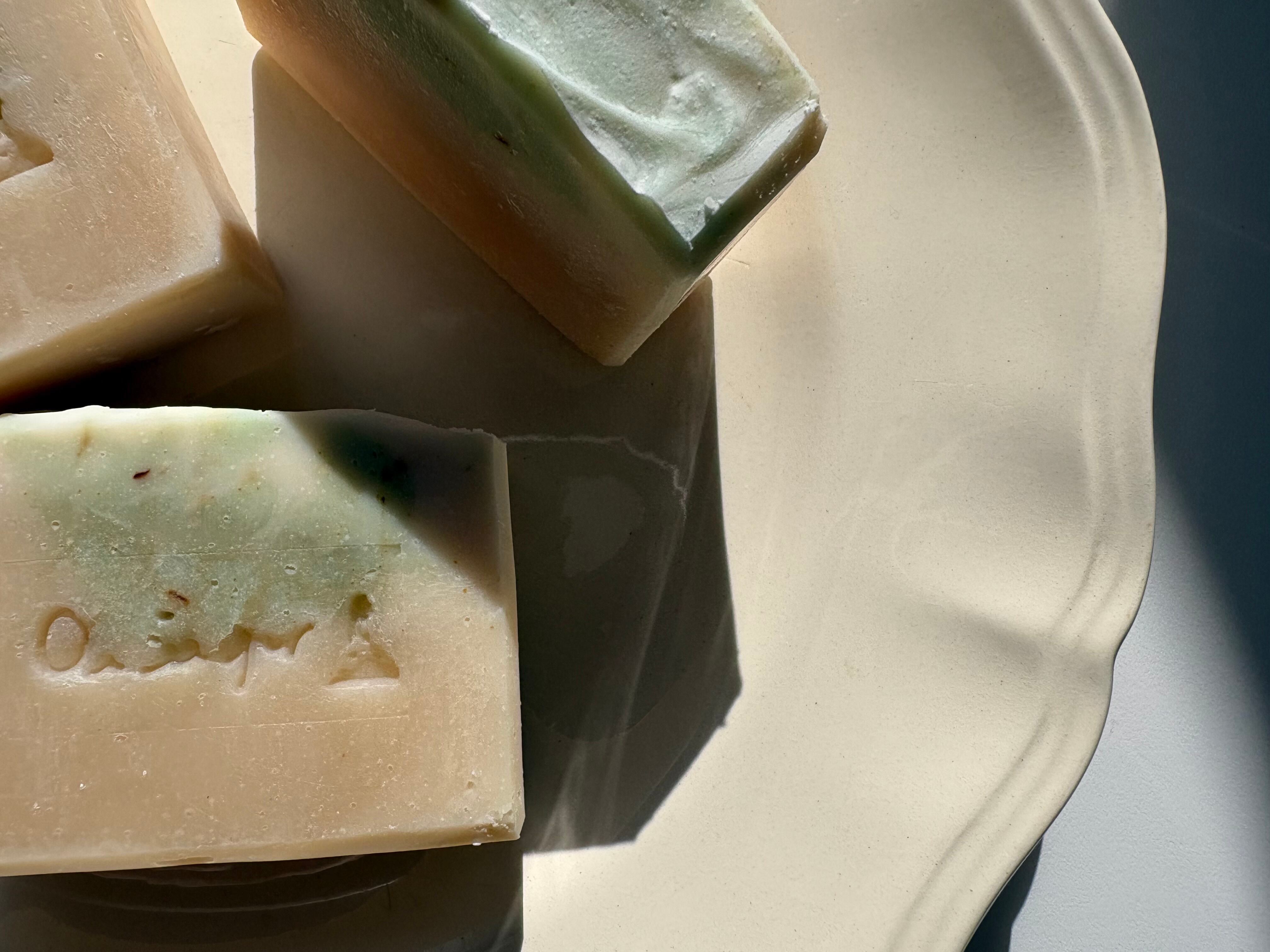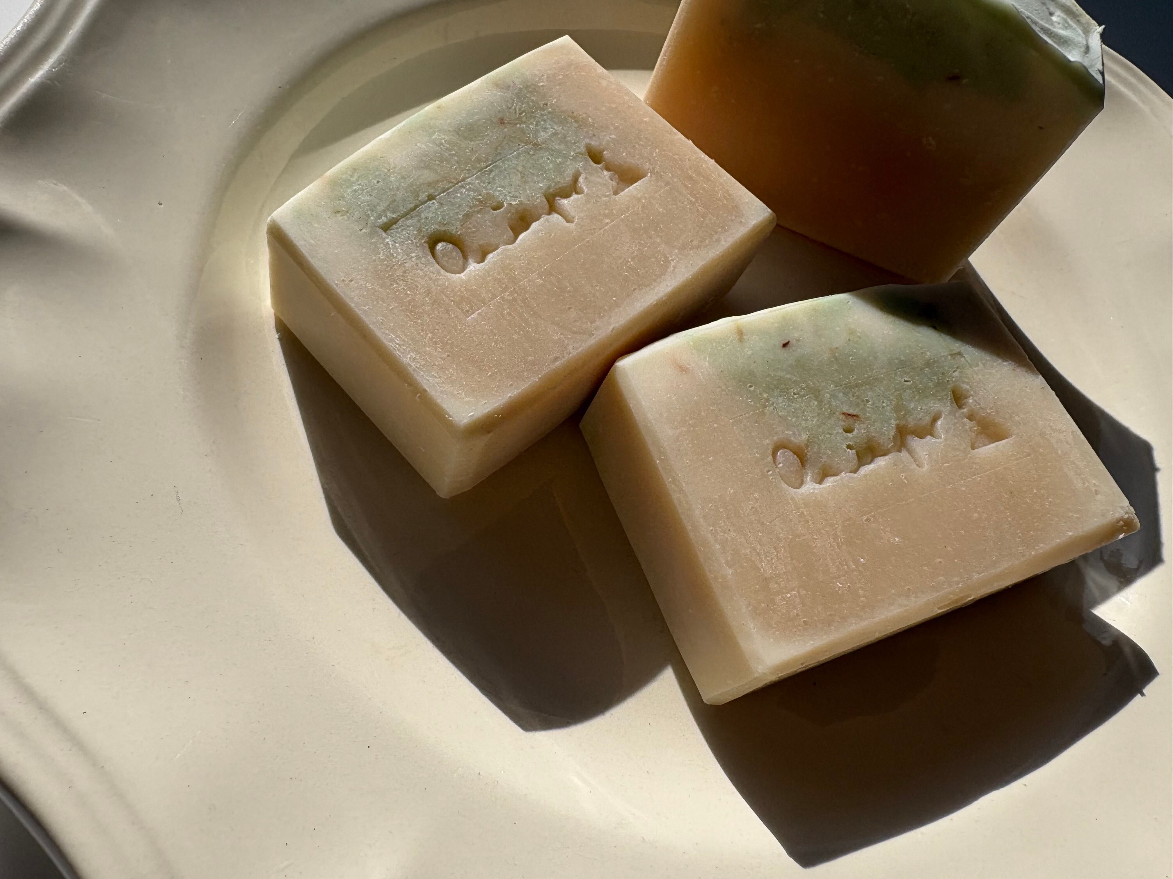 全てコールドプロセス・枠練り製法の手作り石鹼のため、色や形が写真と全く同じにはなりませんのでご了承ください。