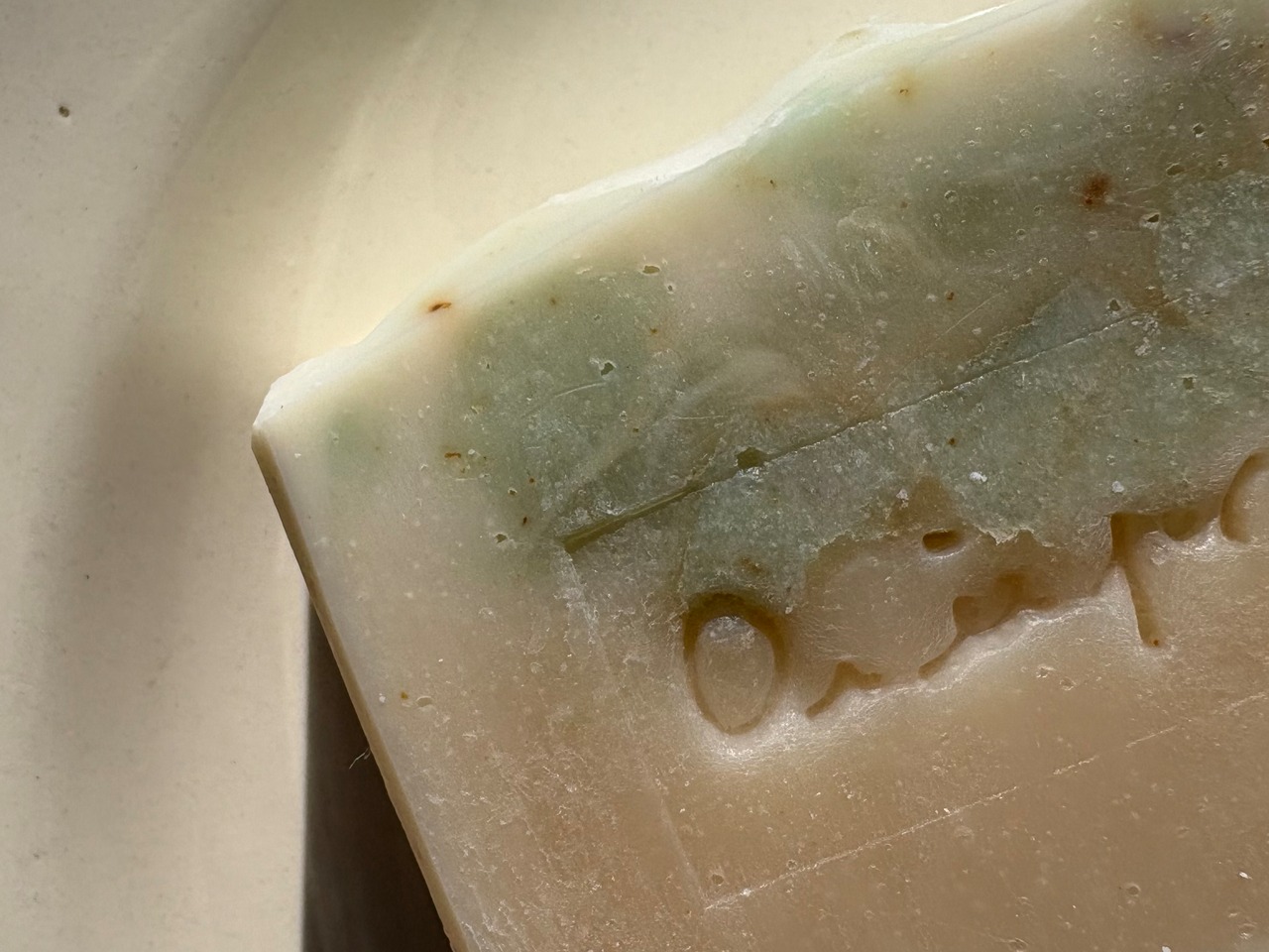 オリーブオイル、ココナッツオイル、パームオイル、ゴールデンホホバオイル、アルガンオイル、カレンデュラオイル、アボカドオイル、ライスブランオイル、カメリアオイル、ヒマシオイル、キンモクセイインフューズドオイル、水酸化ナトリウム、精製水、白糠、グリーンクレイ、ピグメント(グリーン、ホワイトパールマイカ)、精油(カモミール、フェンネルスウィート、ローズマリーシオネル、グレープフルーツホワイト、シダーウッドアトラス)ラフランス果皮、ラフランス果肉•果汁