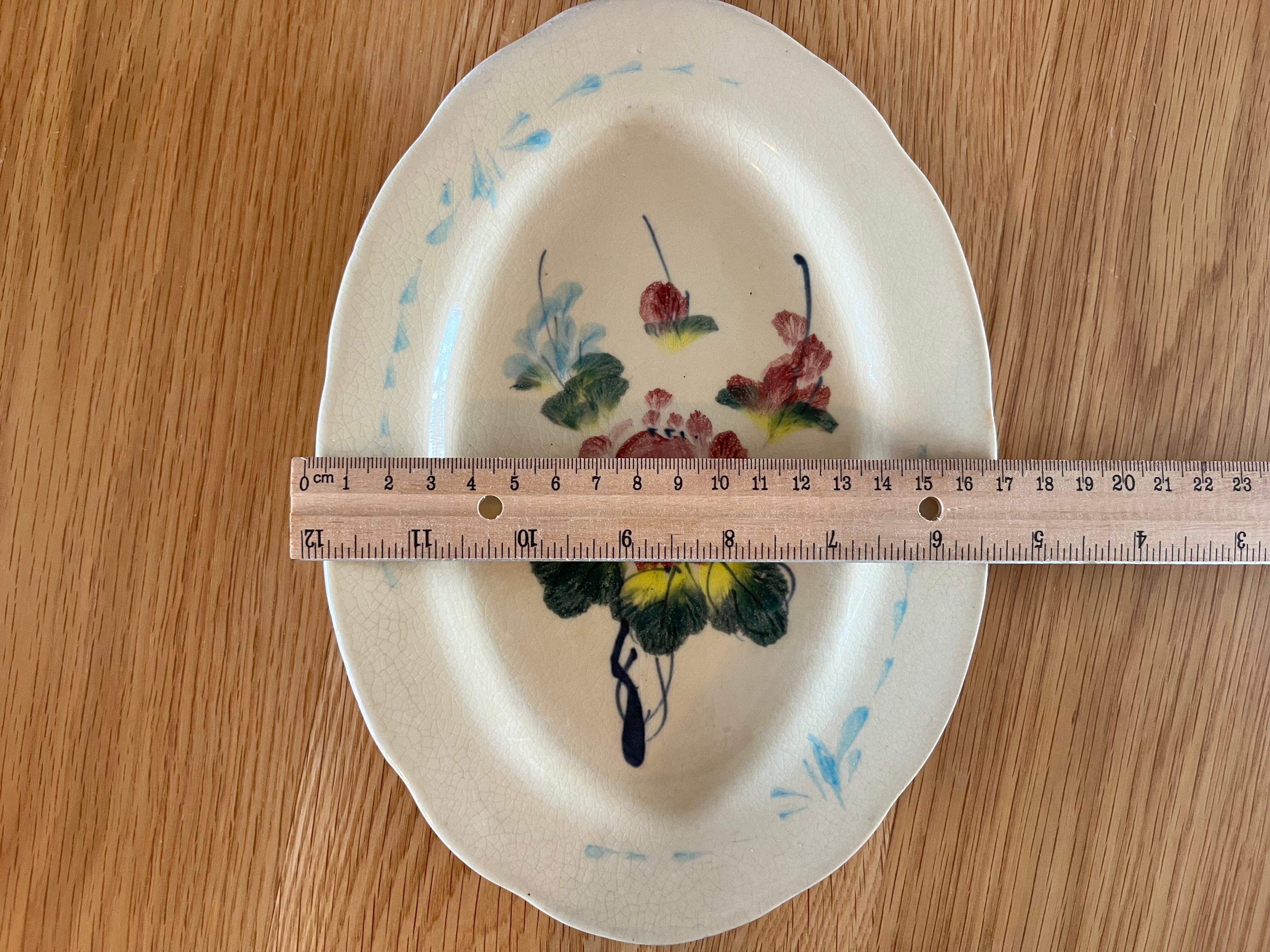 ベトナムの古い花柄オーバルプレート 中皿 ヴィンテージソンべ焼き アンティーク