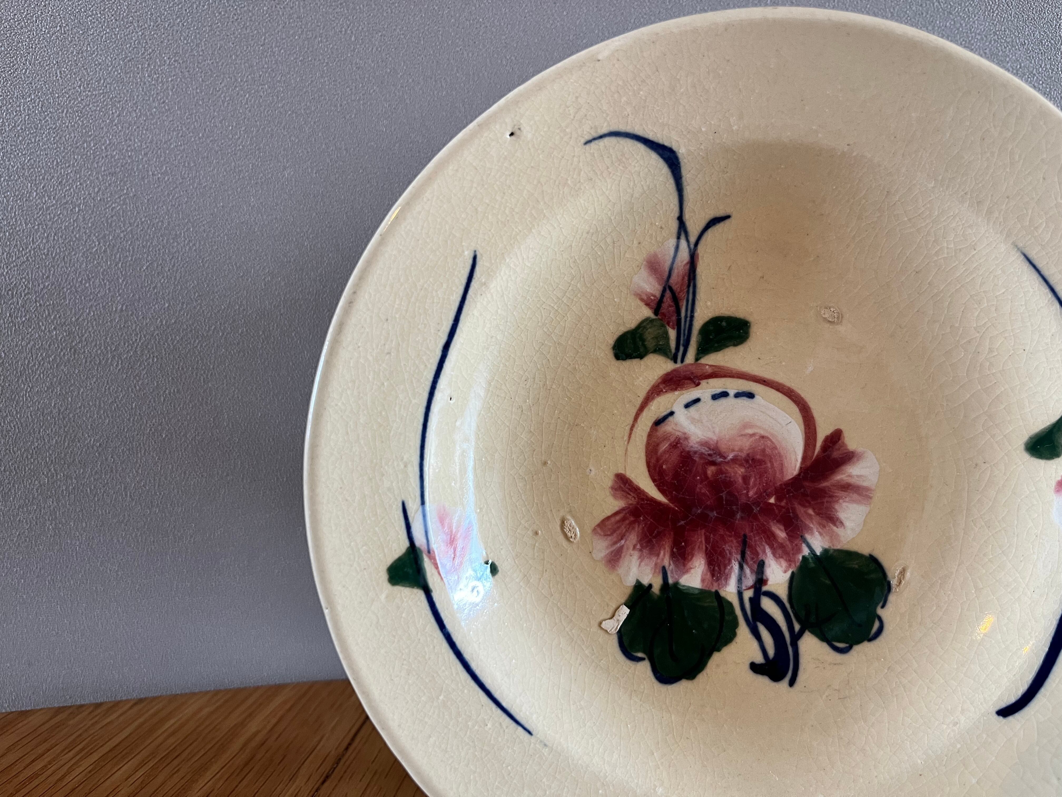 ベトナムの古い花柄の小皿 ヴィンテージソンべ焼き アンティーク