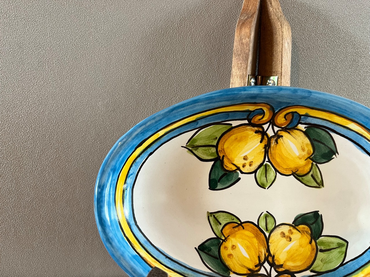 小ぶりなプレートは前菜やお茶菓子などにちょうどいいサイズです。カラフルで手書きの檸檬の模様が規則的に描かれた愛らしい楕円形のプレートです。