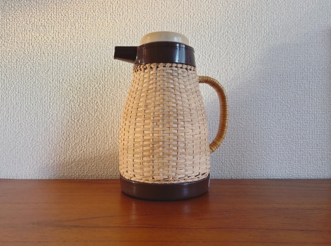 古い国産の魔法瓶 日本の古道具 タイガー 籐ポット 卓上まほうびん 魔法瓶 0.76リットル